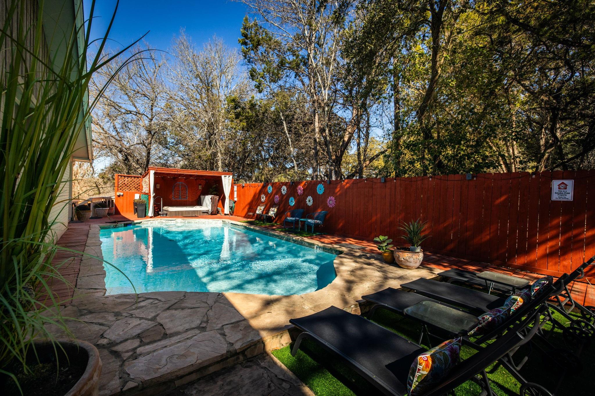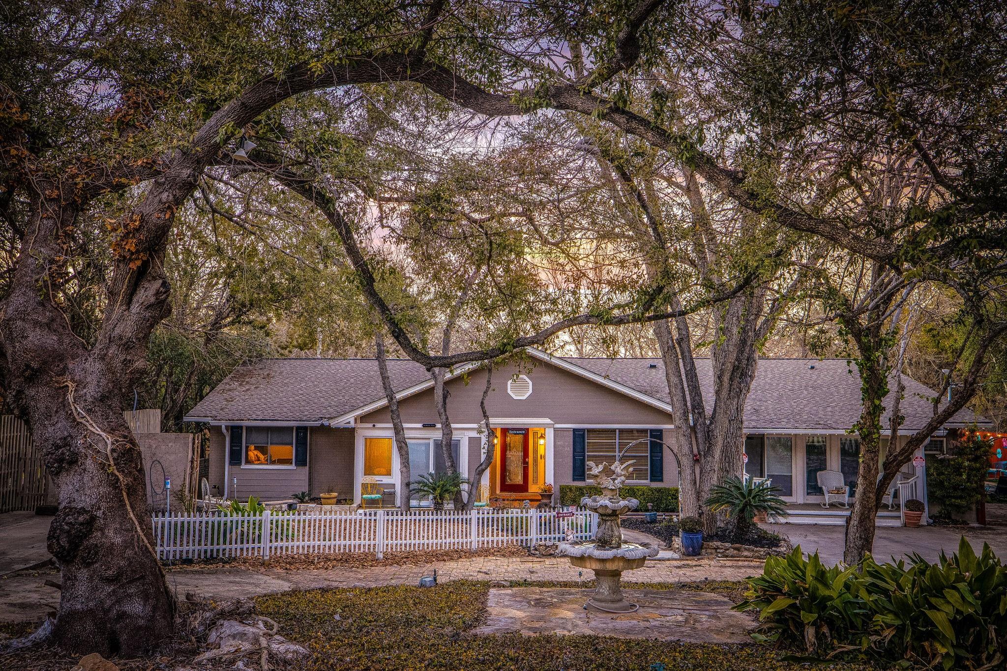 Escape to the serene beauty of the Texas Hill Country with this enchanting and idyllic property nestled along the picturesque Guadalupe River. This charming and romantic retreat offers a unique blend of luxury and tranquility located less than a mile from Historic Gruene in New Braunfels, Texas. As you arrive at this riverside oasis in desirable Preiss Heights, you'll be greeted by a 5100 sq. ft. (+/-) residence boasting 103 ft (+/-) of pristine Guadalupe River frontage. Whether you seek a private sanctuary for personal residence or envision continuing its legacy as an inviting inn or B&B, this property seamlessly accommodates both aspirations. Step inside to discover eight uniquely decorated guest rooms, each exuding its own European character and style. From luxurious linens and robes to modern amenities such as TVs, mini-refrigerators, and wireless internet, every detail has been carefully curated to ensure comfort and relaxation. Some rooms even feature spa tubs and fireplaces, providing an extra touch of indulgence. Outside, the enchanting landscape beckons with its serene ambiance and captivating views of the Guadalupe River. No matter what you do on this property you will be enveloped by the natural beauty that surrounds you. This location offers unparalleled convenience and access to a myriad of recreational activities. Whether you envision running your own inn as a lucrative investment opportunity or creating your dream personal residence, the versatility of this property knows no bounds.