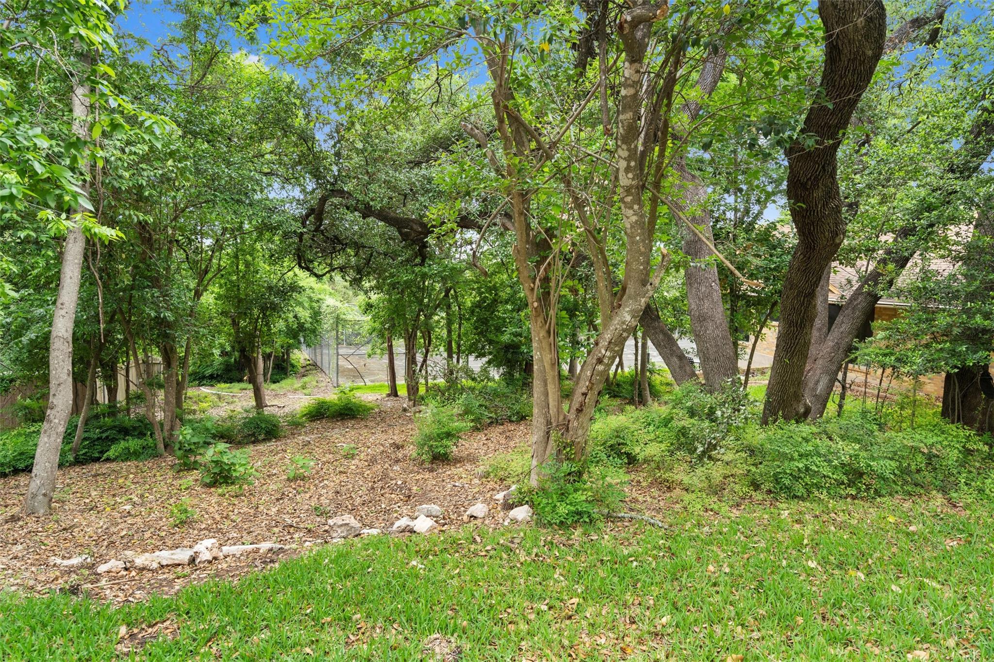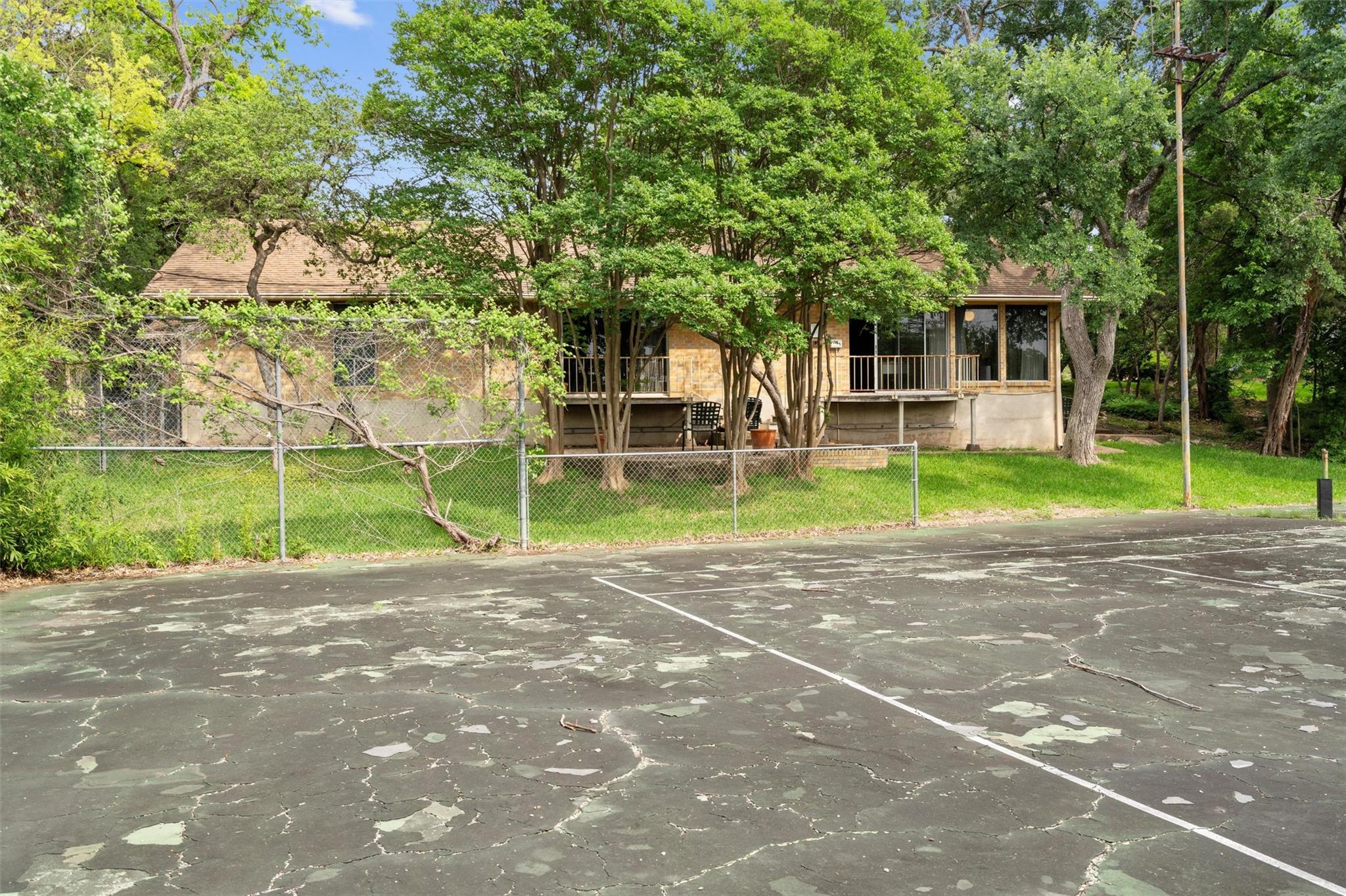 Bring your designer! Or architect to reimagine this almost 2/3 acre space in NW Hills! Amazing opportunity to own a double lot (.59 acre) property (includes 8910 and 8908 Wildridge Drive) with full-size & lighted tennis court + original ~2,500 sq ft mid-century home with excellent layout ready for updates or rebuild. The structure of the home is in great condition, interior is original including black and abalone terrazzo in the entryway and volcanic stone veneered floor-to-ceiling fireplace. Massive laundry room could be a 4th bedroom. The large 2-car garage and circular driveway has plenty of parking. The lot is wooded and deep and private. Plenty of room to add a pool or additional dwelling unit. Bring your vision!