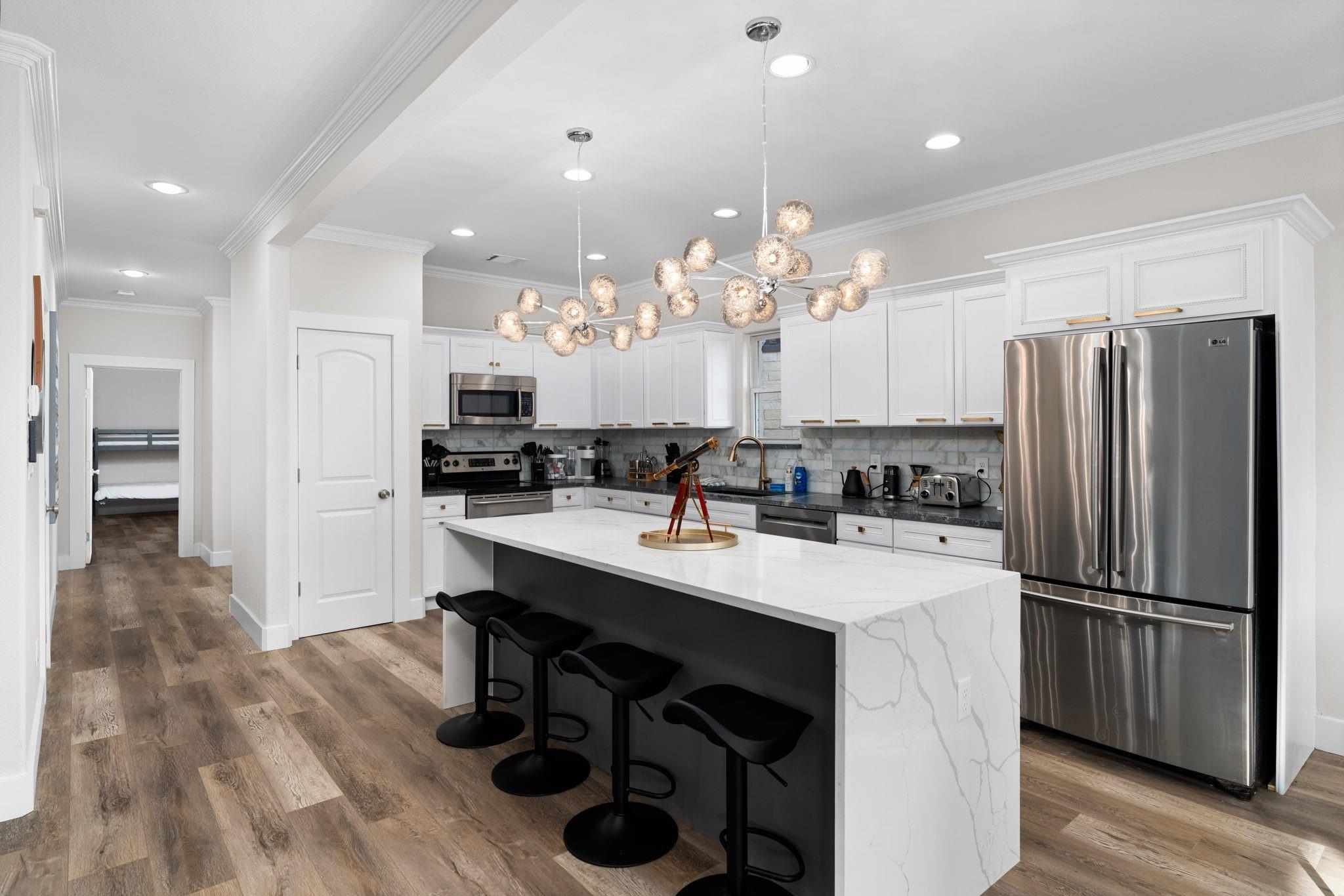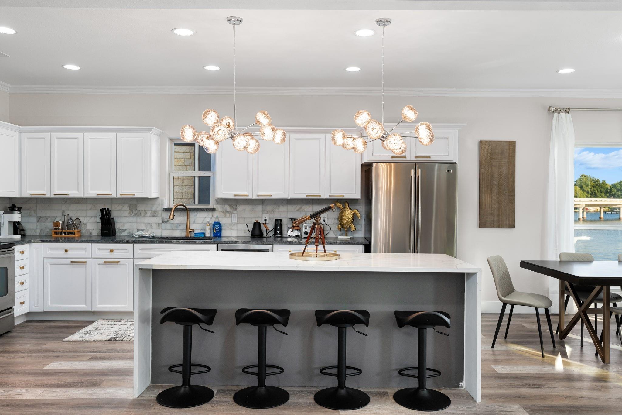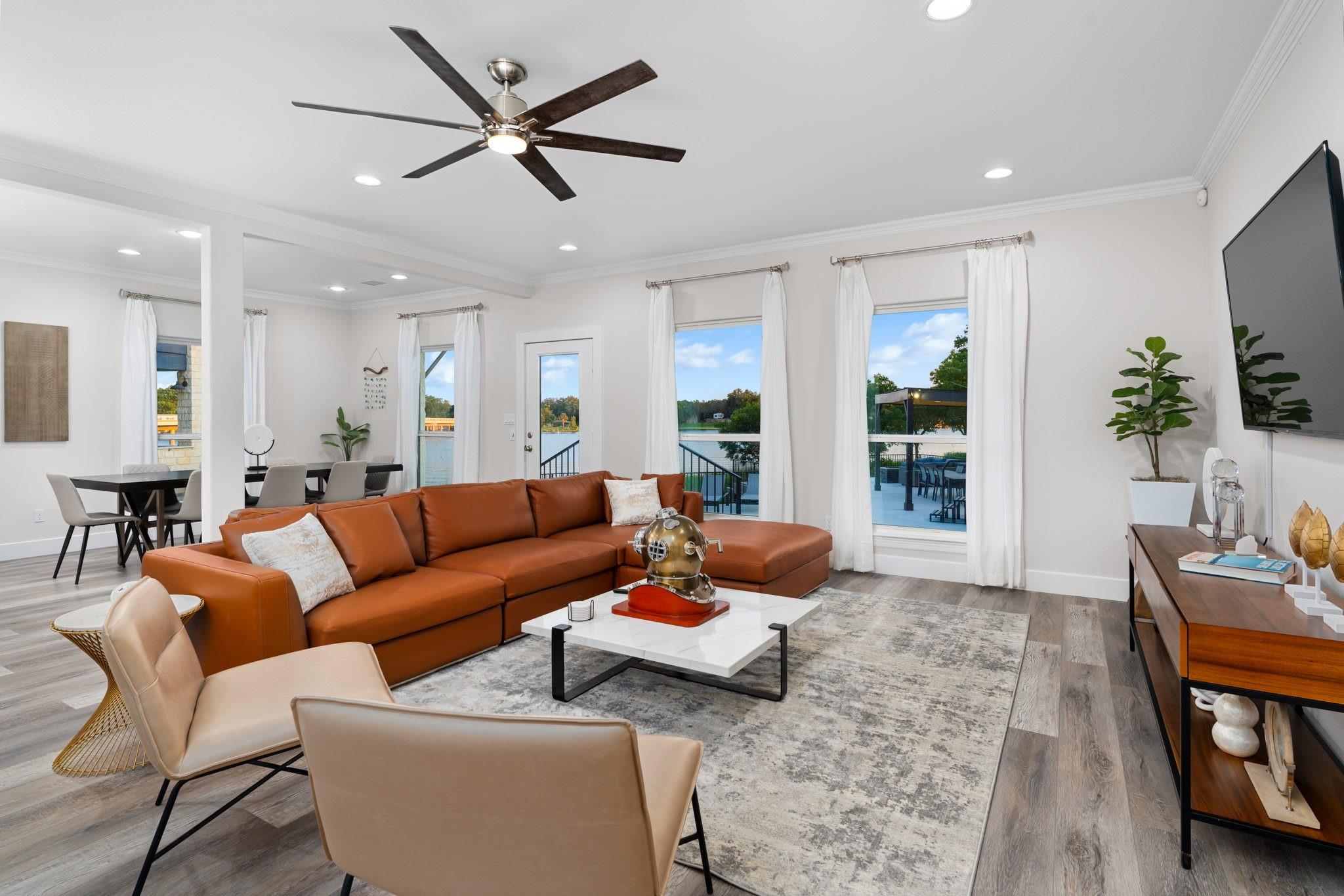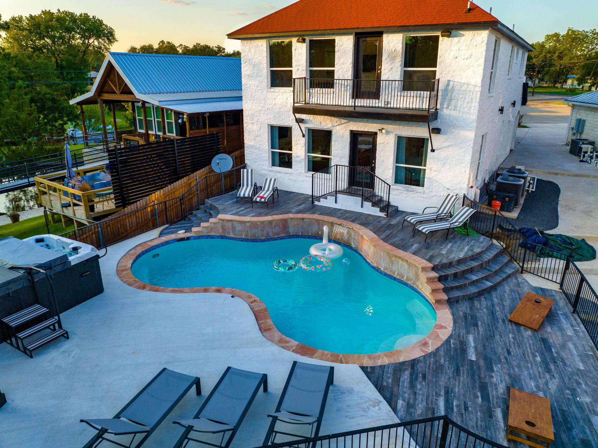 Serene Lakefront Property with Spectacular Views! Live life on Lake LBJ unlike anyone else. This home boasts 5 spacious bedrooms plus a partially converted garage with 3 full high end bathrooms. Situated in a prime location on Lake LBJ. Meticulously designed with a focus on clean, uncluttered energy, this property is ideal for discerning buyers seeking a premium living experience. The home has been fully remodeled and professionally designed with the most detailed eye. The spacious and custom gourmet kitchen comes with a massive kitchen island next to the expansive windows with open lakefront views. The primary suite offers breathtaking lake views, providing a serene retreat within your own home. You will have your own spa-like ensuite retreat to escape to within the space. Step outside to discover a paradise of outdoor amenities. A sparkling pool, massive hot tub, and a full outdoor kitchen with a custom built pergola create an oasis for outdoor relaxation and entertainment. Enjoy the company of loved ones around the fire table while soaking in the awe-inspiring views of Lake LBJ. Conveniently located near the best local amenities, including coffee shops, restaurants, grocery stores, and charming boutiques. While the home does have a private jet ski ramp that can be converted to a boat ramp, you have easy access to boat ramps and a wealth of recreational opportunities nearby, this property is a gateway to the ultimate lakeside lifestyle. Don't miss this opportunity to own a piece of lakeside paradise in Kingsland. Property is currently an operating luxury short term rental. Showings will need to be scheduled around guests. The home has generated nearly $140,000 in gross income this year. All furnishings and inventory available to be sold with the property if desired by the buyer.
