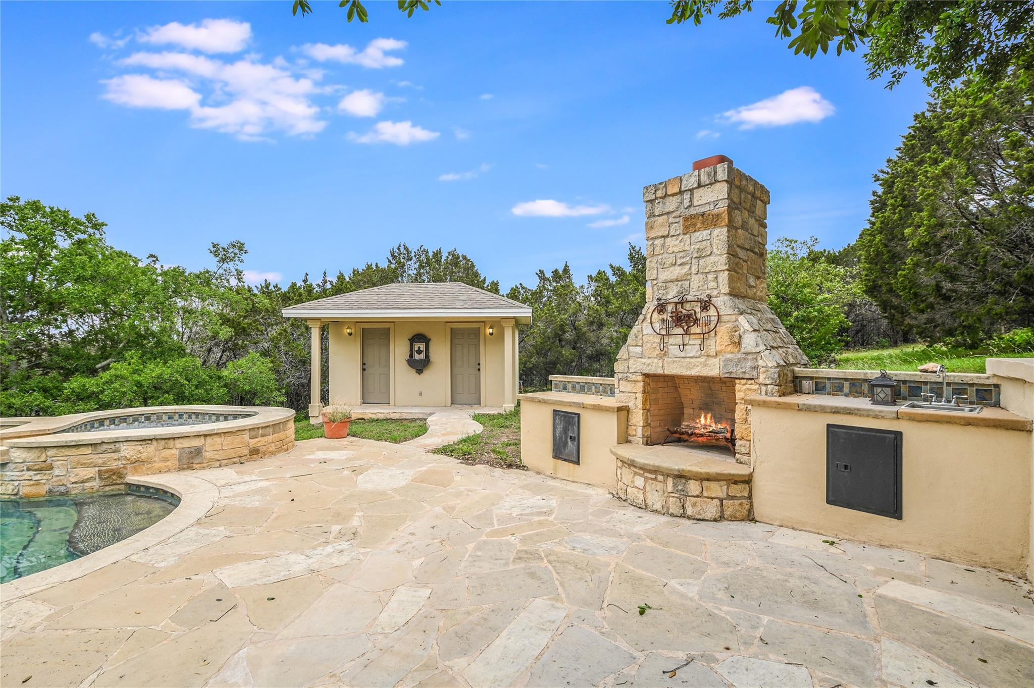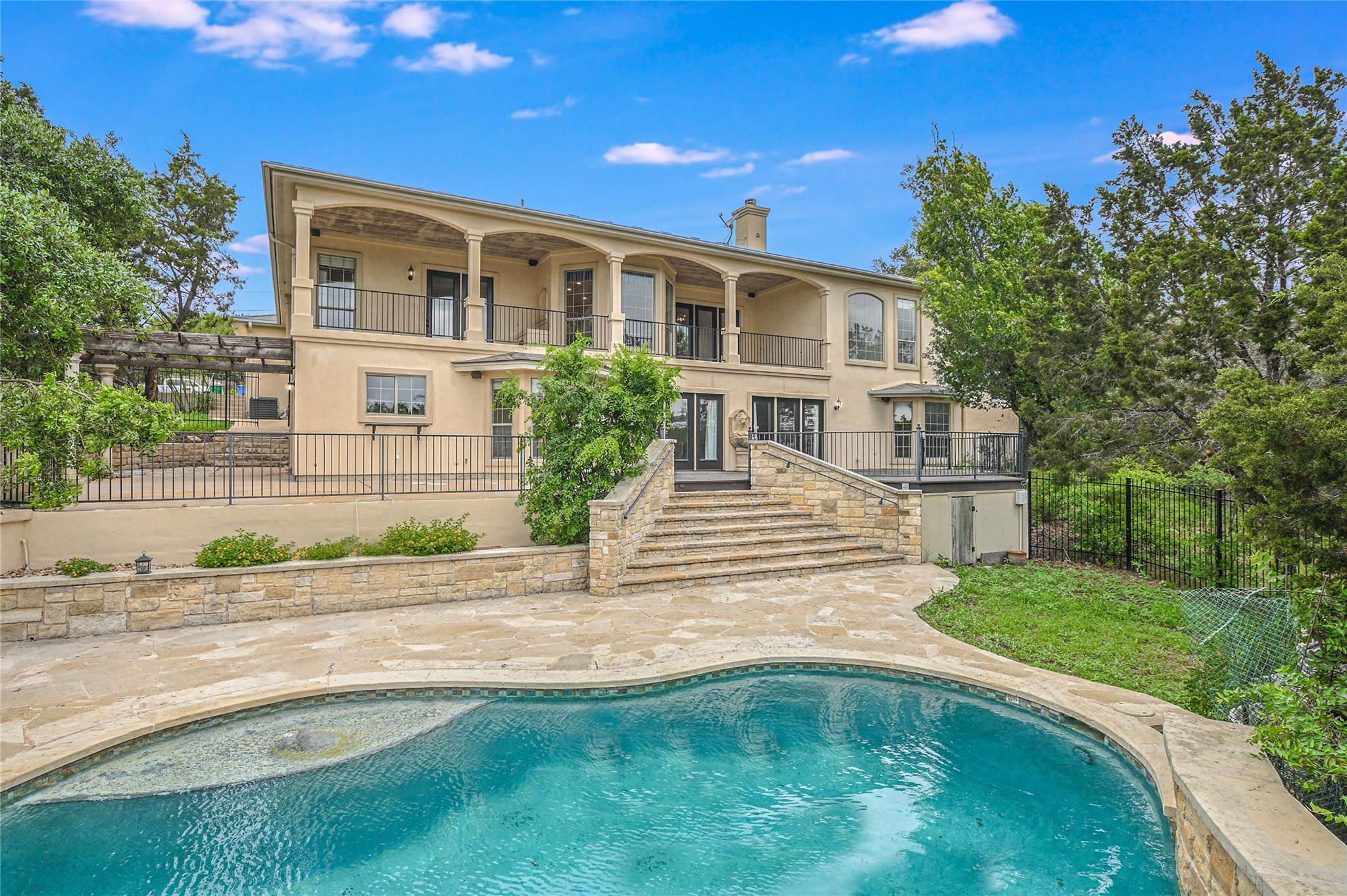Nestled within the picturesque landscape of Lake Travis ISD, this exceptional property seamlessly blends luxurious residential living with commercial potential. Boasting a prime location with 20-mile panoramic views, this property offers many possibilities. The property features a custom pool with a hot tub and a pool bath for convenience. Entertain guests effortlessly on the expansive patio, complete with an outdoor fireplace. On the first floor there are 2 master suites with master bathrooms and walk-in closets and 1 guest bedroom with a full bathroom. One of the master suites has a large sitting area and shares a kitchen with the guest bedroom. There is a large living room, dining room, kitchen, breakfast room with a bay window and utility room. On the lower level there is a gameroom/media room, a breakfast room with a bay window and kitchen. There are 2 bedrooms. One of the bedrooms has a sitting room and a bathroom with a walk-in closet. The other bedroom has a bathroom that is shared with the gameroom/media room. Adjacent to the main residence, a second building houses versatile spaces tailored for commercial use. Whether utilized as offices, meeting rooms, or a large shop, the possibilities are endless, catering to a variety of entrepreneurial ventures. With its unique combination of residential luxury and commercial potential, this property presents an unparalleled opportunity to live, work, and thrive in the heart of a vibrant community. Experience the epitome of refined living amidst the serene beauty of Lake Travis ISD, where every day brings new possibilities.