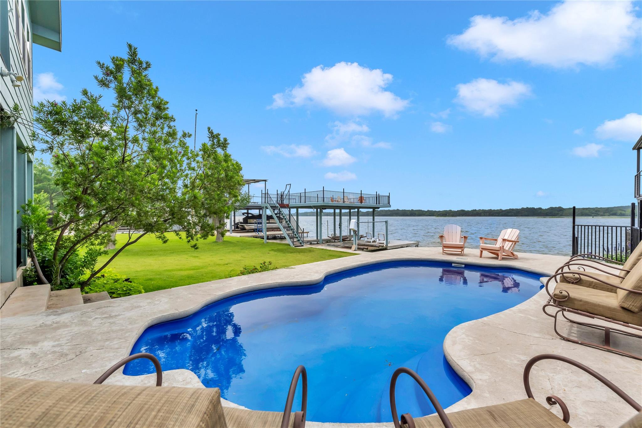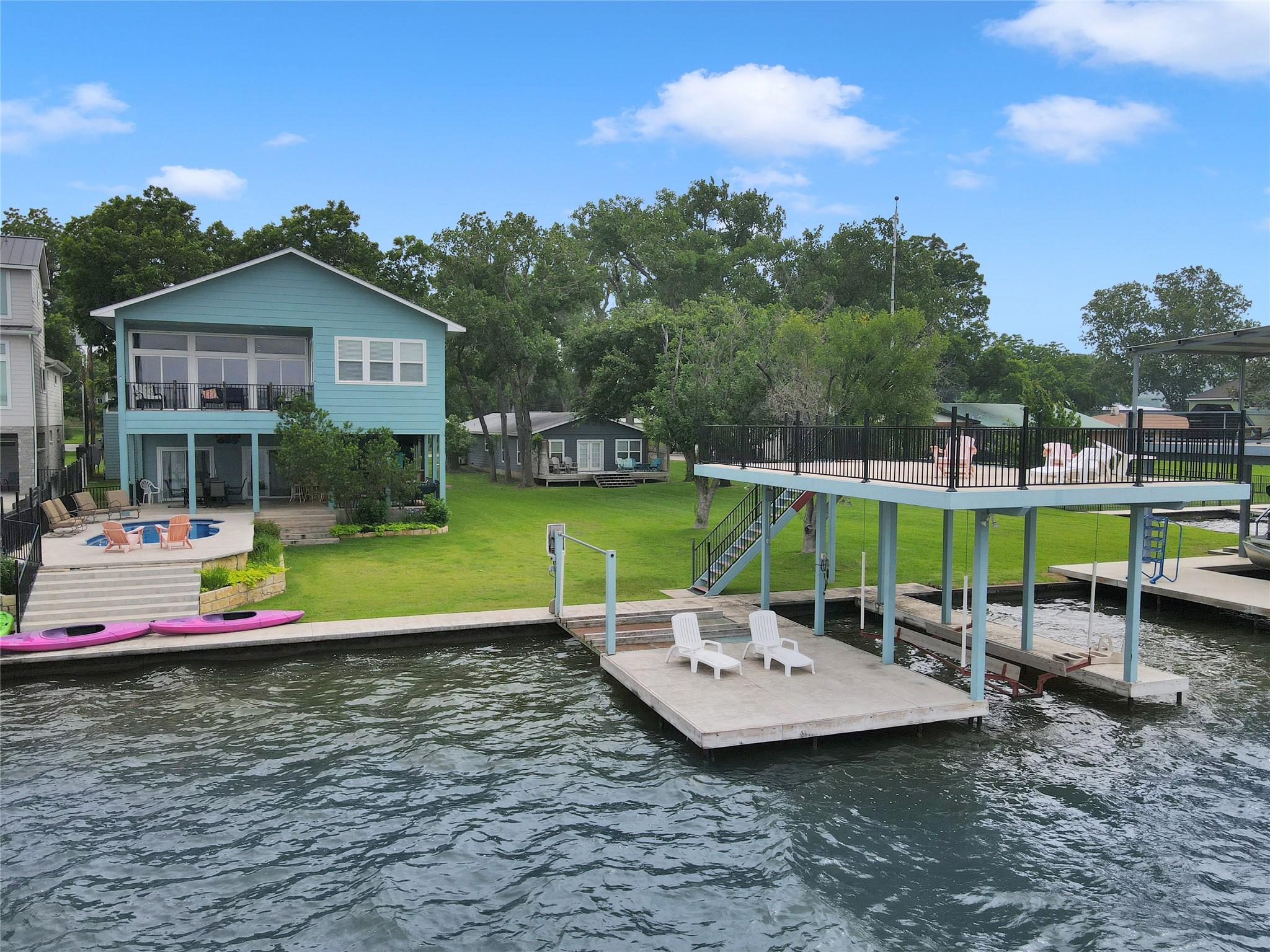 **Premiere Waterfront Home for Sale – Prime Lakefront Party Spot!** Discover unmatched excitement at this exceptional property in Kingsland, TX, ideally situated across from the local sand bar on Lake LBJ. Featuring a main house, 4 bedrooms, 3 baths, and 2 living rooms, along with a guest house, this retreat offers abundant space for unforgettable gatherings. Currently serving as a short-term rental, accommodating 22-25 guests, it's the perfect setting for hosting epic parties and get-togethers. Outdoor bliss awaits with a pool overlooking Lake LBJ, a spacious covered patio with an outdoor kitchen and bar, an electric boat lift with an upper deck, and a jet ski ramp, swimming, and fishing dock. Inside, vibrant interiors complement stunning lake views from the main living areas, while the porch invites you to observe sand bar activities. This home promises a lifestyle of non-stop fun, entertainment, and adventure, presenting an irresistible opportunity for a dream party spot or lucrative rental investment.