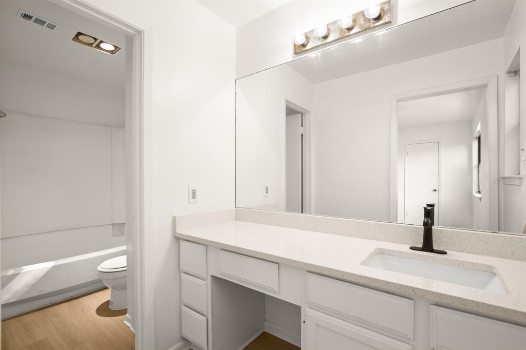Great 2/2.5 located near a park with sports fields. A pass-through window from the kitchen opens to a spacious living area with easy maintenance tile flooring. Both bedrooms feature wood look floors and a ceiling fan, and both bathrooms have updated countertops and sink fixtures. Laundry room. Sliding doors to a back patio and plenty of room for recreation in the backyard. Near all the tech and amenities of North Austin.