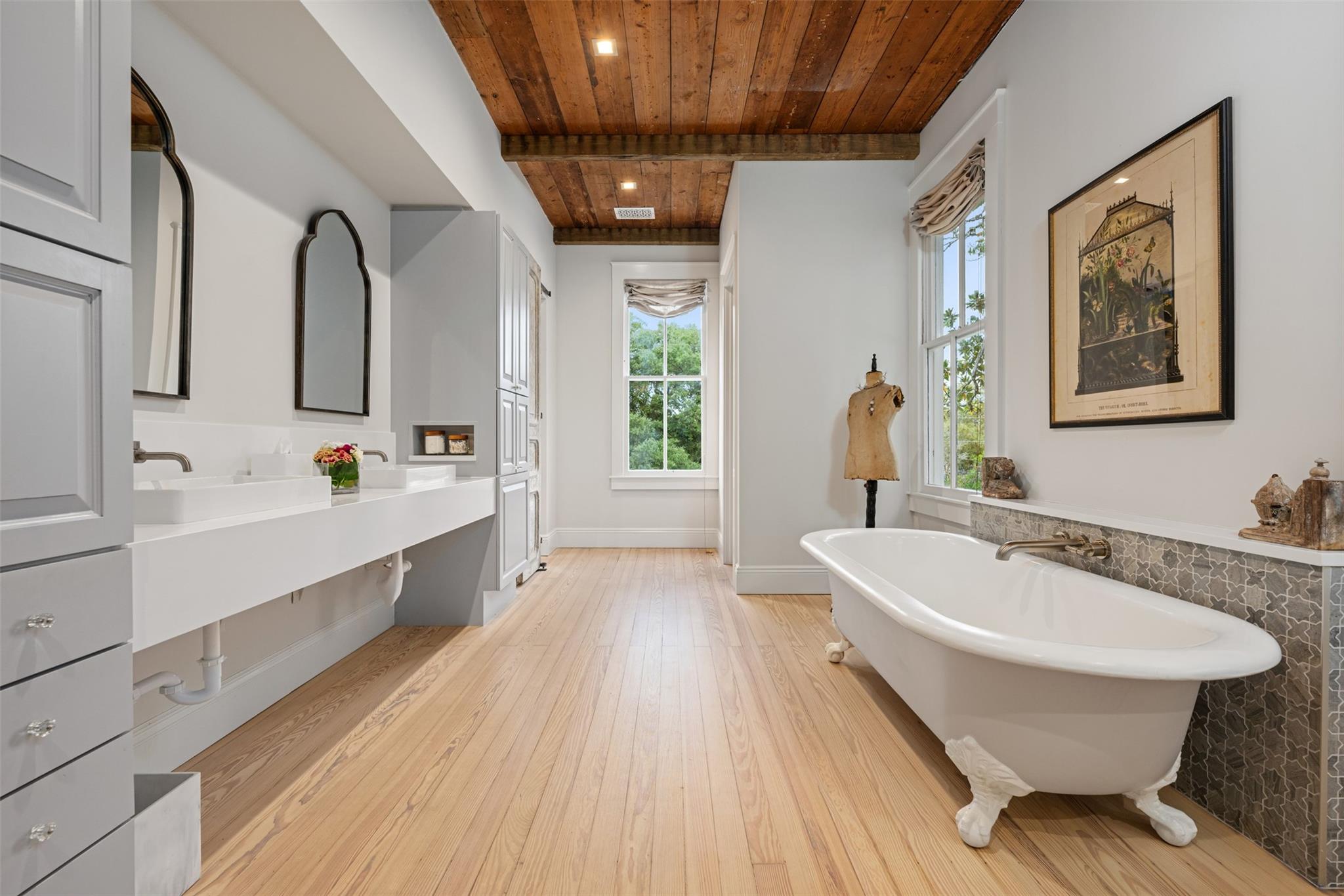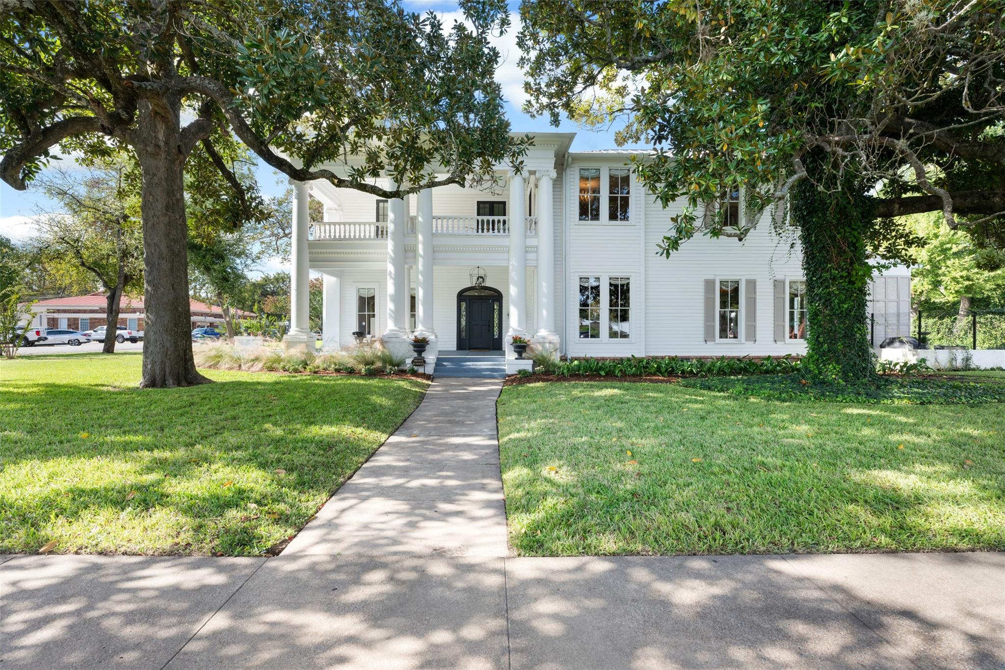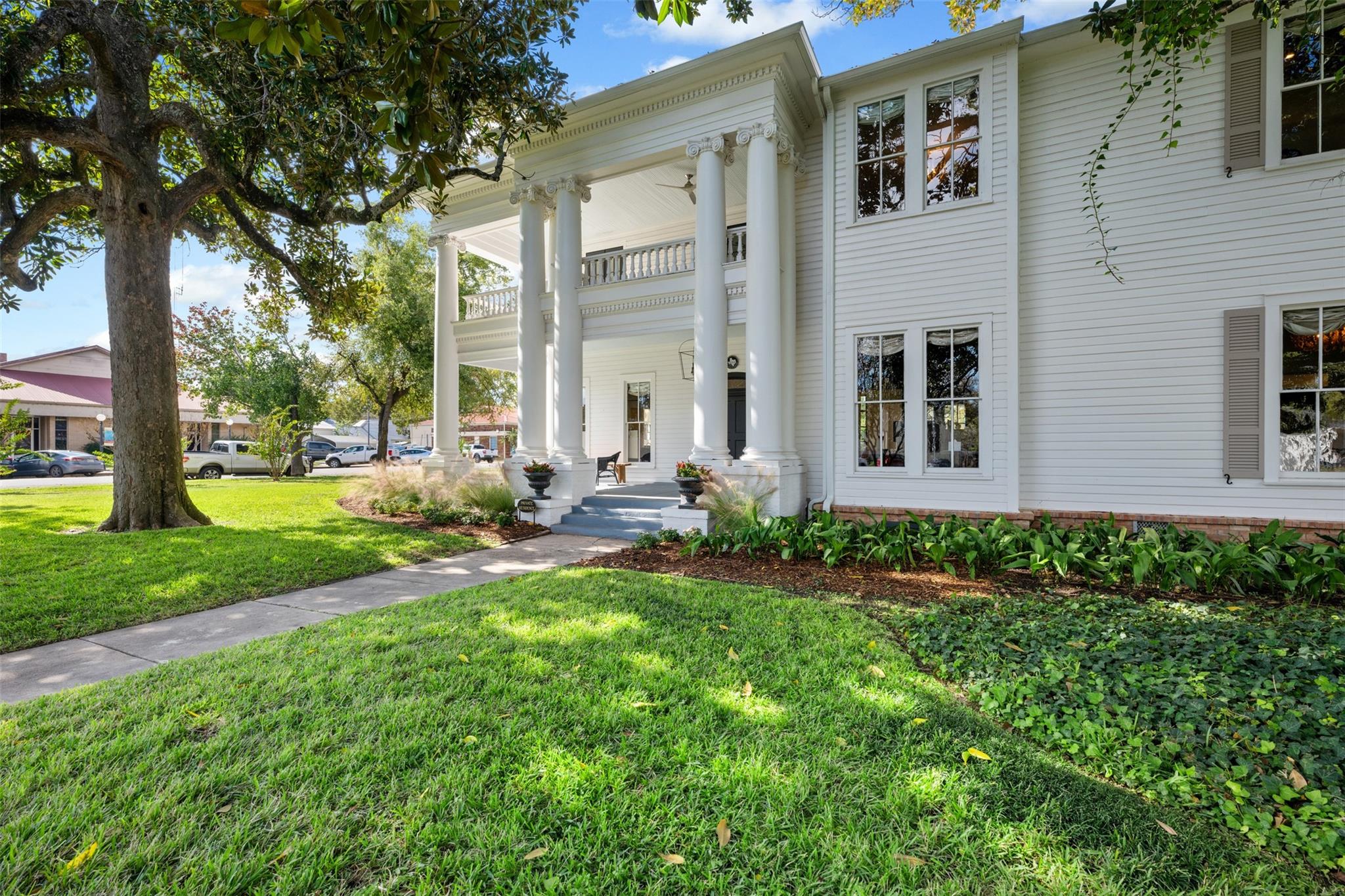 Dating back to 1887 and proudly listed on the Historic Register acquired from the original owner's descendants, spans three lots facing Main Street within the enchanting Smithville Historic District. What sets this residence apart is its rare zoning, allowing for commercial use, historic preservation, and residential occupancy, offering a unique canvas for various possibilities. The property has undergone meticulous renovations to seamlessly integrate modern amenities while preserving its historical charm. Recent upgrades include repointed and reinforced pier and beam foundations, a new sewer line, gas connections, and entirely replaced plumbing, electrical, and mechanical systems, ensuring optimal functionality. With its smart-design HVAC, four AC units, and energy efficient LED lighting, comfort is paramount in every season. The exterior of this historic home boasts rare 19” wide columns, sweeping verandas, wood Dutch lap siding, and meticulously refurbished original windows, some with hand-blown glass. The lush surroundings feature magnolia trees, Charleston-style shutters, and lawns re-sodded with St. Augustine grass. The courtyard fences, designed to be Jack Russell-proof, stand on concrete foundations adorned with climbing roses. The property's numerous trees are healthy and have been inspected by a certified arborist. Inside, historic materials, such as reclaimed shiplap and bead board, seamlessly merge with modern elements. Custom-built cabinetry and quartz countertops showcase the commitment to quality. The grand oval stair with a keyhole feature, soaring ceilings, and new hardwood and luxury vinyl flooring contribute to the interior's spacious feel. Modern comforts abound, including an LG HE washer-dryer set, Bosch appliances in the kitchen, and LED lighting throughout. This residence seamlessly combines the best of both worlds, offering a chance to own a piece of Smithville's history while indulging in the conveniences of contemporary living.