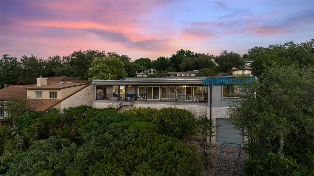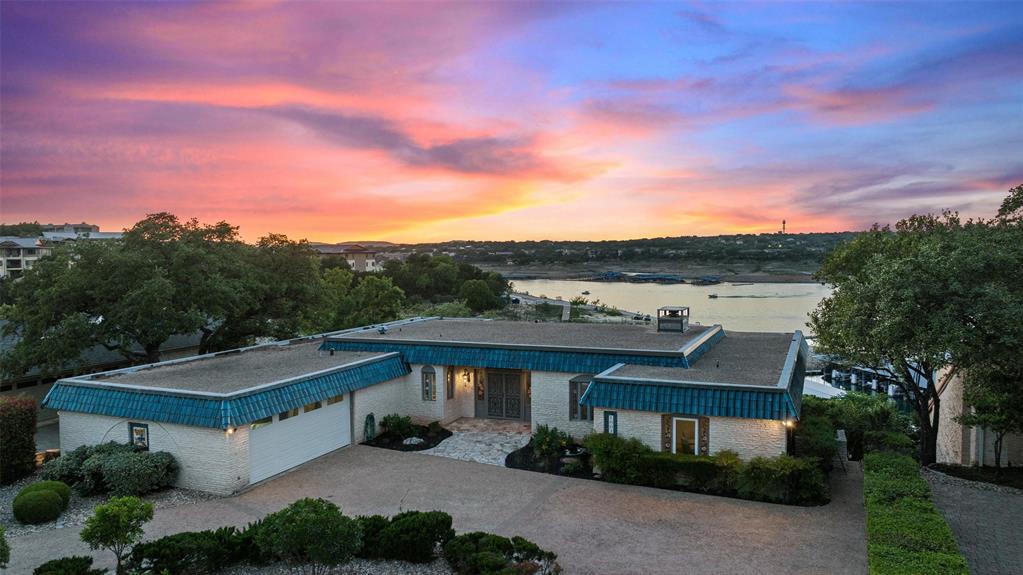 The quintessential Lake Travis lakefront home! Designed for simple lake living, the panoramic Lake Travis water views await. Very rare boat tram brings you from your garage directly into the water. No need for a boat dock! The home was originally built in 1981, but has been kept classic and up to date. This home is currently in great condition and a remodel is only optional. With a bright and airy open floor plan, this one story home offers a large kitchen with a breakfast bar, dining room, and a cozy living area with a traditional limestone fireplace and full glass sliders leading to an expansive deck overlooking the lake. The primary suite with full bath and walk-in closet, comes complete with separate glass doors and endless lake views. Three additional bedrooms, two bathrooms, laundry room and a 2-car garage complete the home. Enjoy the sunsets from your lower level patio by the water. The possibilities are endless! View more at www.1007challenger.com