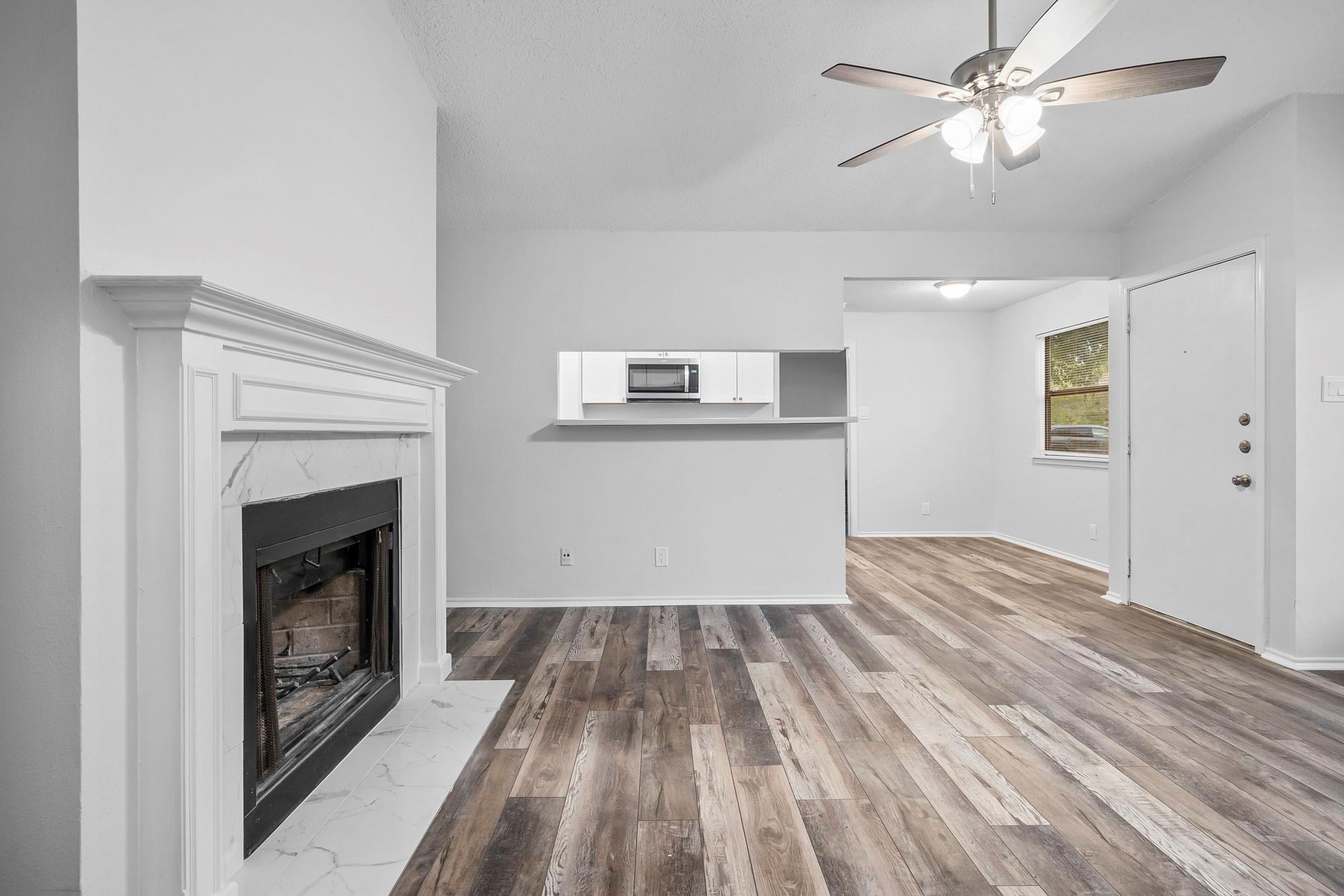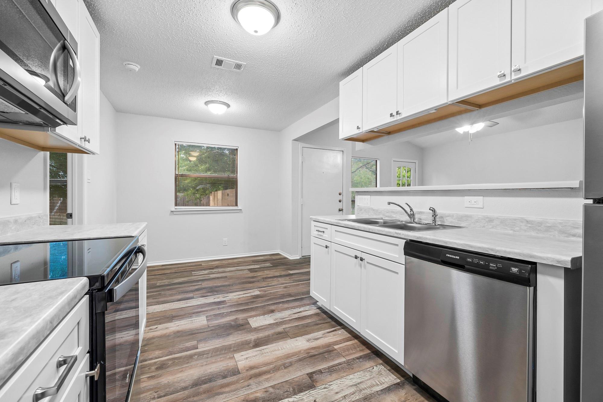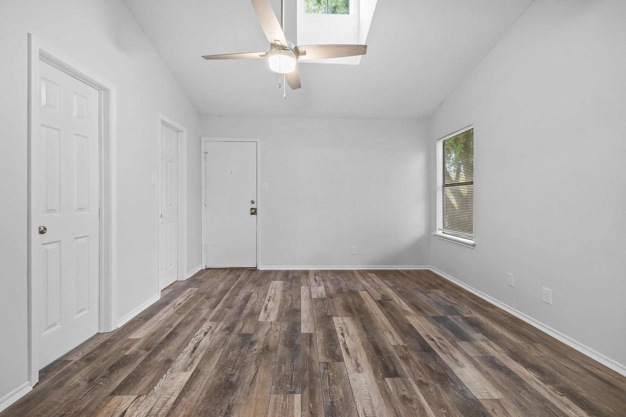 Beautifully renovated duplex in an incredible location, offering quick access to anything you need being only minutes from Lakeline Mall, lots of dining options and more! As you enter the home, you're immersed into a thoughtfully designed space with brand new flooring, fresh paint, new appliances, cabinetry and ample lighting. The two bedrooms are spacious and both have ceiling fans. Do you enjoy having friends and family over? The backyard is a must-see as it is very large with lots of tree coverage to enjoy.