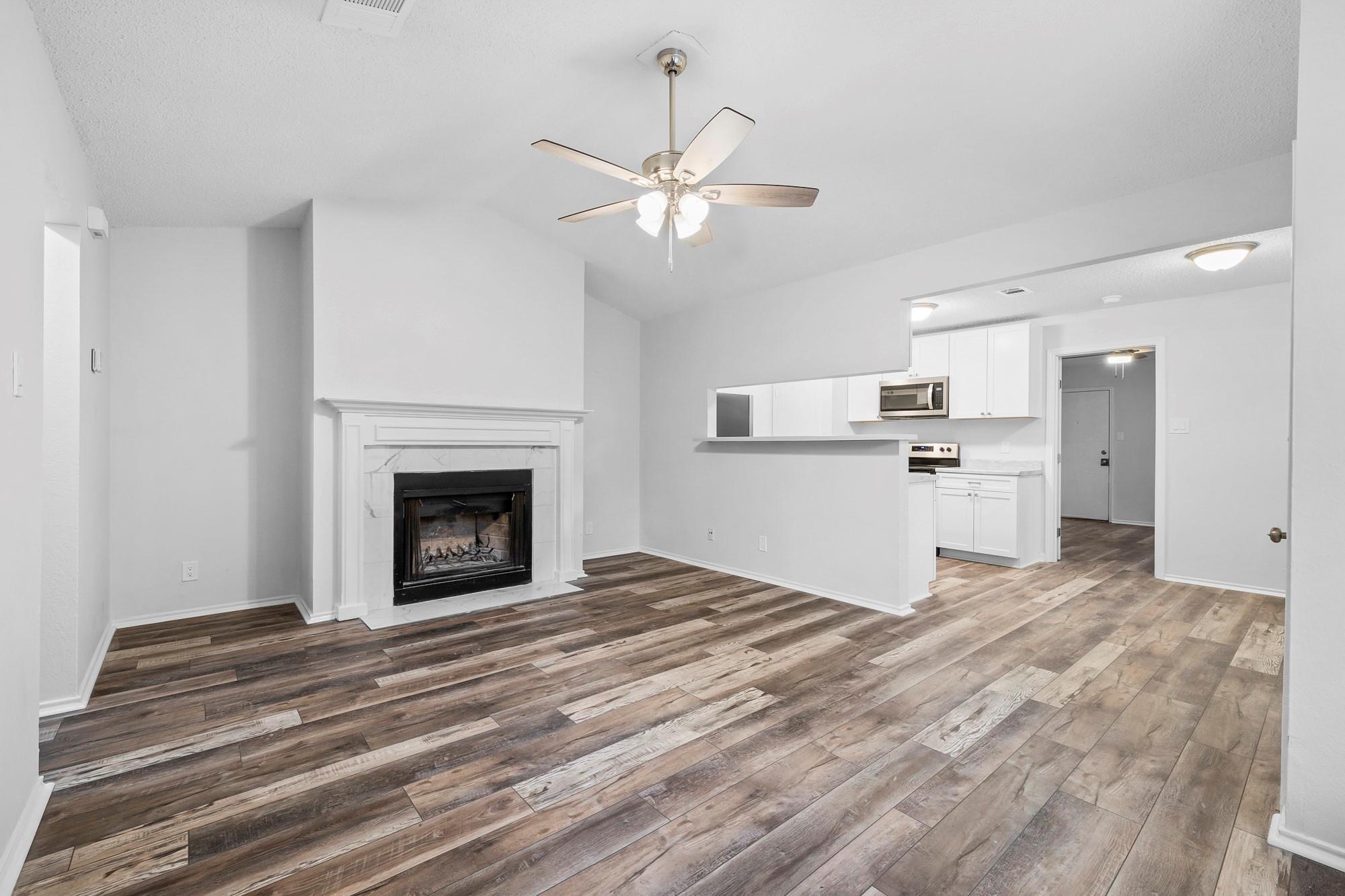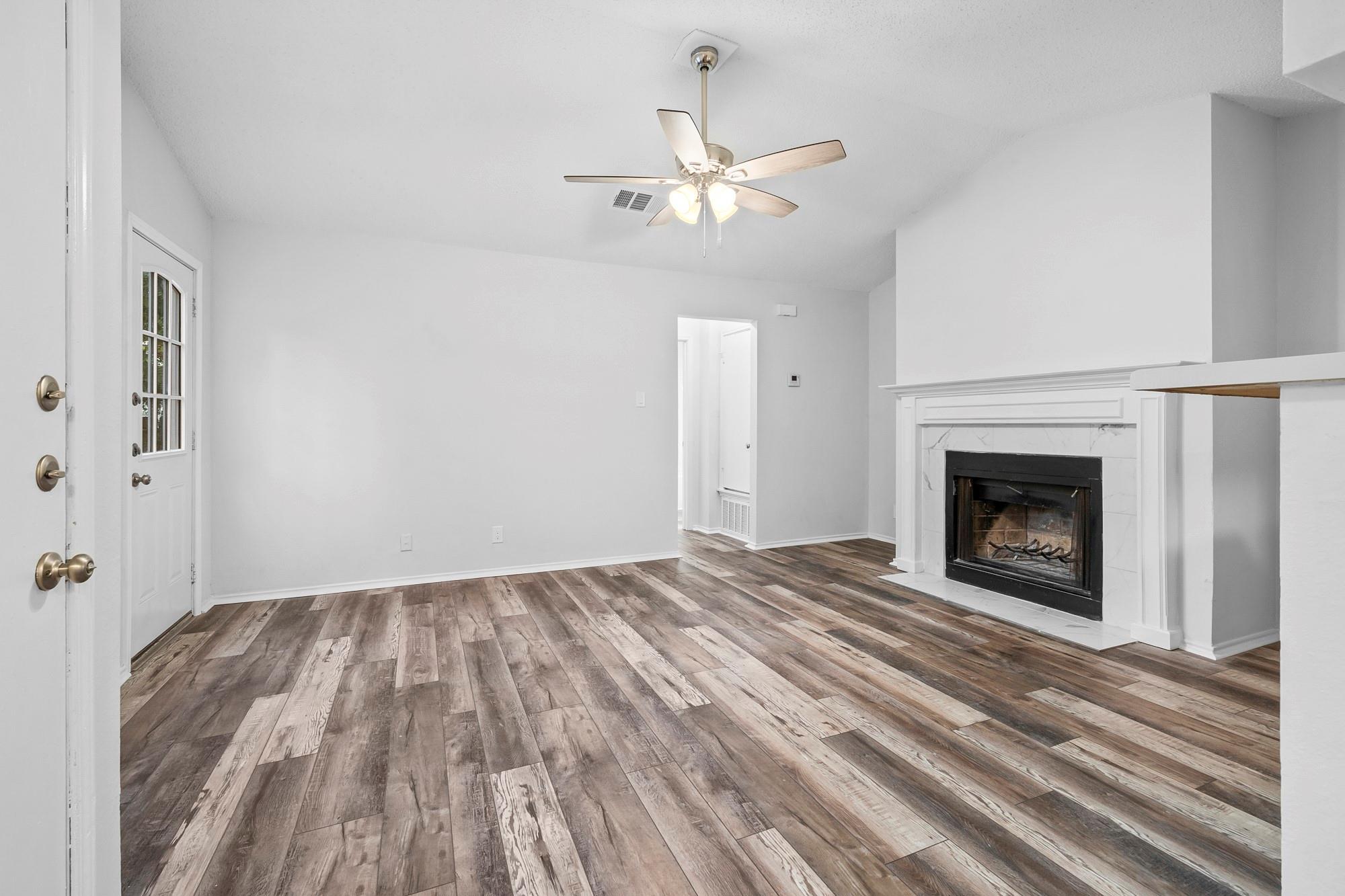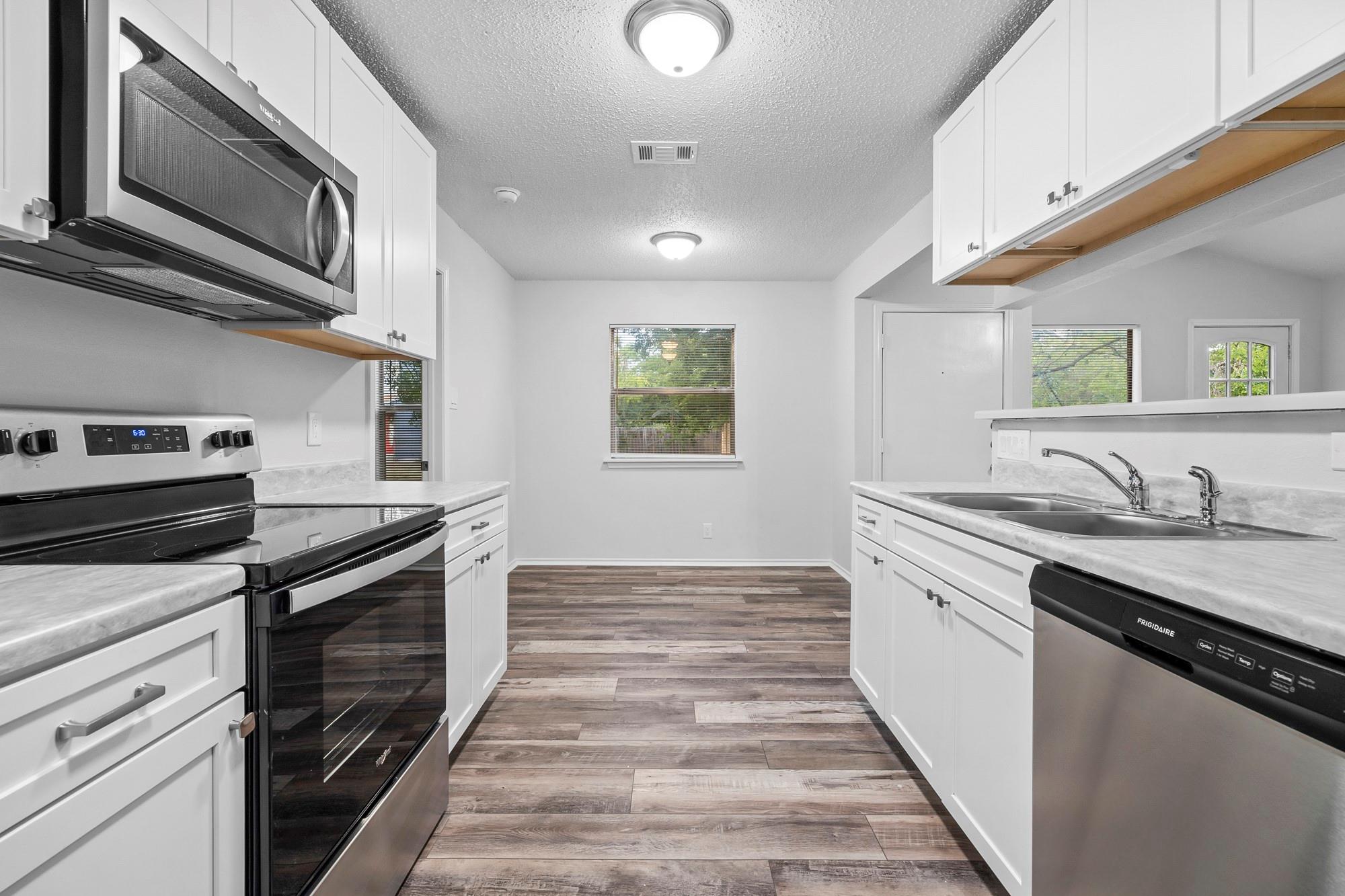 Beautifully renovated duplex in an incredible location, offering quick access to anything you need being only minutes from Lakeline Mall, lots of dining options and more! As you enter the home, you're immersed into a thoughtfully designed space with brand new flooring, fresh paint, new appliances, cabinetry and ample lighting. The two bedrooms are spacious and both have ceiling fans. Do you enjoy having friends and family over? The backyard is a must-see as it is very large with lots of tree coverage to enjoy.