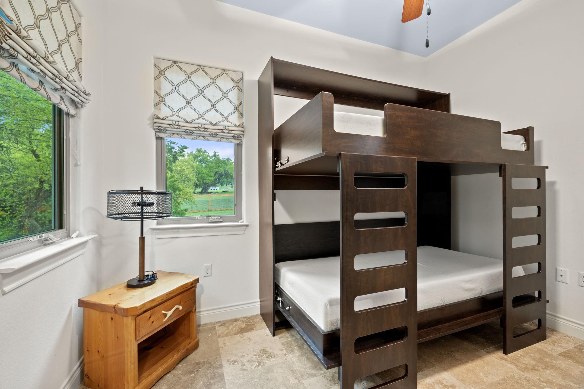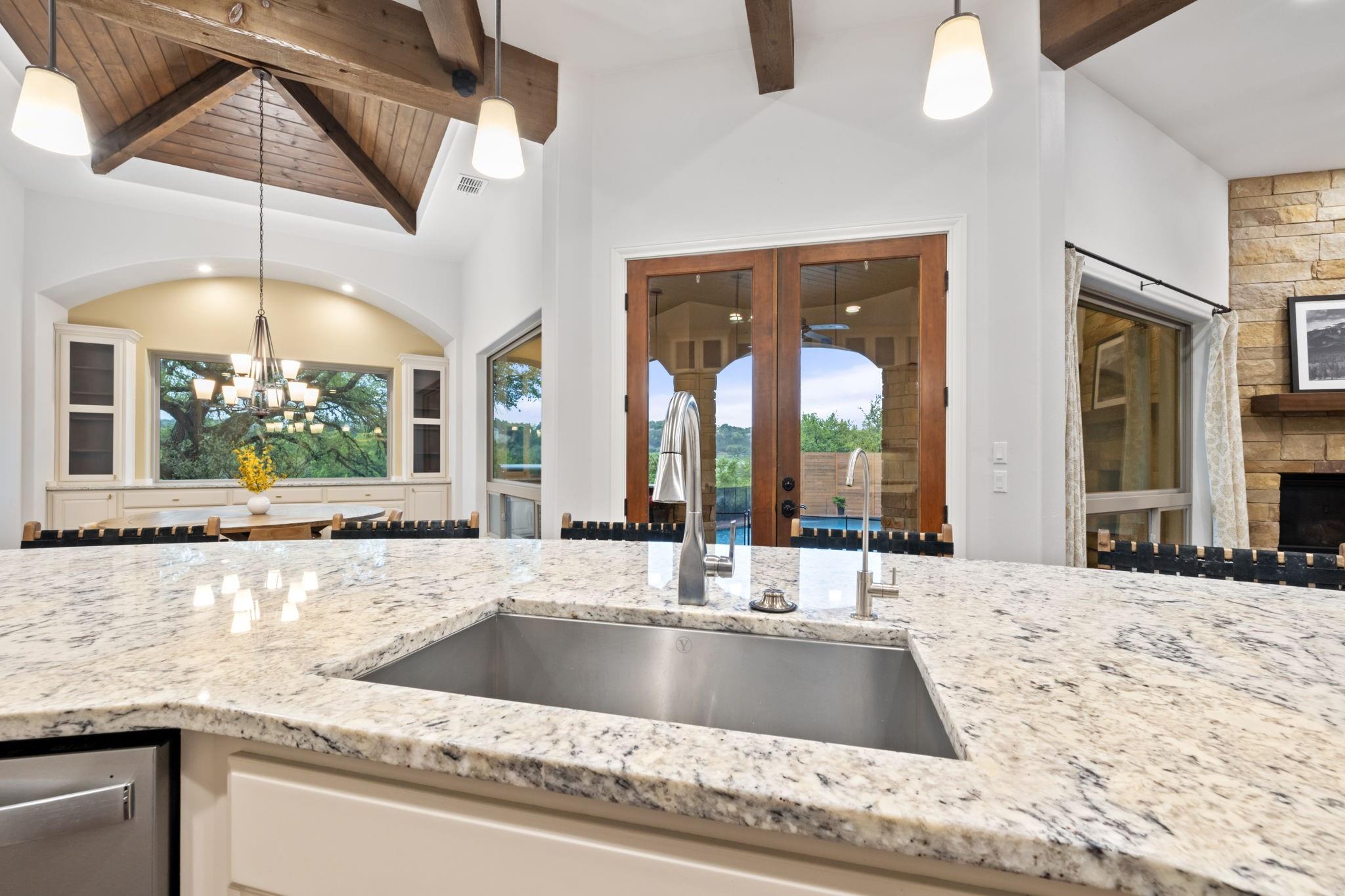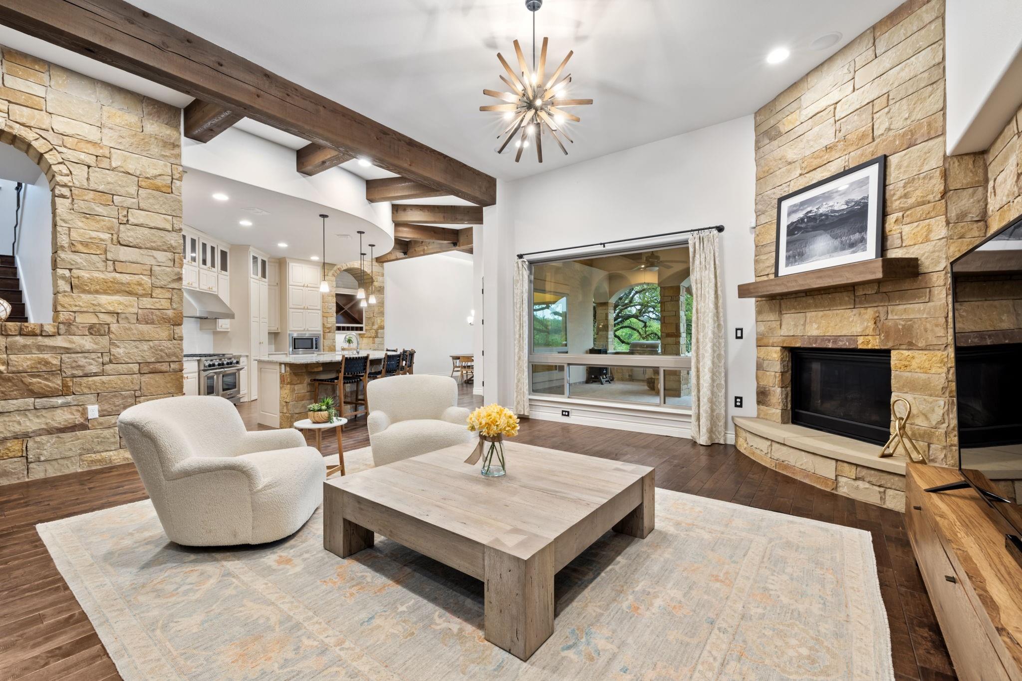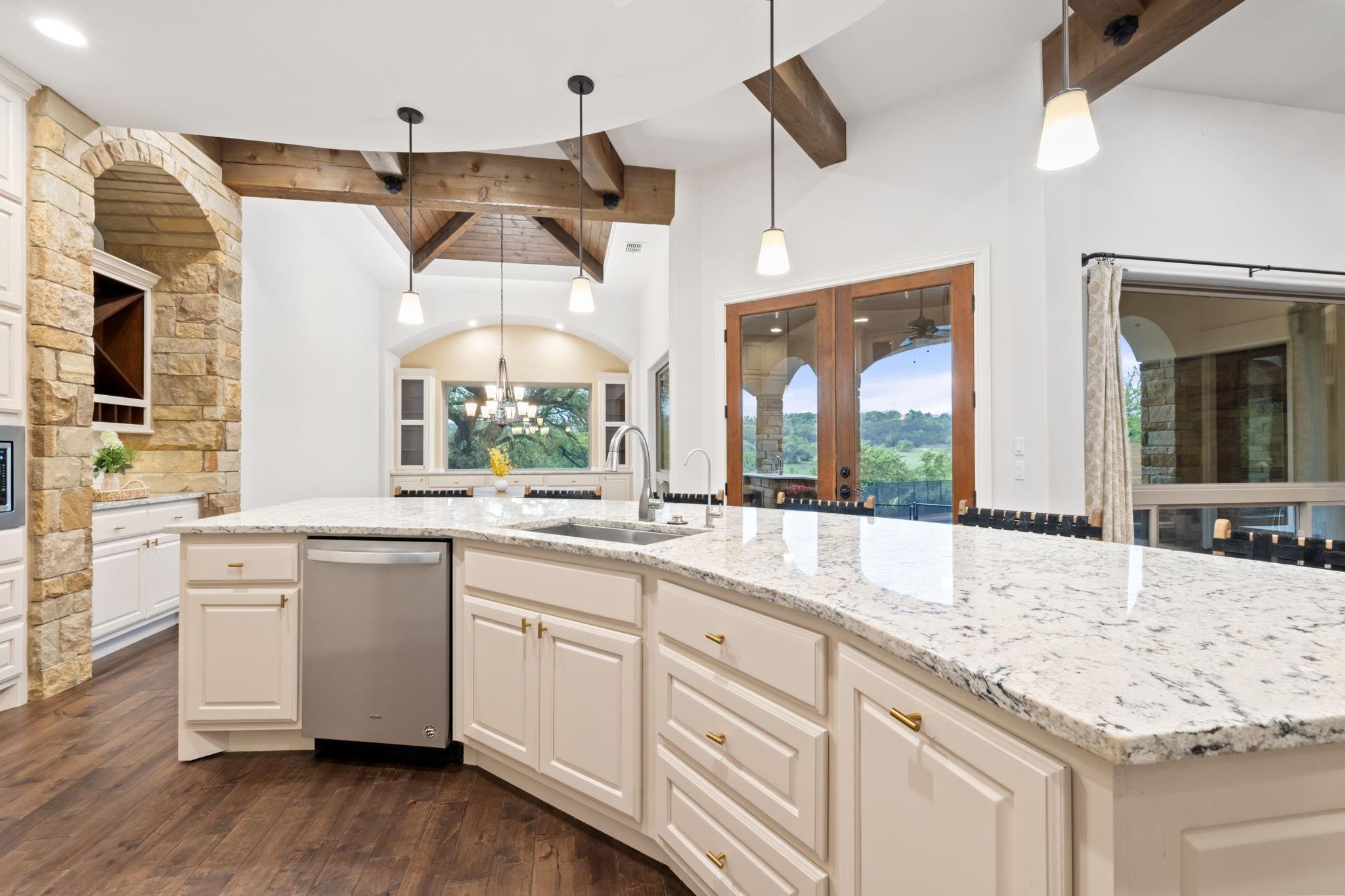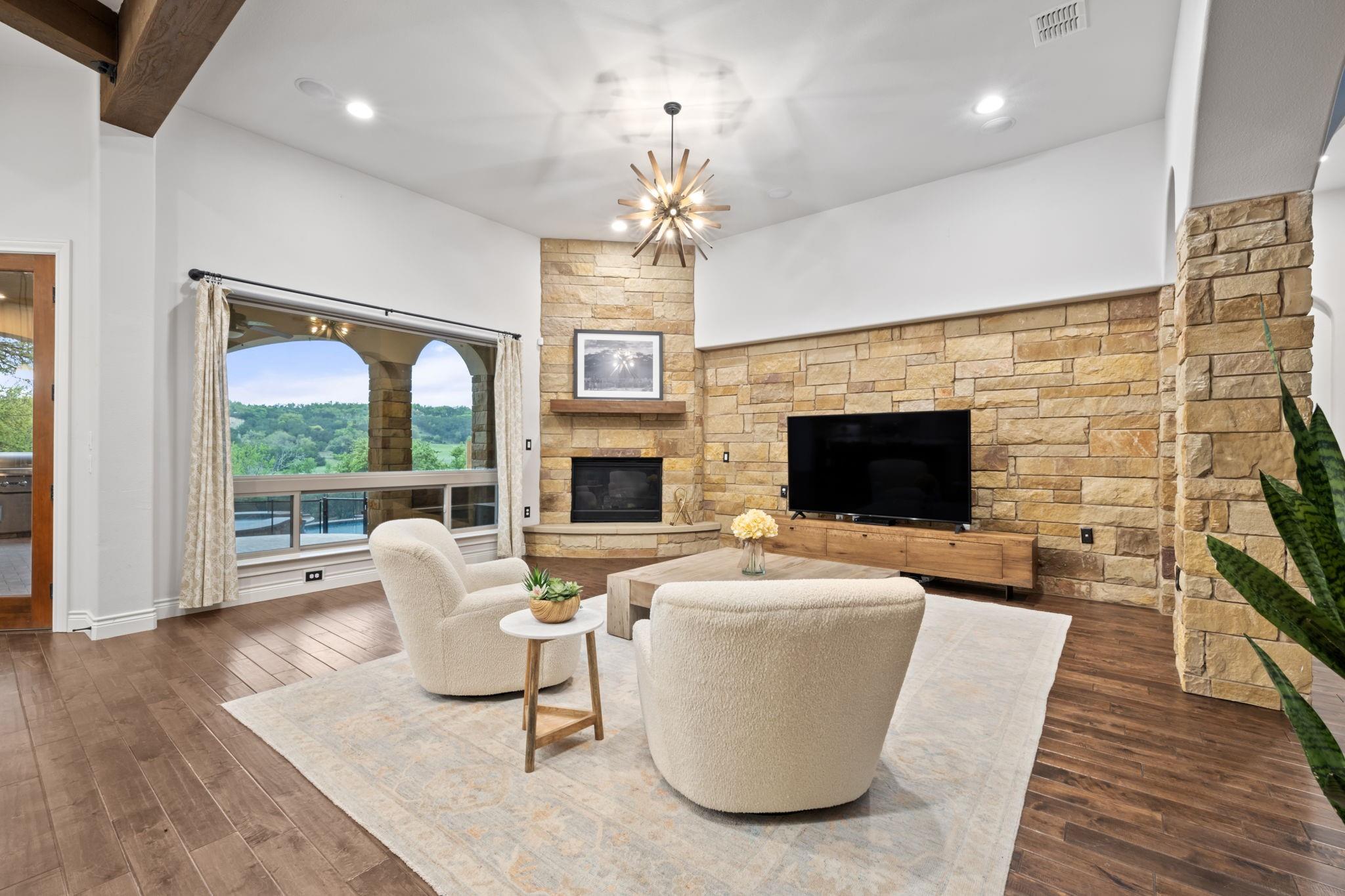 Immerse Yourself in Hill Country Opulence: Unparalleled Luxury awaits in this expansive Hill Country estate nestled within the prestigious La Ventana community. Spread across 2.44 private acres, this residence offers a sanctuary of unparalleled comfort and sophistication. Step Inside: Grand Design: The main home boasts 5 spacious bedrooms, 4 full baths, and a sophisticated powder room. Vaulted ceilings adorned with natural wood beams create a sense of grandeur, while custom-painted cabinetry and a large island with a subway tile backsplash elevate the gourmet kitchen to a chef's haven. Tranquil Retreat: An executive office, or optional 4th bedroom, features a hidden bookcase closet for a truly serene workspace overlooking a secured courtyard. Panoramic Paradise: The second level unveils a dedicated flex room, a 3rd bedroom, and dedicated workspace niche with its own private outdoor patio. Imagine waking up to breathtaking vistas of the sparkling pool, rolling Hill Country terrain, mesmerizing sunsets, and even a golf course! A Haven for Guests: Indulge your guests in unparalleled privacy with a separate 1 bedroom/1 bathroom apartment complete with a full kitchenette and living room. This self-contained haven boasts a built-in Murphy full sized bunk bed for added convenience, and a delightful spacious private yard. This apartment offers the perfect blend of independence and luxury. Outdoor Oasis: Embrace the Hill Country lifestyle with an expansive heated pool feat. an Oasis waterfall, a natural diving board, and a swim-up hot tub bar. Relax under the shade of a custom awning, or whip up a gourmet meal in the fully-equipped outdoor kitchen. A private, direct-access creek awaits just steps away, offering a tranquil escape into the heart and peace of the Hill Country. Beyond the Estate: Enjoy the plethora of additional amenities offered by the exclusive Ranchers Club, all within a short stroll from your doorstep.