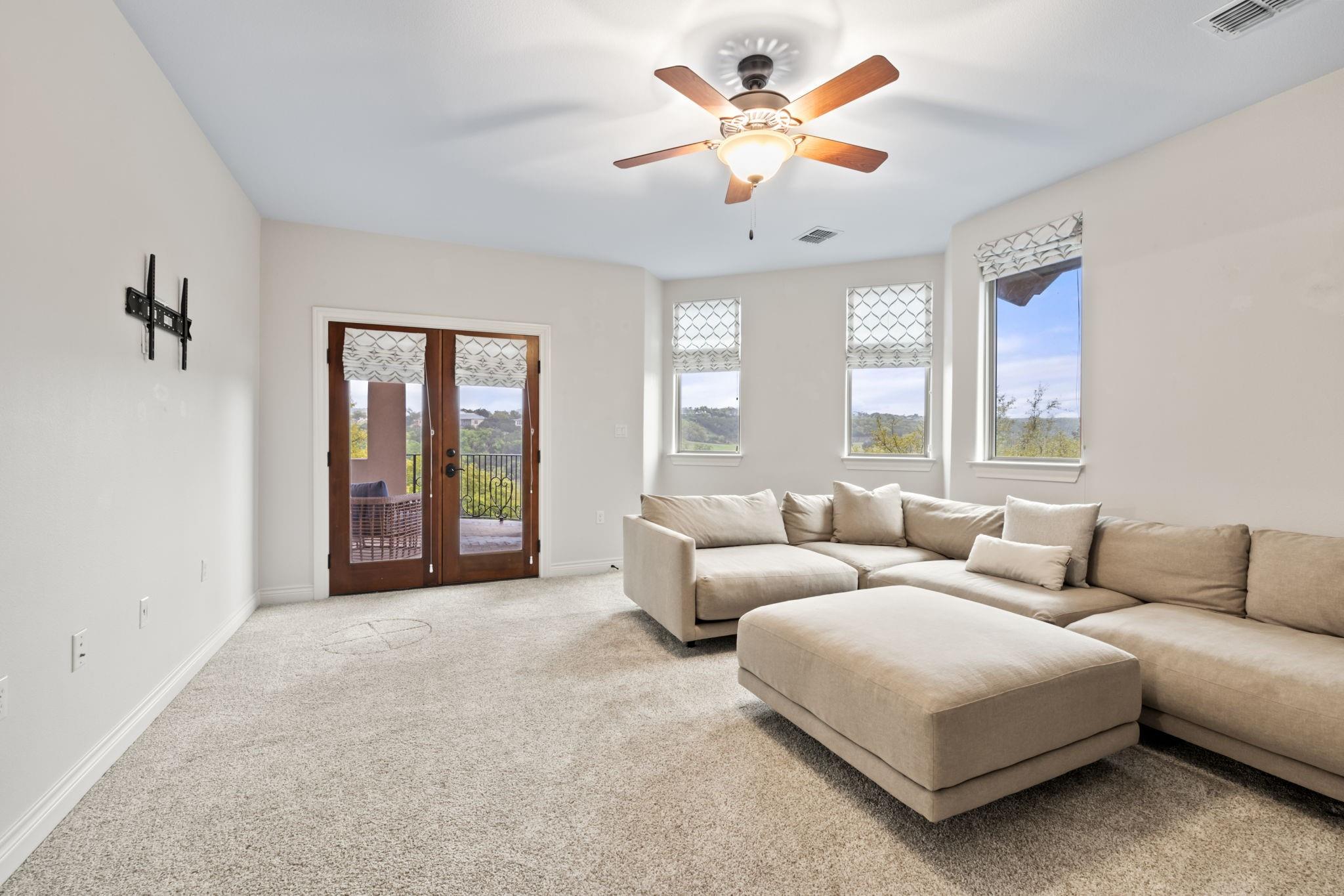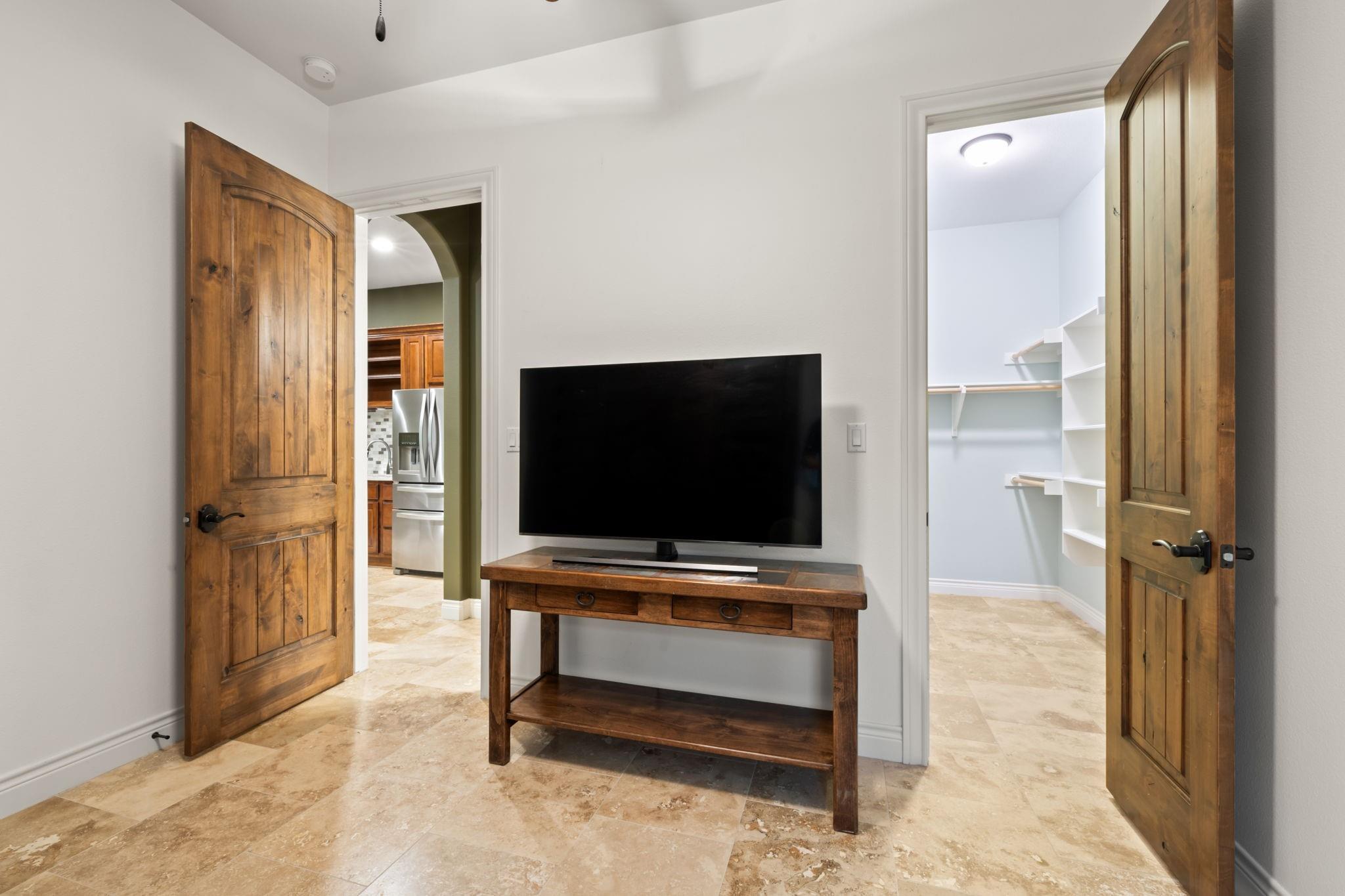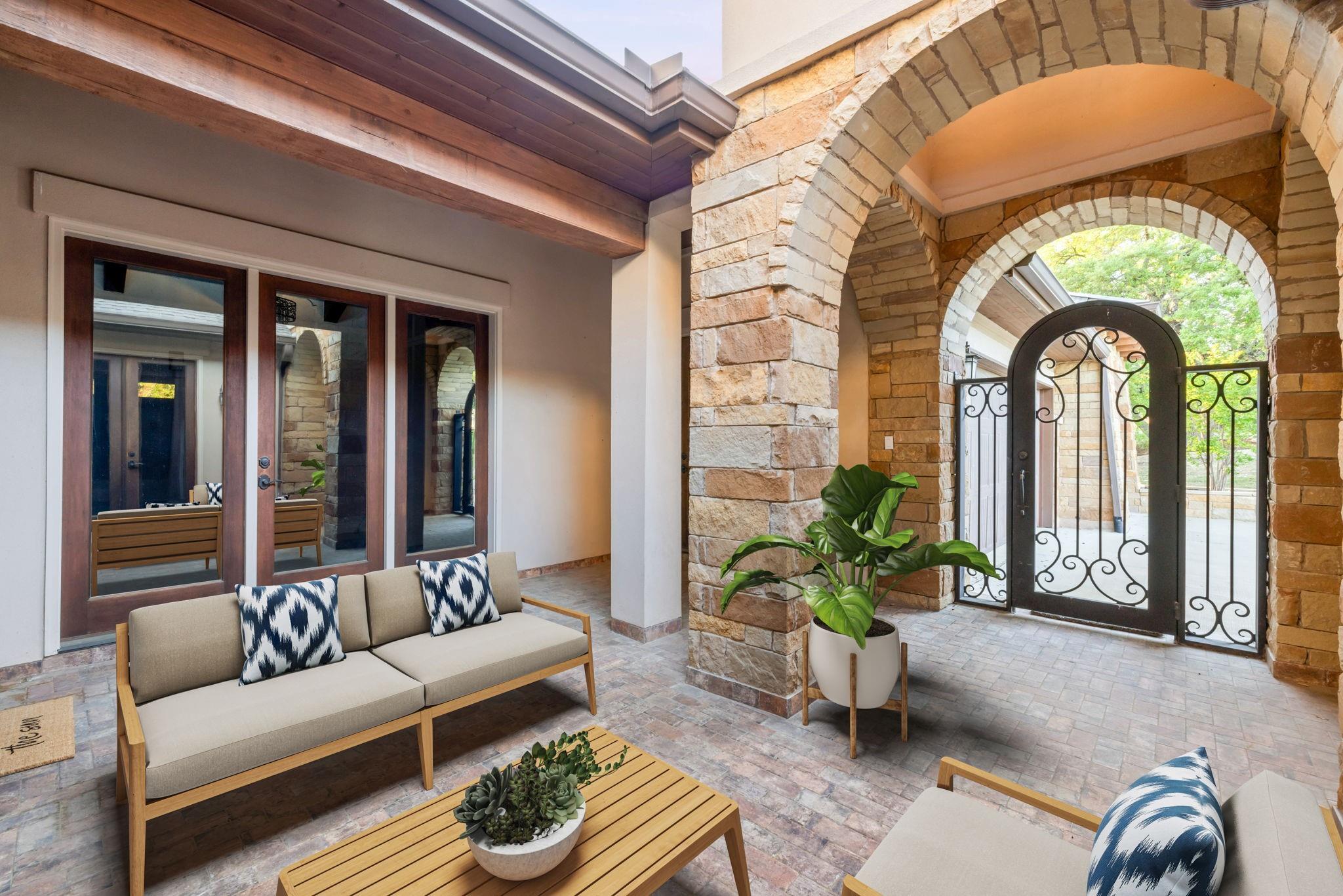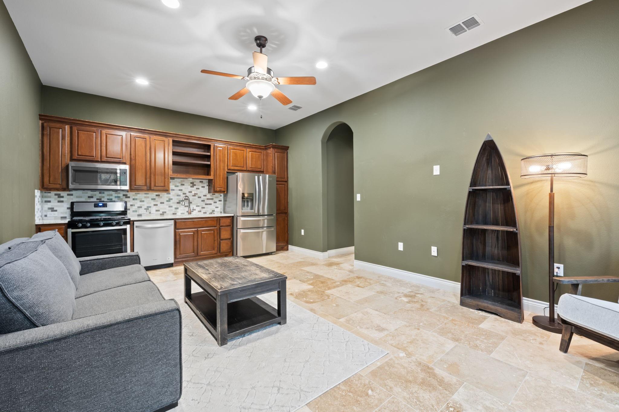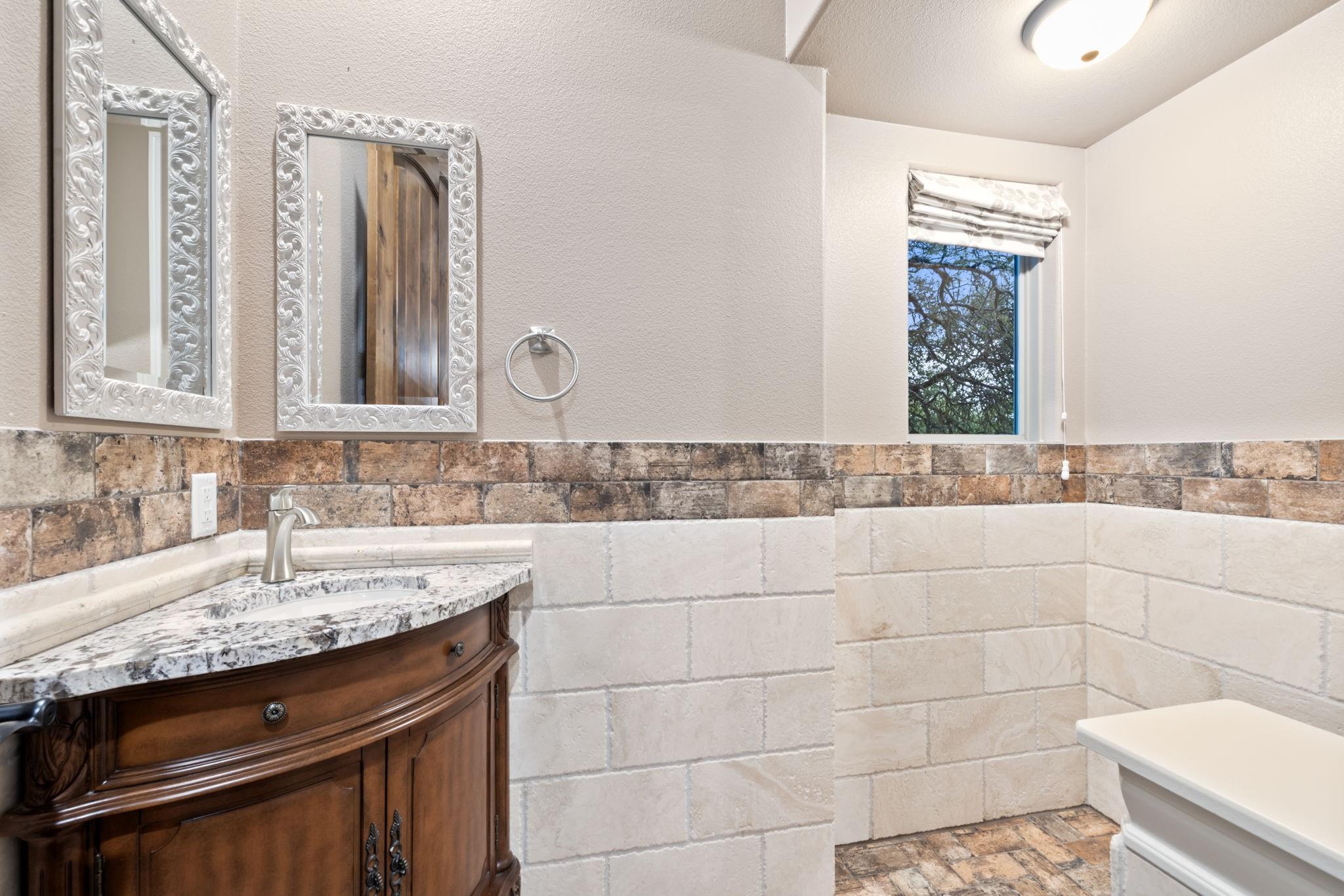 Immerse Yourself in Hill Country Opulence: Unparalleled Luxury awaits in this expansive Hill Country estate nestled within the prestigious La Ventana community. Spread across 2.44 private acres, this residence offers a sanctuary of unparalleled comfort and sophistication. Step Inside: Grand Design: The main home boasts 5 spacious bedrooms, 4 full baths, and a sophisticated powder room. Vaulted ceilings adorned with natural wood beams create a sense of grandeur, while custom-painted cabinetry and a large island with a subway tile backsplash elevate the gourmet kitchen to a chef's haven. Tranquil Retreat: An executive office, or optional 4th bedroom, features a hidden bookcase closet for a truly serene workspace overlooking a secured courtyard. Panoramic Paradise: The second level unveils a dedicated flex room, a 3rd bedroom, and dedicated workspace niche with its own private outdoor patio. Imagine waking up to breathtaking vistas of the sparkling pool, rolling Hill Country terrain, mesmerizing sunsets, and even a golf course! A Haven for Guests: Indulge your guests in unparalleled privacy with a separate 1 bedroom/1 bathroom apartment complete with a full kitchenette and living room. This self-contained haven boasts a built-in Murphy full sized bunk bed for added convenience, and a delightful spacious private yard. This apartment offers the perfect blend of independence and luxury. Outdoor Oasis: Embrace the Hill Country lifestyle with an expansive heated pool feat. an Oasis waterfall, a natural diving board, and a swim-up hot tub bar. Relax under the shade of a custom awning, or whip up a gourmet meal in the fully-equipped outdoor kitchen. A private, direct-access creek awaits just steps away, offering a tranquil escape into the heart and peace of the Hill Country. Beyond the Estate: Enjoy the plethora of additional amenities offered by the exclusive Ranchers Club, all within a short stroll from your doorstep.