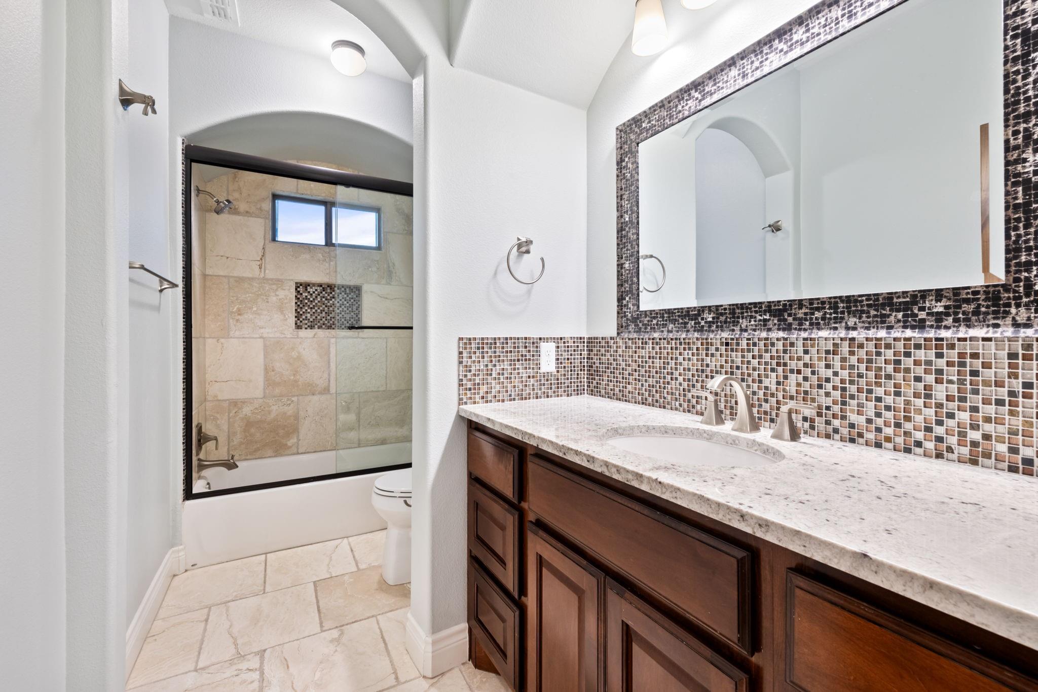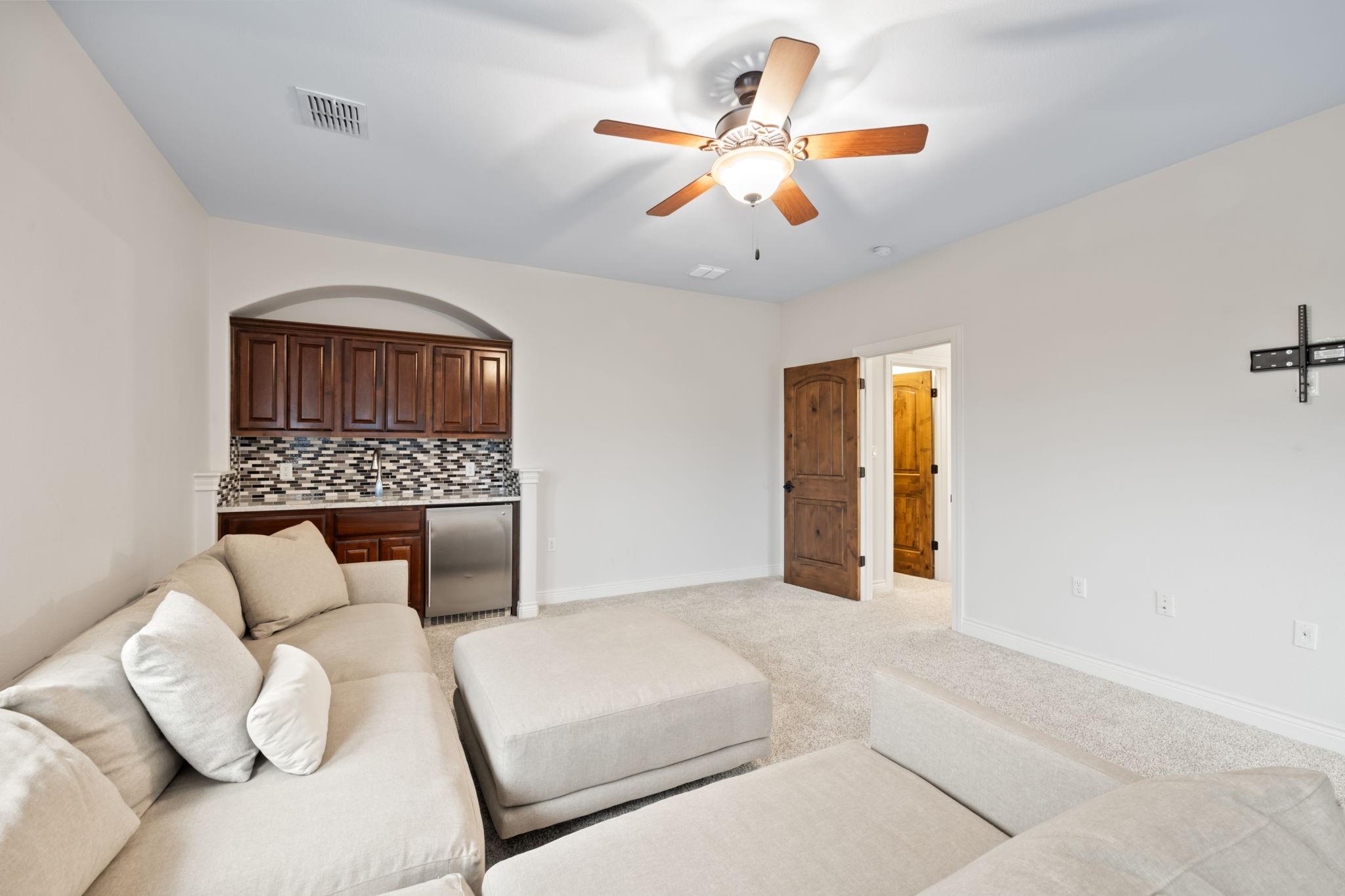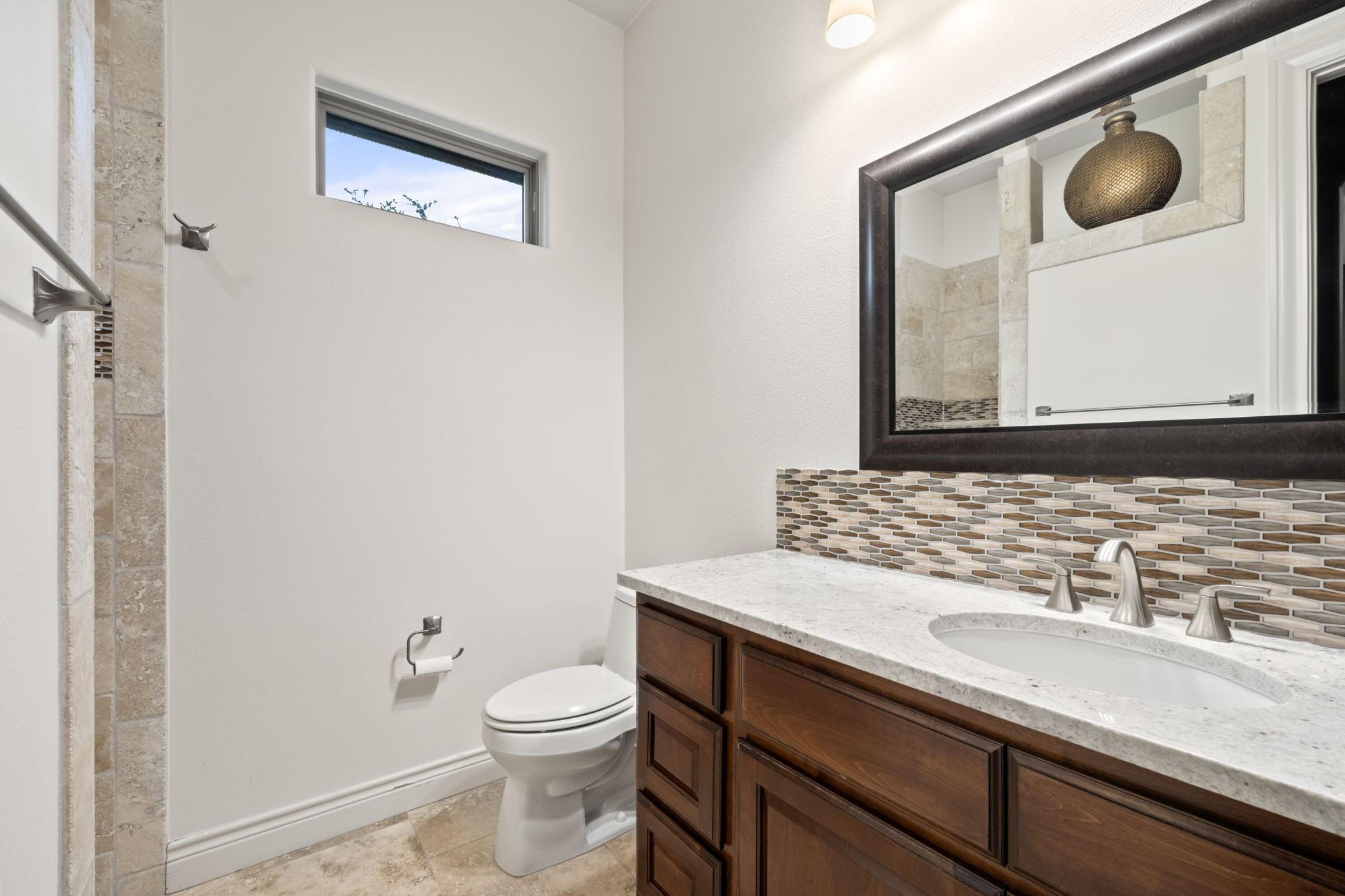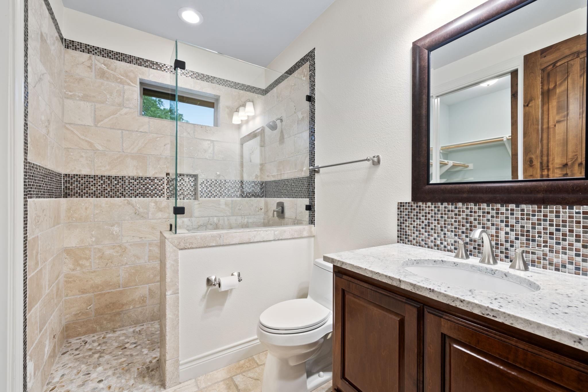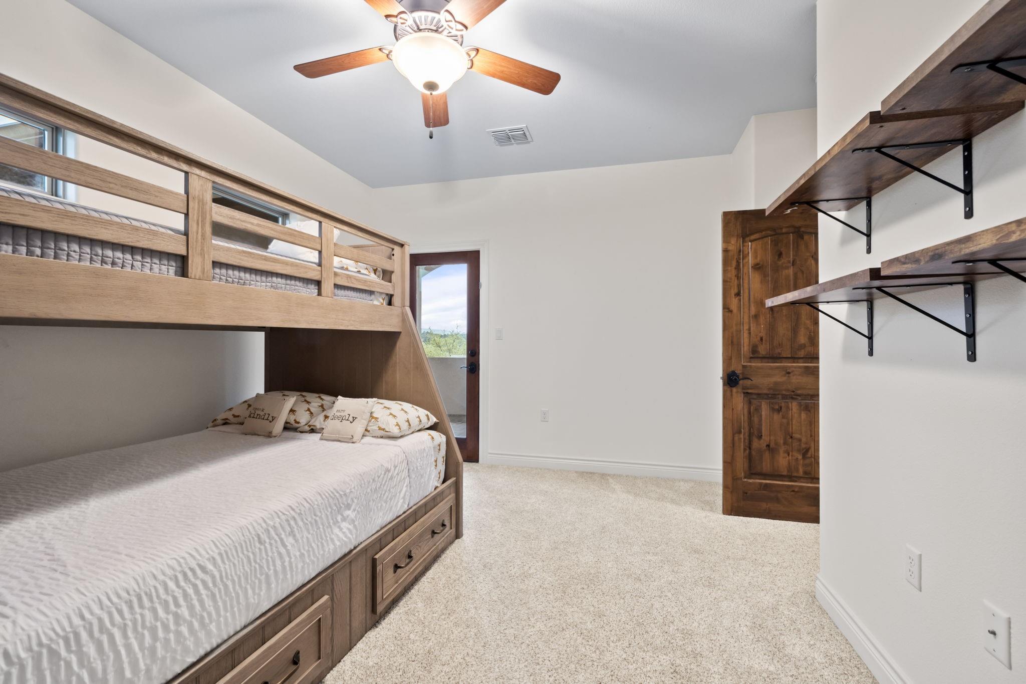 Immerse Yourself in Hill Country Opulence: Unparalleled Luxury awaits in this expansive Hill Country estate nestled within the prestigious La Ventana community. Spread across 2.44 private acres, this residence offers a sanctuary of unparalleled comfort and sophistication. Step Inside: Grand Design: The main home boasts 5 spacious bedrooms, 4 full baths, and a sophisticated powder room. Vaulted ceilings adorned with natural wood beams create a sense of grandeur, while custom-painted cabinetry and a large island with a subway tile backsplash elevate the gourmet kitchen to a chef's haven. Tranquil Retreat: An executive office, or optional 4th bedroom, features a hidden bookcase closet for a truly serene workspace overlooking a secured courtyard. Panoramic Paradise: The second level unveils a dedicated flex room, a 3rd bedroom, and dedicated workspace niche with its own private outdoor patio. Imagine waking up to breathtaking vistas of the sparkling pool, rolling Hill Country terrain, mesmerizing sunsets, and even a golf course! A Haven for Guests: Indulge your guests in unparalleled privacy with a separate 1 bedroom/1 bathroom apartment complete with a full kitchenette and living room. This self-contained haven boasts a built-in Murphy full sized bunk bed for added convenience, and a delightful spacious private yard. This apartment offers the perfect blend of independence and luxury. Outdoor Oasis: Embrace the Hill Country lifestyle with an expansive heated pool feat. an Oasis waterfall, a natural diving board, and a swim-up hot tub bar. Relax under the shade of a custom awning, or whip up a gourmet meal in the fully-equipped outdoor kitchen. A private, direct-access creek awaits just steps away, offering a tranquil escape into the heart and peace of the Hill Country. Beyond the Estate: Enjoy the plethora of additional amenities offered by the exclusive Ranchers Club, all within a short stroll from your doorstep.