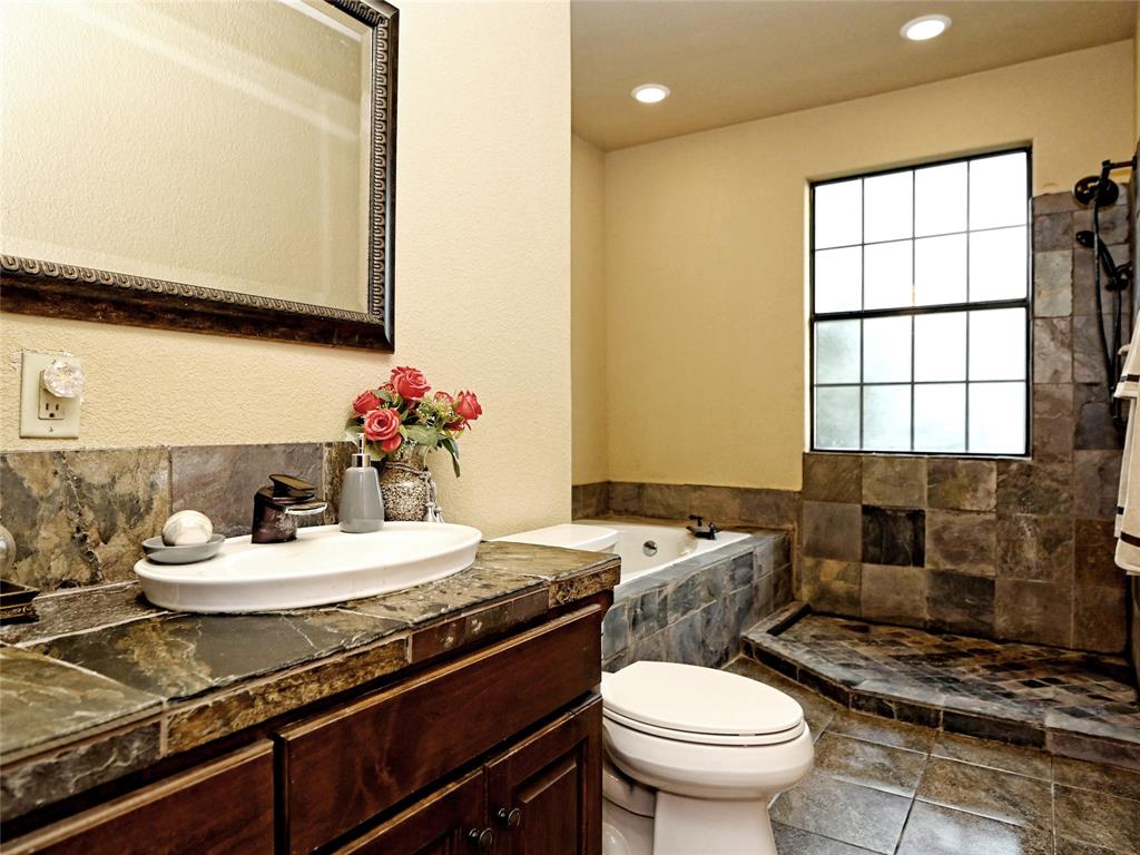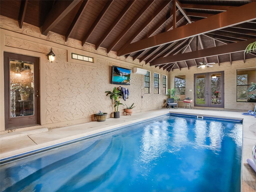 Sitting on almost 1.5 acres at the end of a cul-de-sac with many gorgeous native oak trees throughout, this gorgeous estate is located between SH130 and FM 973. You’ll enjoy easy access to the airport, downtown, Samsung, TESLA, Travis Expo Center, & the University. As guests pull into the circular driveway, your greeted with a tranquil garden and fountain. Enter through the custom iron double doors & into a grand foyer that hosts a baby grand piano, impeccable living spaces, and a peaceful outdoor courtyard with flagstone walkways, garden, and plenty of natural sunlight to fill the house! This house is an entertainer's dream with an adjacent formal dining room & a wet bar. There is an informal dining area just off the gourmet chef’s kitchen with a fantastic breakfast bar. The kitchen is a dream for those who inspire to cook with a wealth of prep space and storage for meals prepared on the six burner DCS Paykel Stove. There is an attached casita above the garage featuring a stylish secondary kitchen, large bedroom & another full ensuite. The oversized primary suite is on the first level, has access to the outdoor back patio with great views of the private backyard. The adjoining primary bath has large walk-in shower, soaking tub with dual vanities & his and her double walk-in closets. We can’t forget about the INDOOR POOL with a tranquil covered patio just through the double doors. On the other side of the pool is an exercise room & media room. The main living room is open to the kitchen & has a spectacular floor to ceiling stone fireplace. Off the living room you can exit onto the incredible backyard covered patio with captivating views & space for an outdoor kitchen. Enjoy parking your cars with a side entrance to a private driveway with 4-car garage space. There is plenty of outdoor living space on this estate to entertain your friends, neighbors, or kids, or just enjoy the beauty & tranquility this lot presents.