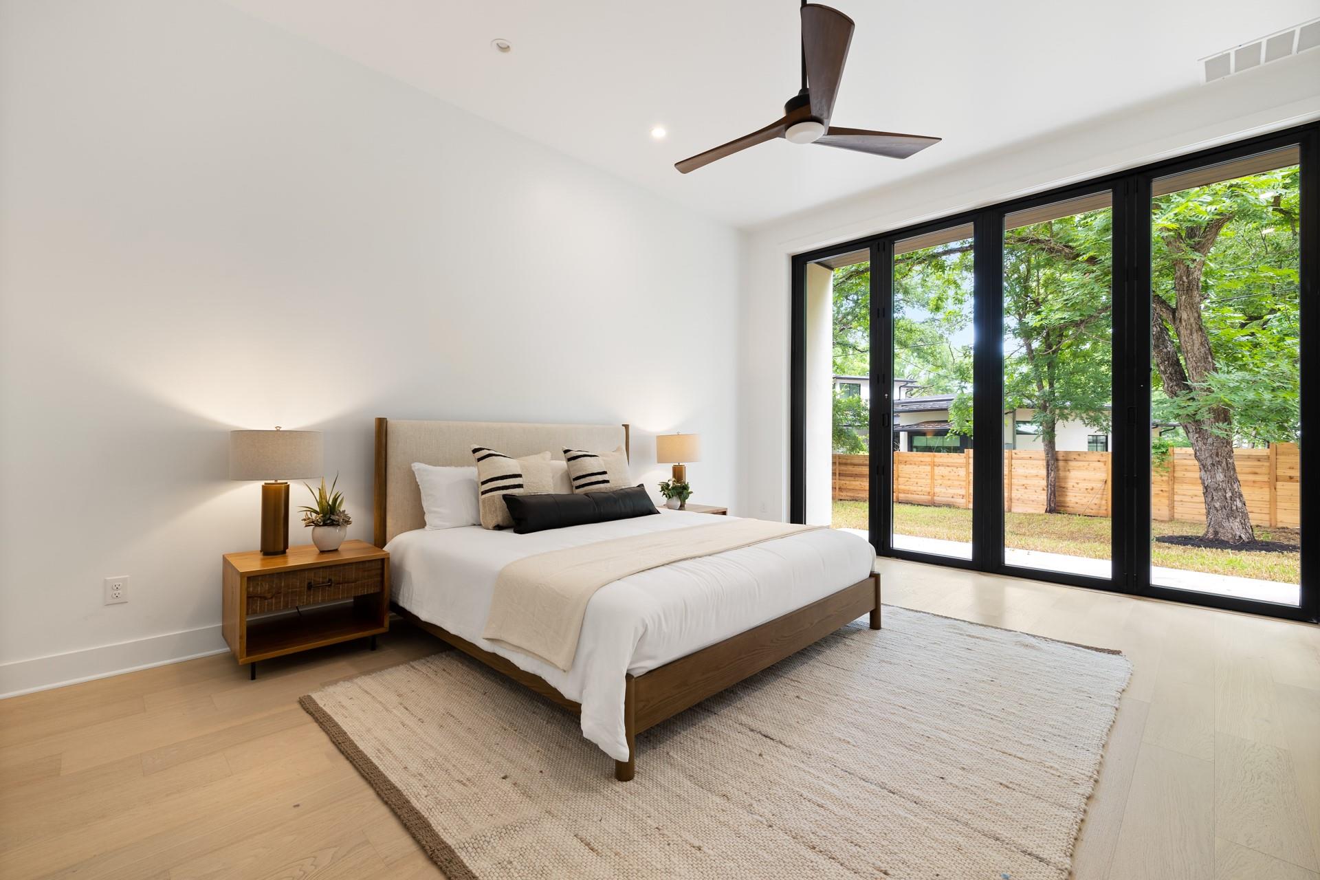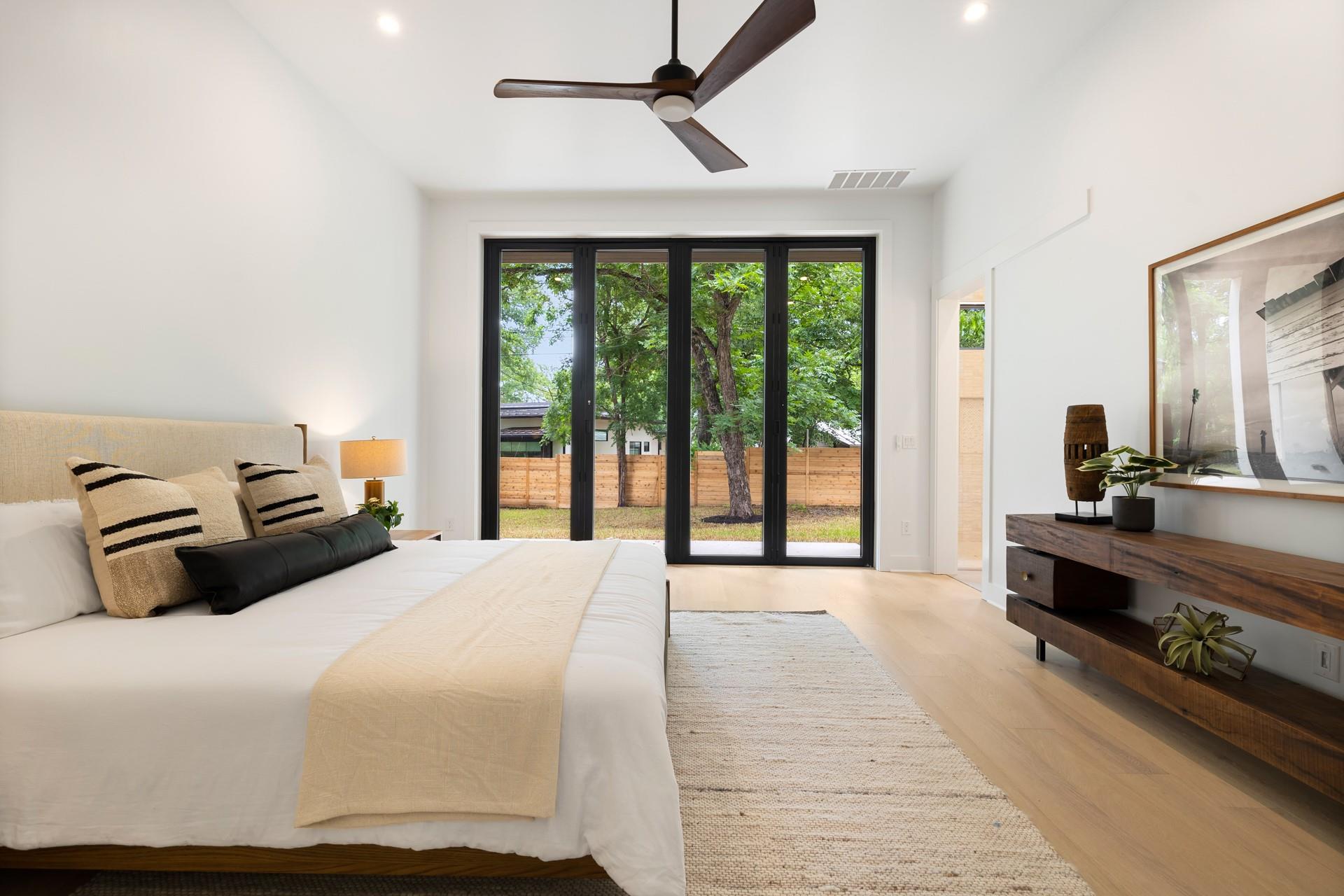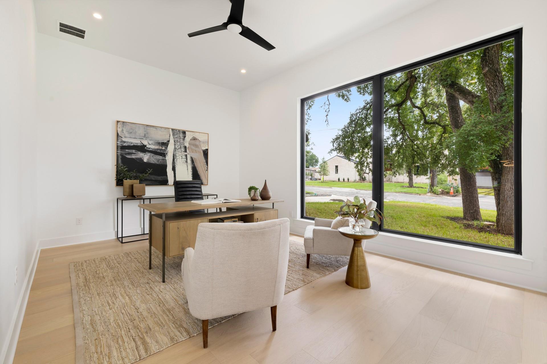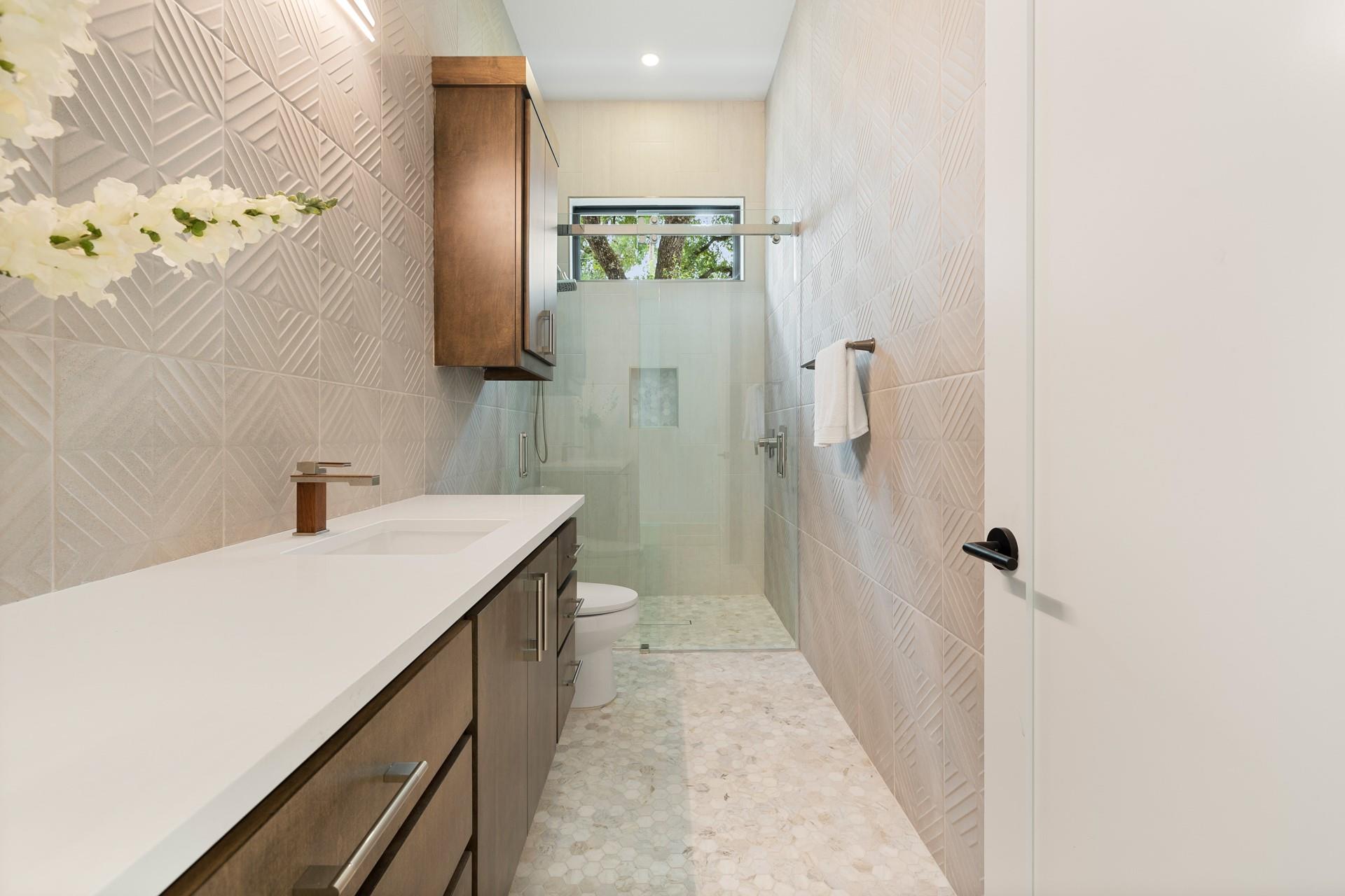 Occupying a generous 0.263-acre lot with direct access to the Barton Creek Greenbelt, this expansive dwelling spans over 4,300 square feet. It features a thoughtful layout comprising four bedrooms, four bathrooms and a study. With captivating design elements such as floor-to-ceiling windows, vast sliding glass doors, and select designer finishes. The grand entryway ushers into a seamlessly integrated kitchen, dining, and living area, underpinned by majestic 12-foot ceilings. The kitchen, a culinary haven, is equipped with high-end stainless steel Thermador appliances, custom cabinetry, a grand island, recessed lighting, a state-of-the-art Ruvati workstation sink, and a large walk-in butler's pantry with a second refrigerator. The essence of indoor-outdoor living is captured as the extensive glass doors reveal an expansive outdoor kitchen and living space, complete with a fireplace, all overlooking the backyard sanctuary. The ground-floor owner's suite is a retreat in itself, featuring an ensuite bathroom with a double vanity, a double shower encased in seamless glass alongside a soaking tub, and a vast walk-in closet with custom organization solutions. Ascending to the second floor, you will find three additional bedrooms, each boasting walk-in closets, alongside a large game room equipped with a full kitchen, culminating in a spacious covered balcony nestled among the treetops and views of the hill country. Hayes Builders is renowned for their emphasizing homes that not only excel in energy efficiency but also significantly lessen environmental impact, conserve water, enhance indoor air quality, and achieve LEED for Homes certification. Notable construction details include an engineered post-tension slab foundation, an oversized 8x18 foot garage door, automatic fresh air intakes, and more. An exceptional offering is the Hayes Builders' two-year heating and cooling guarantee, underscoring their commitment to quality and sustainability. Pool included.