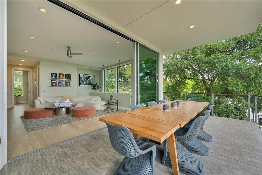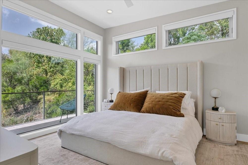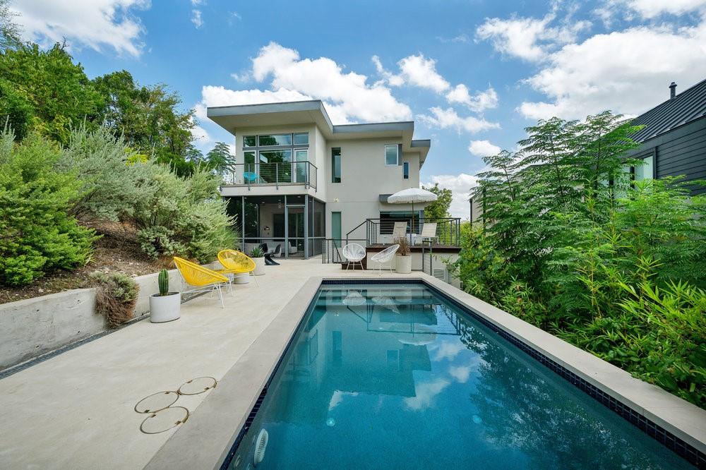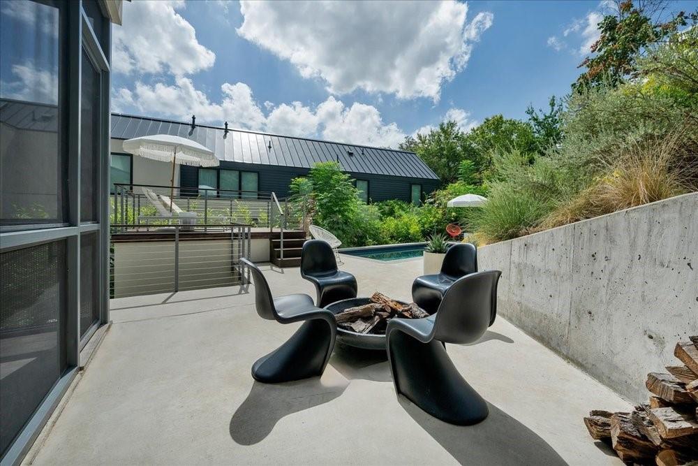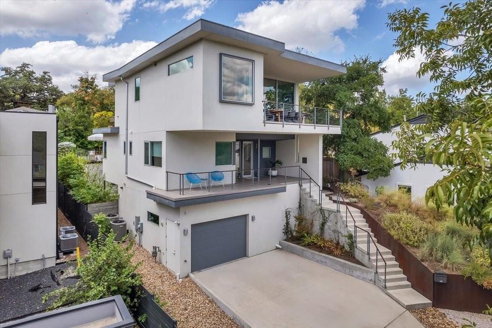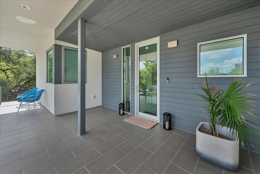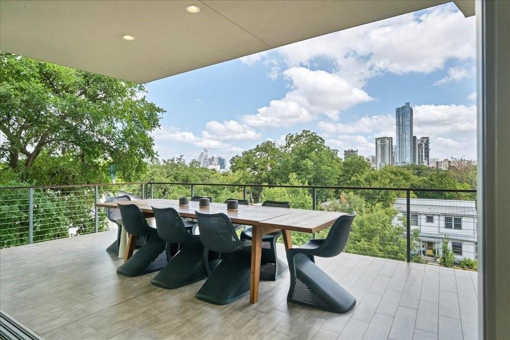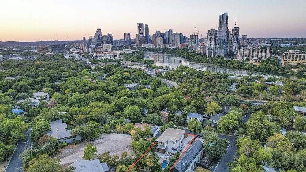 Stunning modernist home located within the desirable Travis Heights neighborhood boasting Downtown views and a truely walkable location. Situated just steps away from the picturesque shores of Lady Bird Lake, this property offers a truly exceptional living experience. As you step inside, you will be captivated by the high-caliber custom design that exudes perfection at every turn. The functional outdoor living spaces include expansive balconies and a screened porch, providing ample opportunities to enjoy the beautiful surroundings. The attention to detail is evident throughout with features such as 5" white oak flooring, custom cabinetry, steel accents, and top-of-the-line Wolf and Sub Zero appliances. The sustainable design of this home ensures a low cost of ownership. From its high elevation and north-facing orientation to its unparalleled craftsmanship and commercial-grade construction, every aspect has been carefully considered. Additionally, the property boasts a remarkable 2500-gallon rain collection system that enables the entire home to run off reverse osmosis rainwater. Investors will appreciate the STR (Short-Term Rental) investment opportunity that comes with projected annual NET revenue of $130k adding another layer of appeal to this already outstanding property. Plans to add an extra bedroom, connecting the pool area to the back bedroom, to convey with sale.