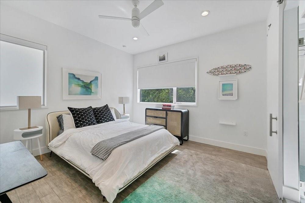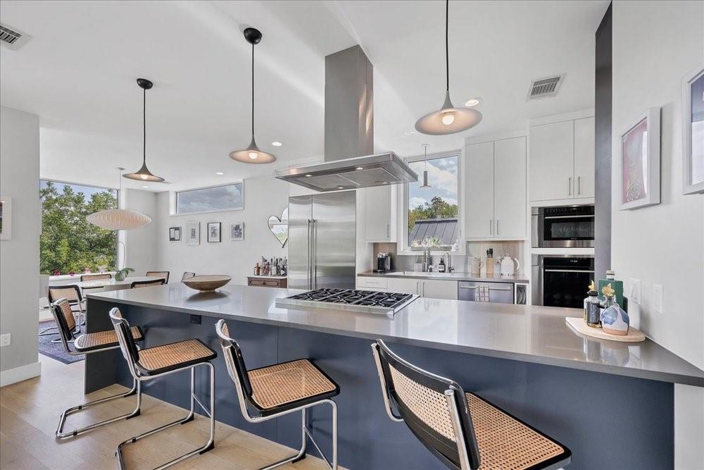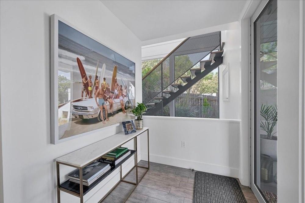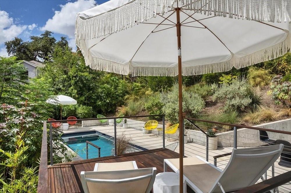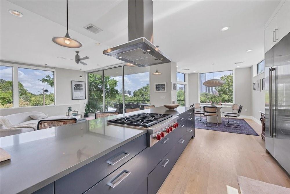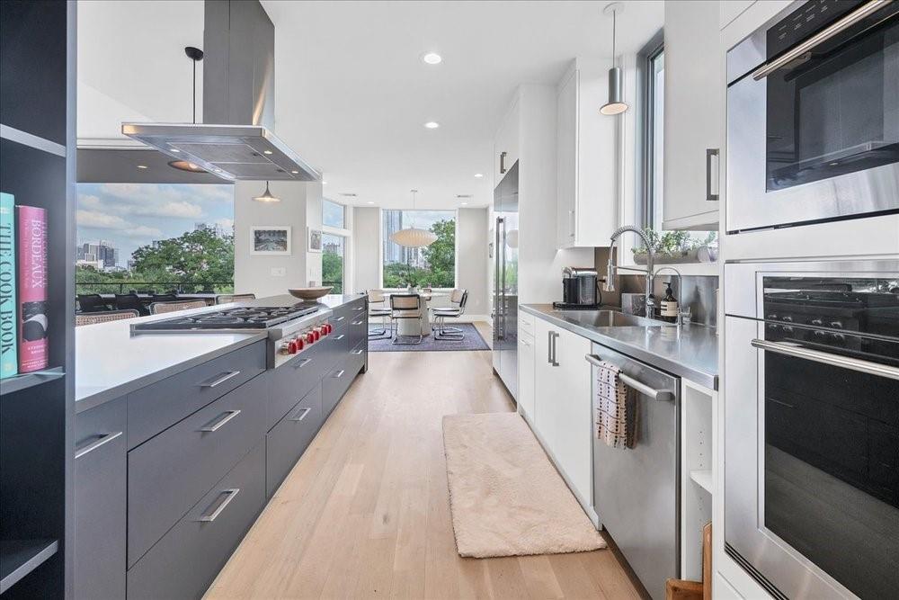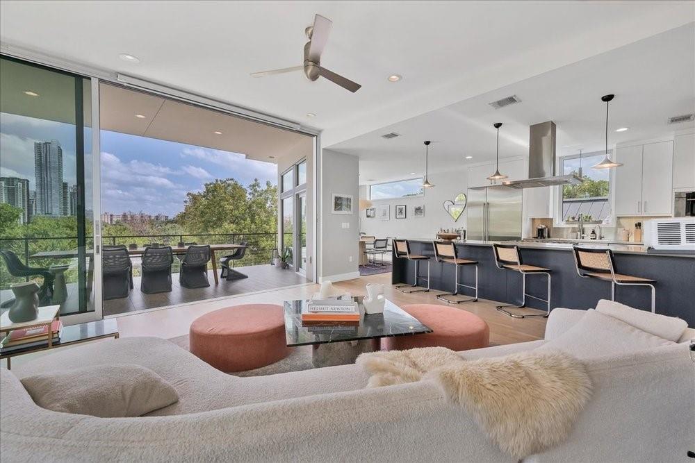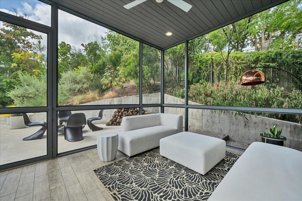 Stunning modernist home located within the desirable Travis Heights neighborhood boasting Downtown views and a truely walkable location. Situated just steps away from the picturesque shores of Lady Bird Lake, this property offers a truly exceptional living experience. As you step inside, you will be captivated by the high-caliber custom design that exudes perfection at every turn. The functional outdoor living spaces include expansive balconies and a screened porch, providing ample opportunities to enjoy the beautiful surroundings. The attention to detail is evident throughout with features such as 5" white oak flooring, custom cabinetry, steel accents, and top-of-the-line Wolf and Sub Zero appliances. The sustainable design of this home ensures a low cost of ownership. From its high elevation and north-facing orientation to its unparalleled craftsmanship and commercial-grade construction, every aspect has been carefully considered. Additionally, the property boasts a remarkable 2500-gallon rain collection system that enables the entire home to run off reverse osmosis rainwater. Investors will appreciate the STR (Short-Term Rental) investment opportunity that comes with projected annual NET revenue of $130k adding another layer of appeal to this already outstanding property. Plans to add an extra bedroom, connecting the pool area to the back bedroom, to convey with sale.