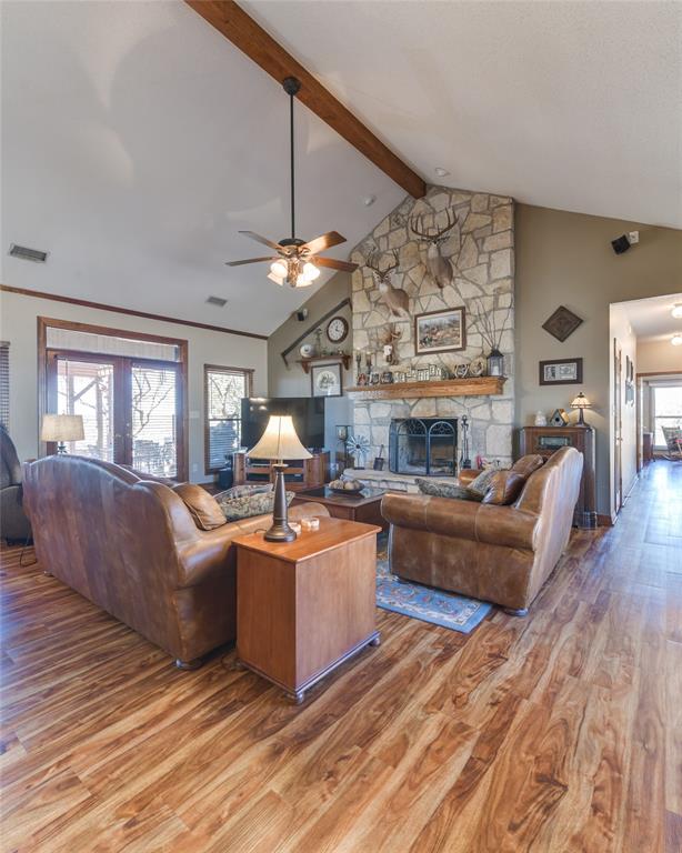 The Double M ranch sits in the rolling hills just north of Hamilton, Texas. This ranch boasts breathtaking views of North/Central Hamilton County. Deep draws cut through the ranch; these draws come to life in the wet months. Several swimming holes have been developed for the kids to splash around and explore in the summer months. The deer population has had minimal pressure over the year, and the owners have done a fantastic job building a robust deer herd. This 477-acre tract offers so much currently, with the ability to develop it further into a phenomenal game ranch. A ranch-style home sits on a high hill with a 180-degree view of the surrounding countryside. The home was built in 2001; it is 2,866 sq. ft., with three bedrooms and two bathrooms. The kitchen, living room, and dining room sit in the middle of the home, with two bedrooms, an office on one wing, and the master bedroom on the opposite side of the home. The backyard is a wonderful oasis with a pool, pergola, poolside cabana, and dog run. Next to the home sits a 2,000 sq. ft., barn with a 1,000 sq. ft overhang on the side for storing additional equipment and implements. During wetter years, the ranch comes alive with seeps and trickling wet weather creeks. Several spots make for great swimming holes for the kids to explore, and there are also so cool waterfalls tucked back in the woods. The owner has built two ponds that have done well through the drought to hold water for wildlife still.