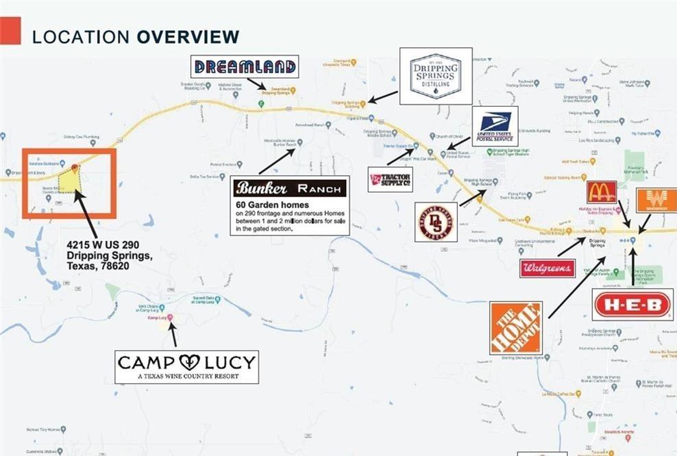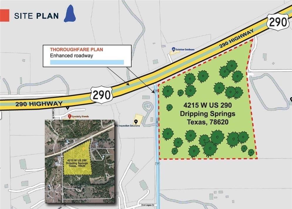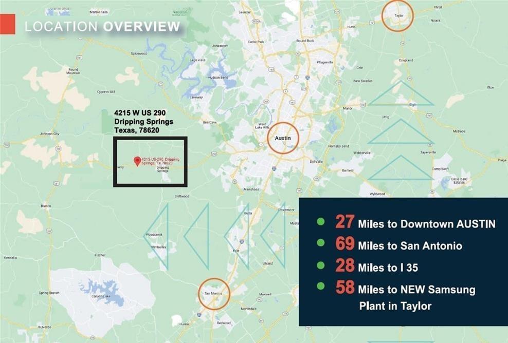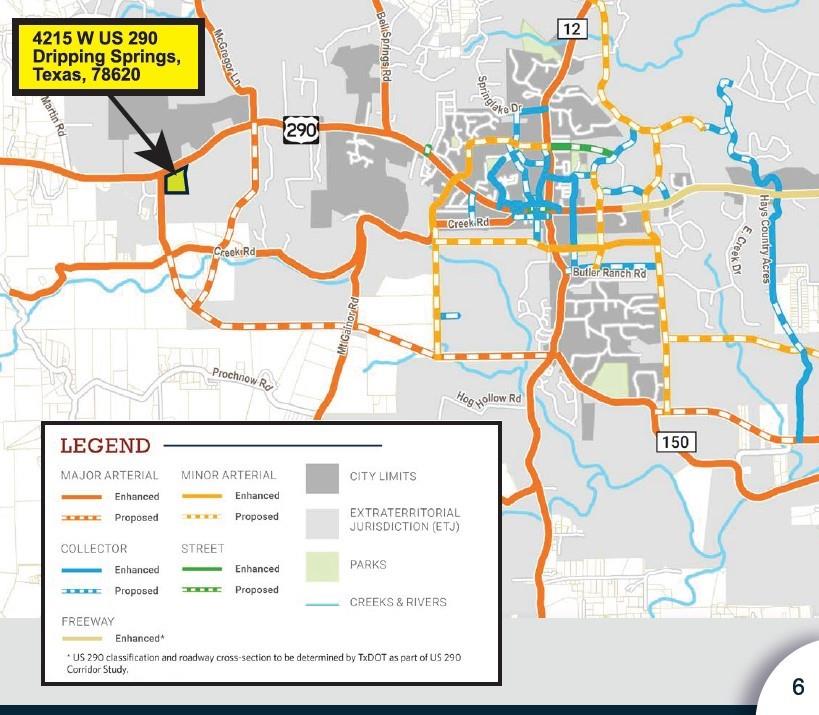 20.71-acre prime corner development commercial tract with Highway 290 frontage, and frontage on the corner of the proposed future loop near the heart of Dripping Springs. Perfectly located along the explosive growing Austin / Dripping Springs Hwy 290 Corridor. Virtually unmatched growth characteristics with 60% population growth over the past decade -- THE #1 FASTEST GROWING COUNTY IN THE U.S. Currently, there are an additional 13,000+ affluent new homes recently completed or currently under development. This location is impeccably positioned to benefit from the $674 Million Oak Hill Parkway Highway project under construction, and the future Dripping Springs Loop. This 12- lane highway project will create an express conveyor from the Dripping Springs area directly to downtown Austin, and be a tremendous catalyst for further accelerated growth.