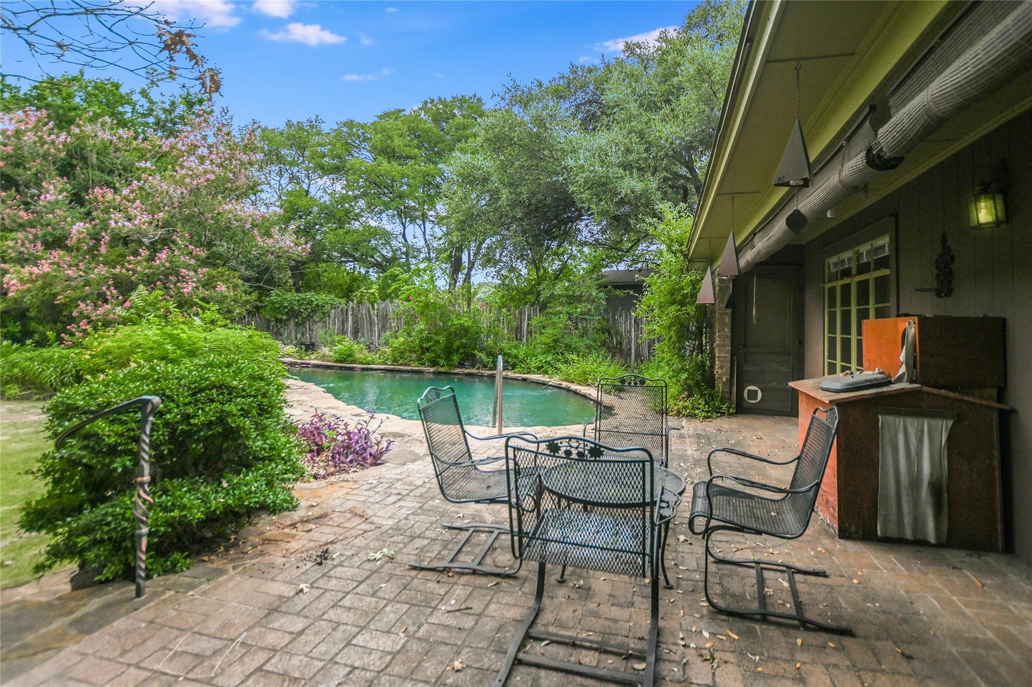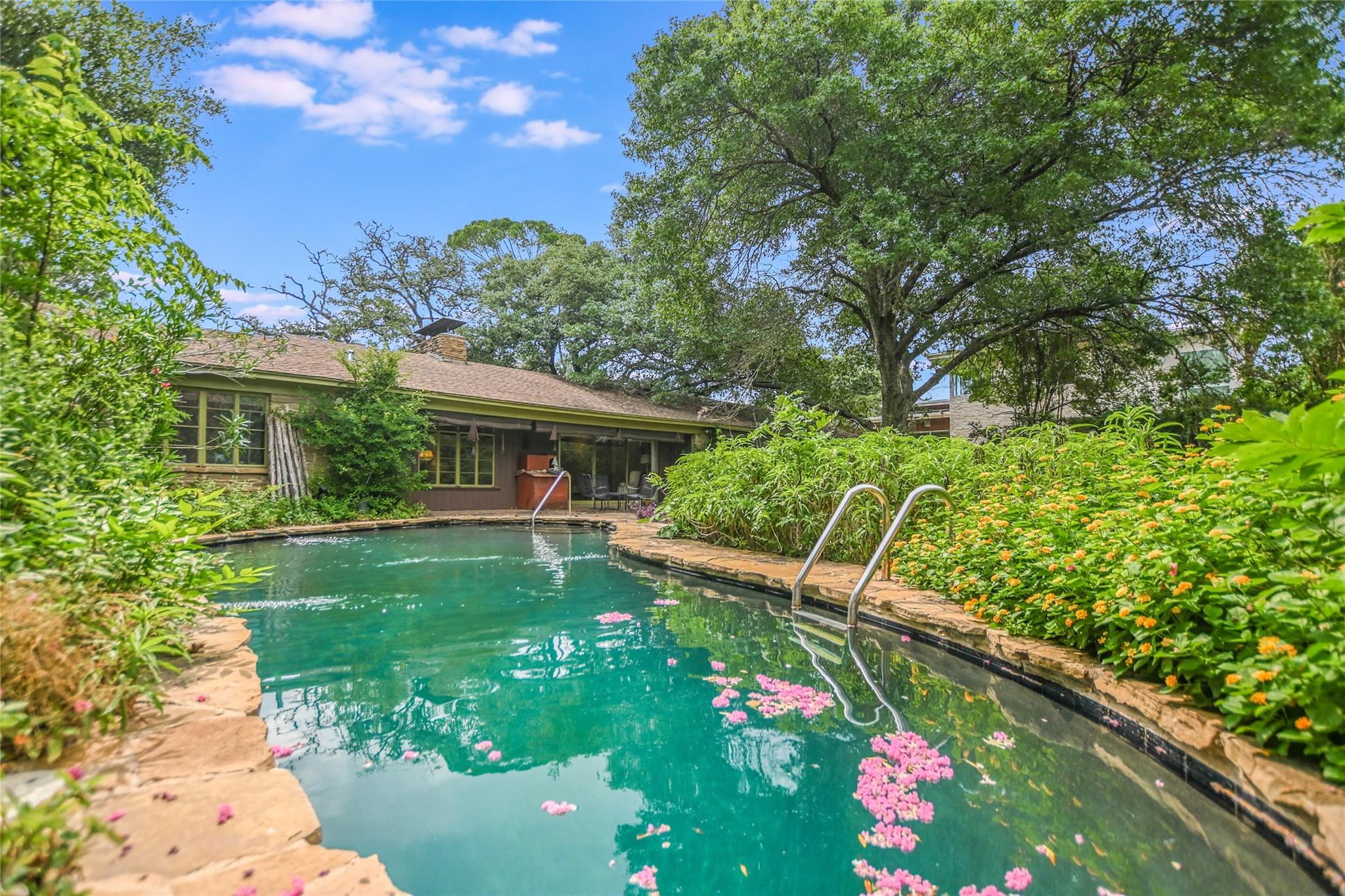 Here is a rare opportunity to own a sizable .649-acre property on Shoal Creek Boulevard, backing up to the creek and with no neighbors behind it. Remodel and expand the existing home or build your new dream home. The large, level building envelope allows for many possibilities. The home has been in the family for two generations and was designed and occupied by Evelyn and Charles Coatsworth Pinkney, a renowned landscape architect whose work can be seen throughout the City of Austin. Mr. Pinkney’s design brings nature “into the home” by incorporating large picture-windows in the living spaces and master suite. The ranch-style home features a large covered front flagstone porch and two large living spaces, each with a fireplace and a picture window. Additionally, the design incorporates significant storage cabinets and built-in shelving. The kitchen and breakfast area were designed as a gathering space for friends and family, with a wonderful view of the landscaped yard and large heritage oak trees at the rear of the property. The master suite is of respectful size and accentuated by another sizable picture window. Two additional bedrooms are at the front of the house, one that has been used as an office, has hardwood flooring, and is of substantial size. The two bathrooms are a walk back in time, appointed with finishes common to the era. Of note throughout the house is the intelligent utilization of space dedicated to storage. Significant features of this property are the backyard and pool. The pool was designed as a “swimming hole” to naturally fit into the landscaping. Given Mr. Pinkney’s profession, you can see the detail to selection of plants and design. At the rear of the property, you will find a large, shaded patio under massive live oaks, pathways to irrigated planting beds, a BBQ grill, and an old path to the creek twenty feet below.