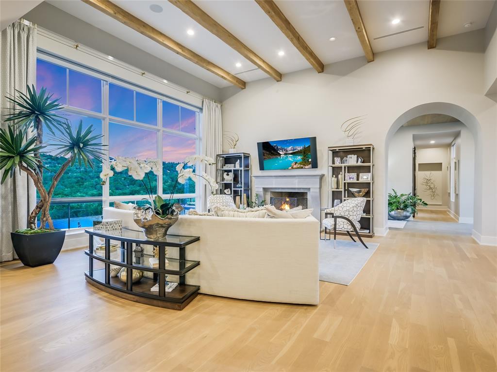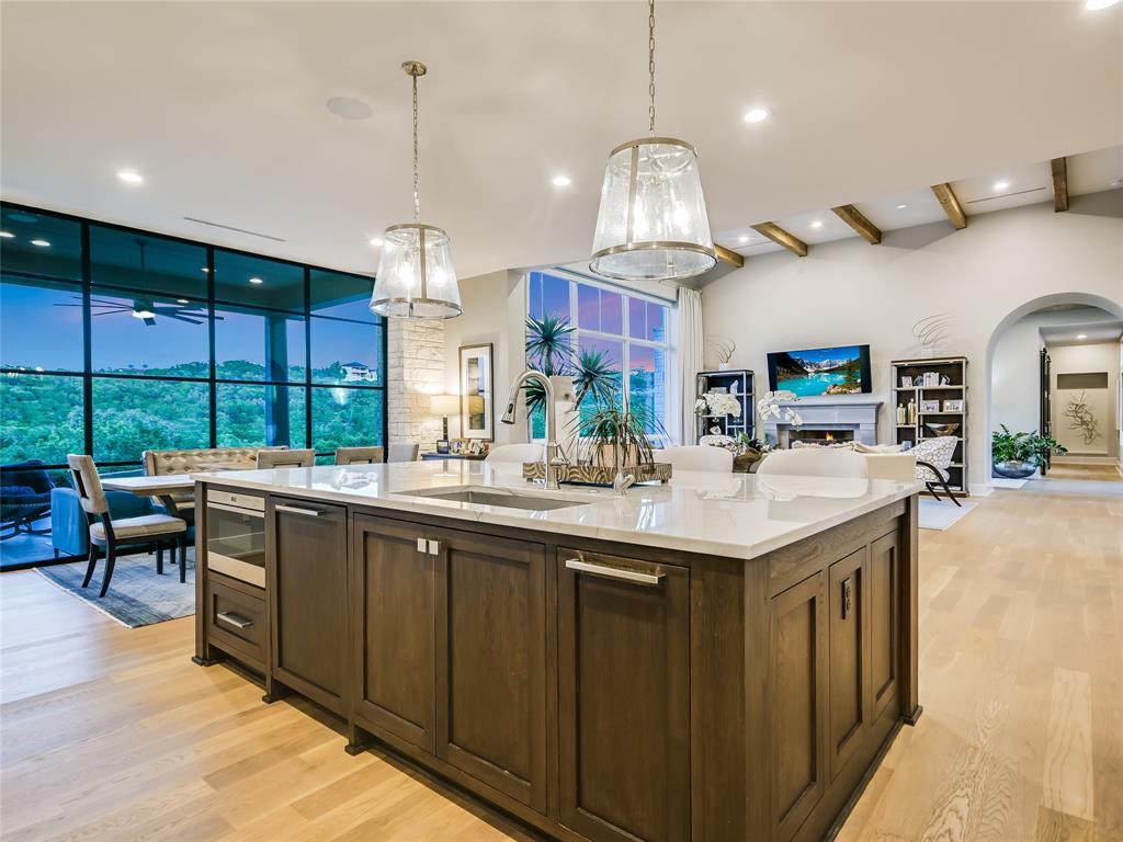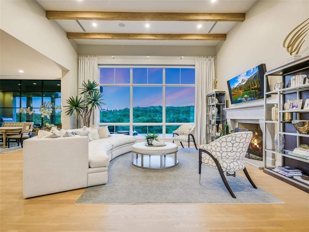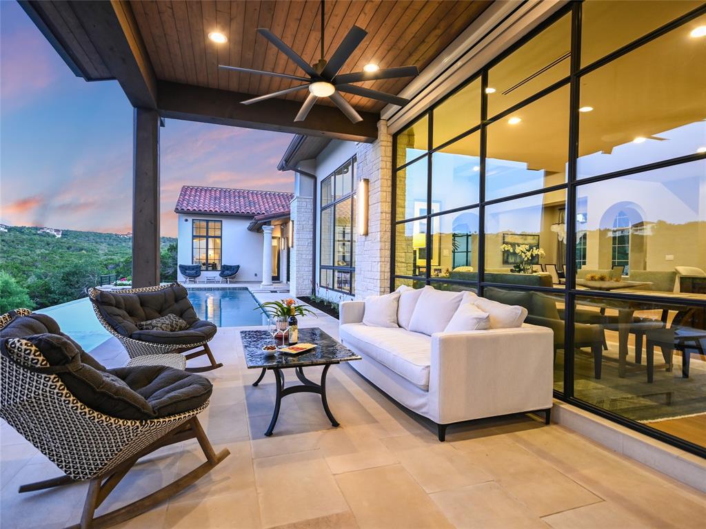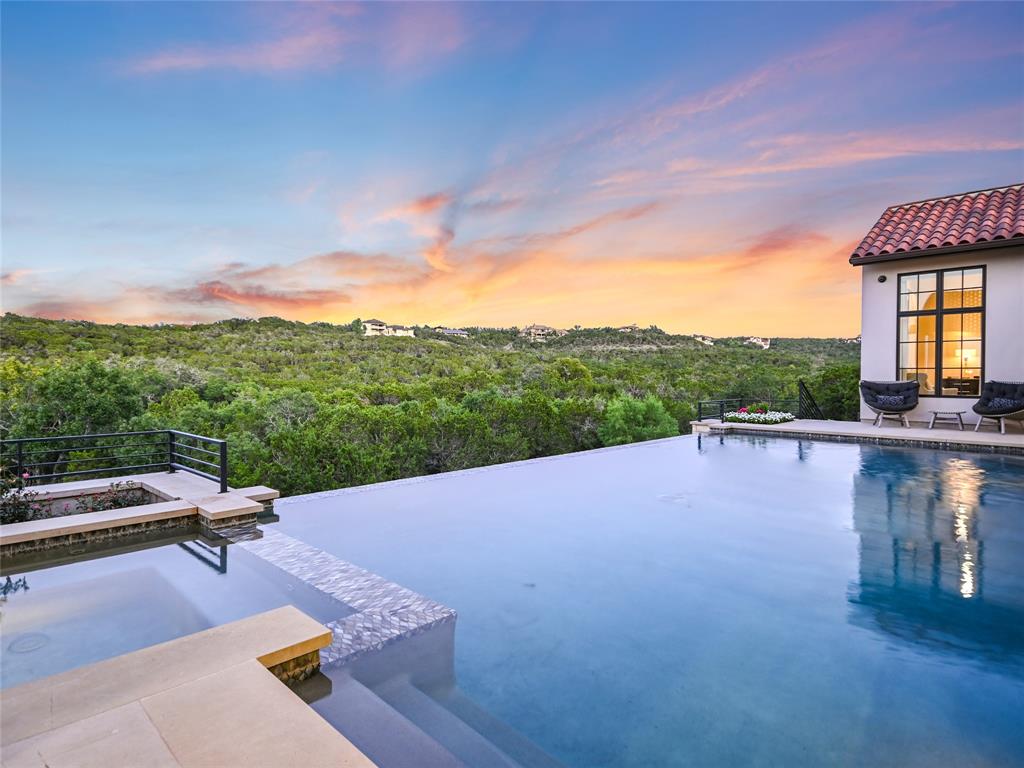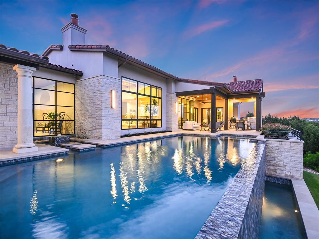 Nestled in one of the most premier neighborhoods in Barton Creek, this timeless single-story contemporary home boasts a lifestyle of unparalleled luxury and sophistication that the neighborhood of Amarra has to offer. Built by the award-winning Heyl Custom Homes, this home features four bedrooms, four and a half bathrooms, three living areas, a three car garage, and a fabulous outdoor living area. Through the arched hallway you'll notice the open-concept floor plan, white oak flooring, stunning floor-to-ceiling steel windows, and an impressive stone fireplace. The spacious living room has sweeping ceilings with accent beams and expansive windows with picturesque views that exemplify a home of peace and serenity. If you love to entertain, this gourmet kitchen is perfect for hosting fabulous events. Enjoy your time in the kitchen with a huge center island, Calcutta Quartzite & stone countertops, 6 burner Wolf range and double ovens. The family room adjacent to the kitchen features a stone fireplace, and a wall of windows. There is also a home office with private access to the back patio. The primary suite is a luxurious escape, tucked away from the rest of the house with beautiful canyon views, a spa like bathroom with marble floors, 2 vanities, soaking tub, oversized marble shower and dual walk-in closets. The covered patio offers an effortless flow of indoor/outdoor enjoyment and an outdoor kitchen. Whether you're cooking on the grill, soaking in the pool, or curled up on the couch, this home is Barton Creek living at its finest. With over 3.5 +- acres this property offers a rare level of privacy. Downtown is a short 20-minute commute, ensuring you can experience the best that city life provides. Enjoy a property owners membership at Omni Barton Creek country club, and note that you are just a few minutes away from the nationally ranked Fazio Canyons golf clubhouse, and the fabulous new restaurants and shops at Lantana.