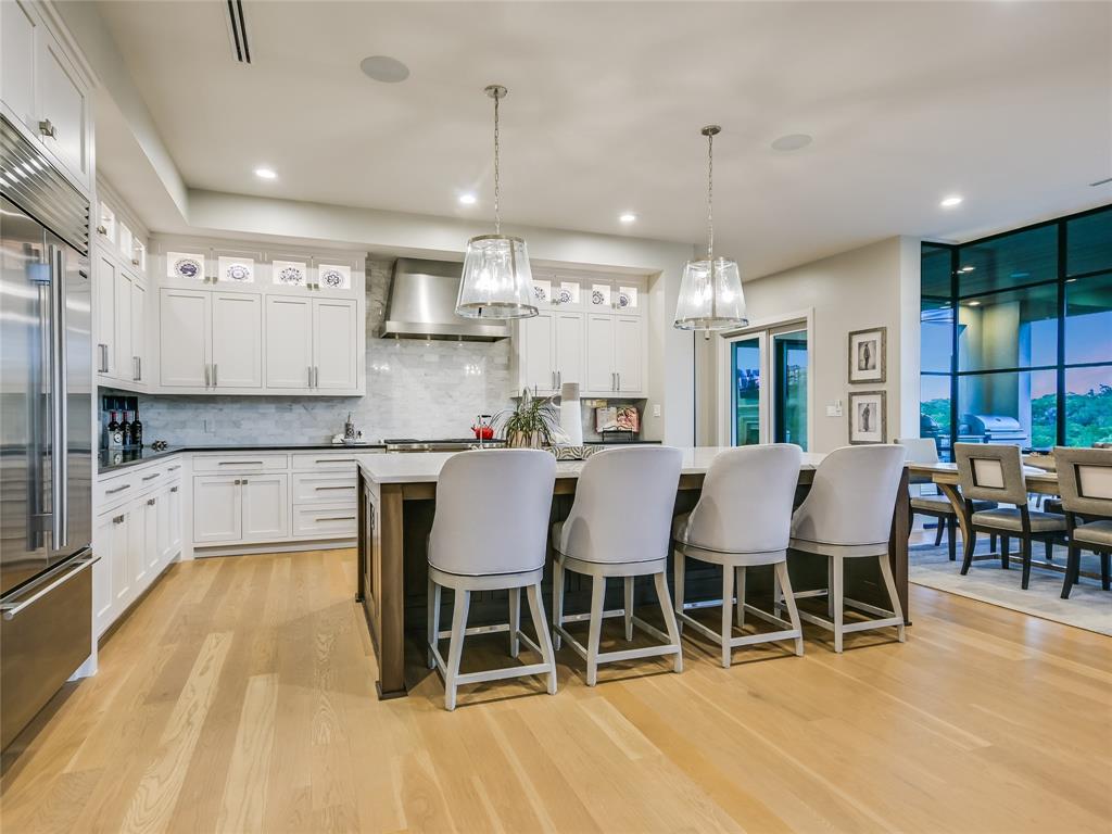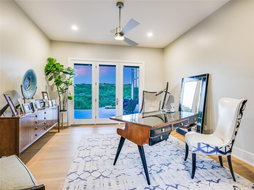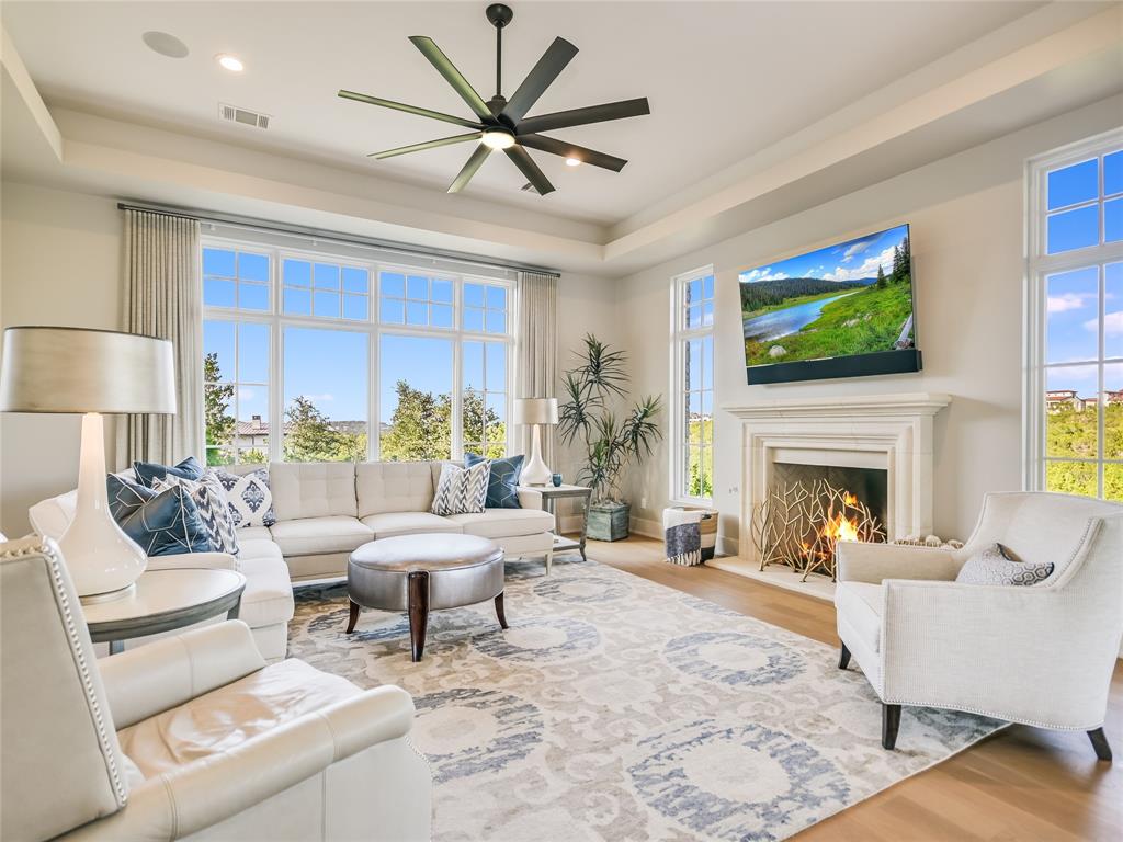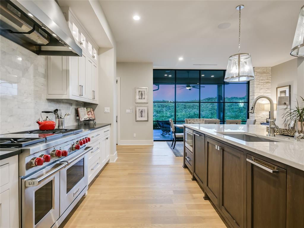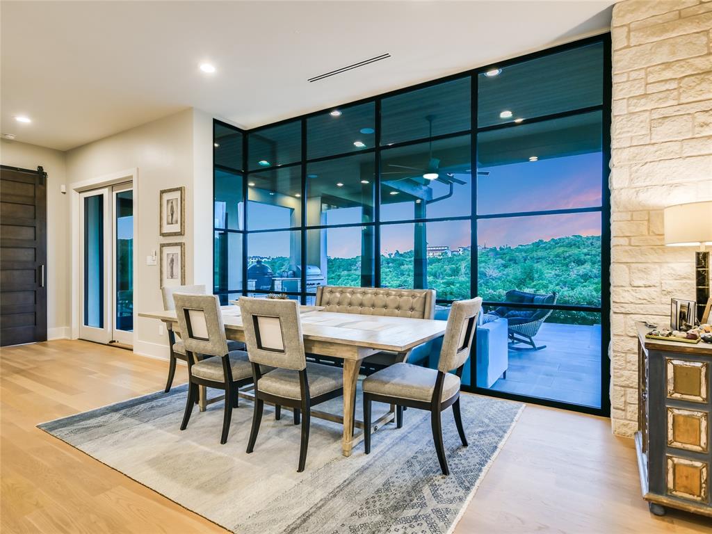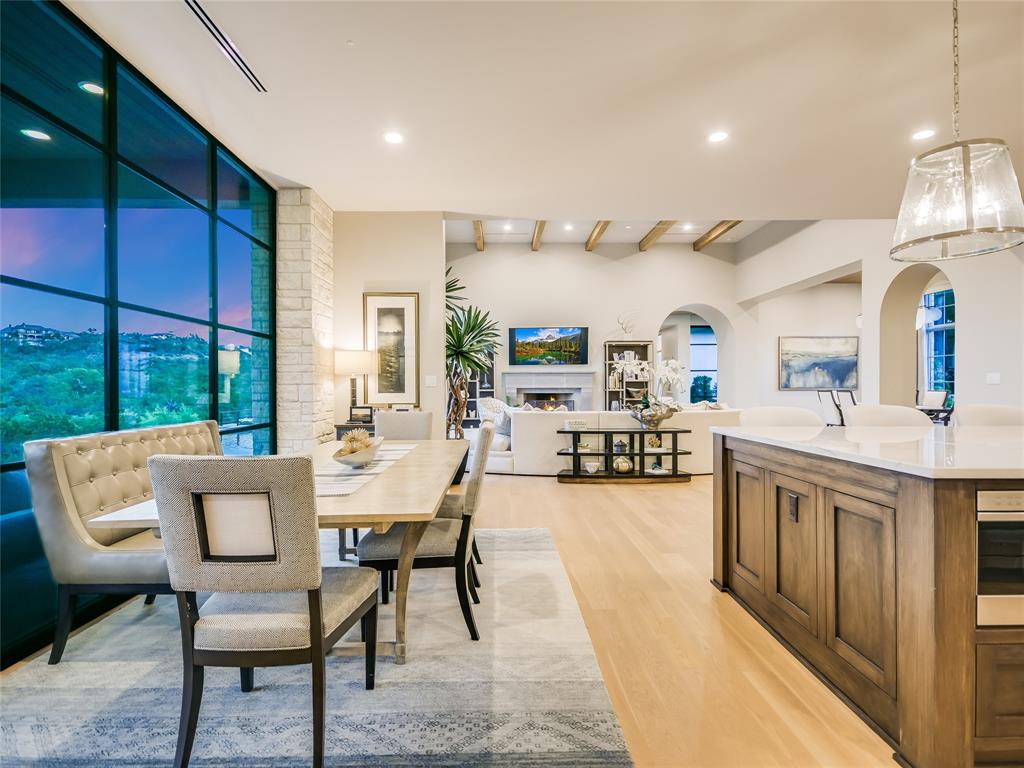 Nestled in one of the most premier neighborhoods in Barton Creek, this timeless single-story contemporary home boasts a lifestyle of unparalleled luxury and sophistication that the neighborhood of Amarra has to offer. Built by the award-winning Heyl Custom Homes, this home features four bedrooms, four and a half bathrooms, three living areas, a three car garage, and a fabulous outdoor living area. Through the arched hallway you'll notice the open-concept floor plan, white oak flooring, stunning floor-to-ceiling steel windows, and an impressive stone fireplace. The spacious living room has sweeping ceilings with accent beams and expansive windows with picturesque views that exemplify a home of peace and serenity. If you love to entertain, this gourmet kitchen is perfect for hosting fabulous events. Enjoy your time in the kitchen with a huge center island, Calcutta Quartzite & stone countertops, 6 burner Wolf range and double ovens. The family room adjacent to the kitchen features a stone fireplace, and a wall of windows. There is also a home office with private access to the back patio. The primary suite is a luxurious escape, tucked away from the rest of the house with beautiful canyon views, a spa like bathroom with marble floors, 2 vanities, soaking tub, oversized marble shower and dual walk-in closets. The covered patio offers an effortless flow of indoor/outdoor enjoyment and an outdoor kitchen. Whether you're cooking on the grill, soaking in the pool, or curled up on the couch, this home is Barton Creek living at its finest. With over 3.5 +- acres this property offers a rare level of privacy. Downtown is a short 20-minute commute, ensuring you can experience the best that city life provides. Enjoy a property owners membership at Omni Barton Creek country club, and note that you are just a few minutes away from the nationally ranked Fazio Canyons golf clubhouse, and the fabulous new restaurants and shops at Lantana.