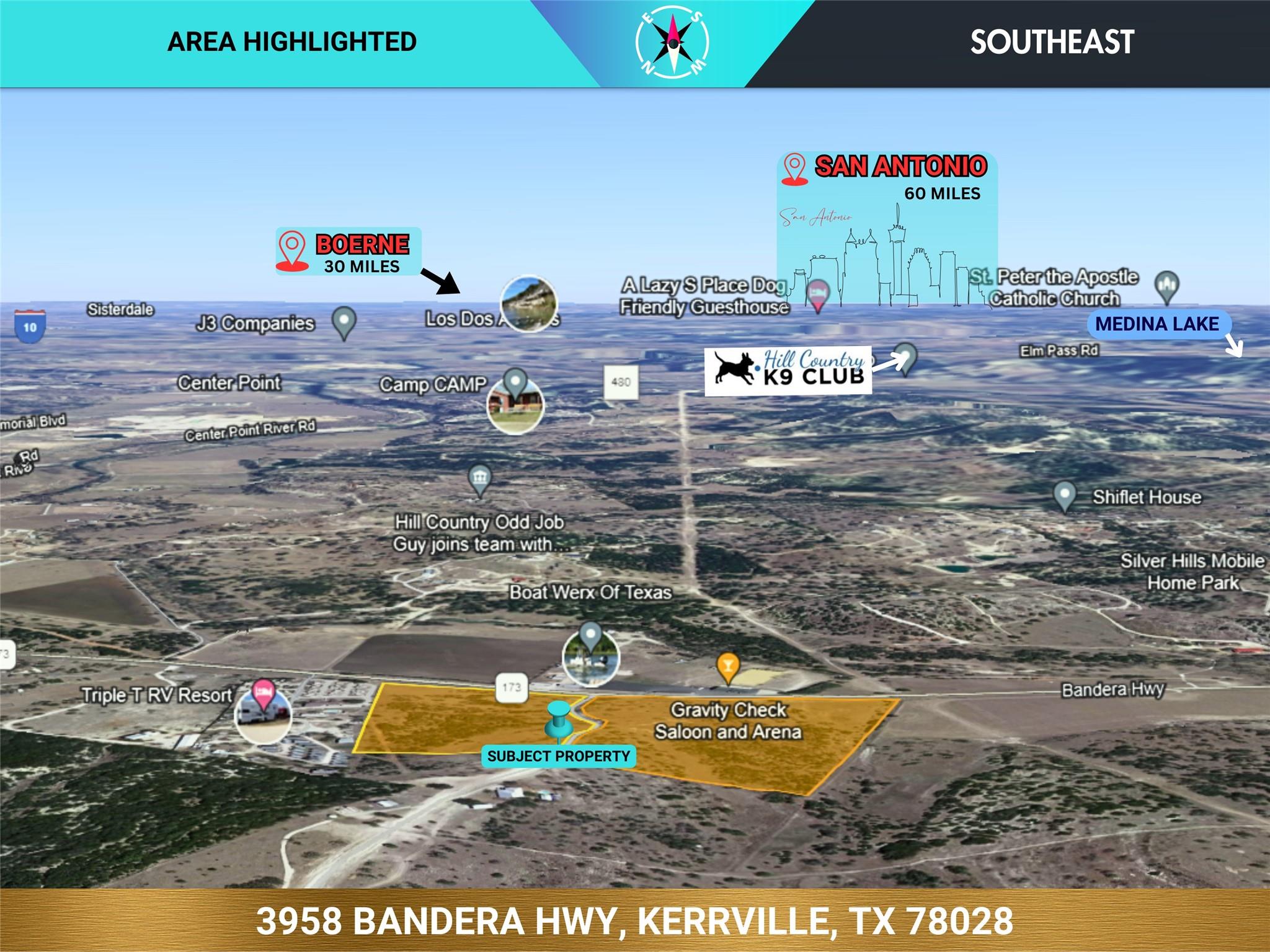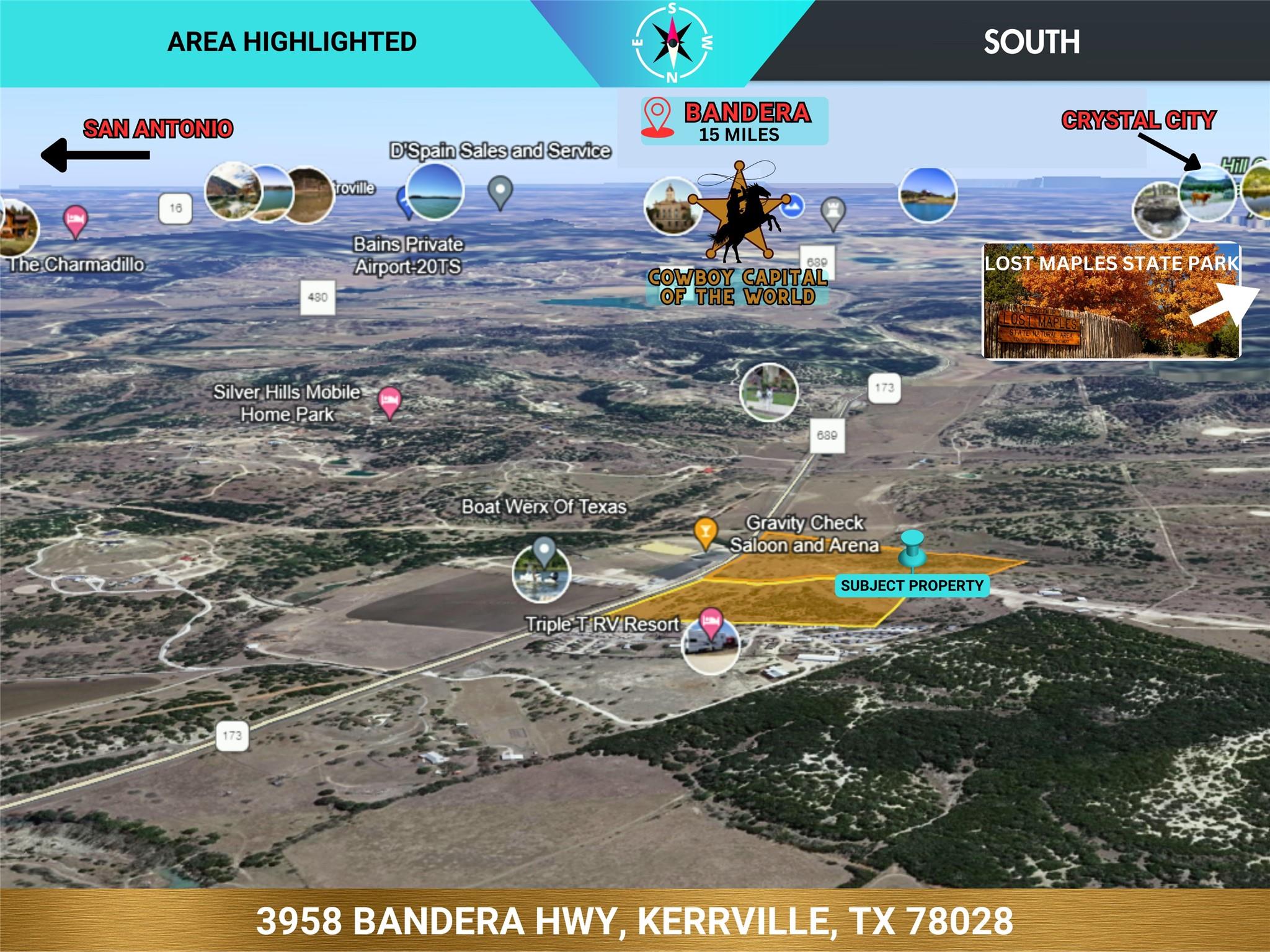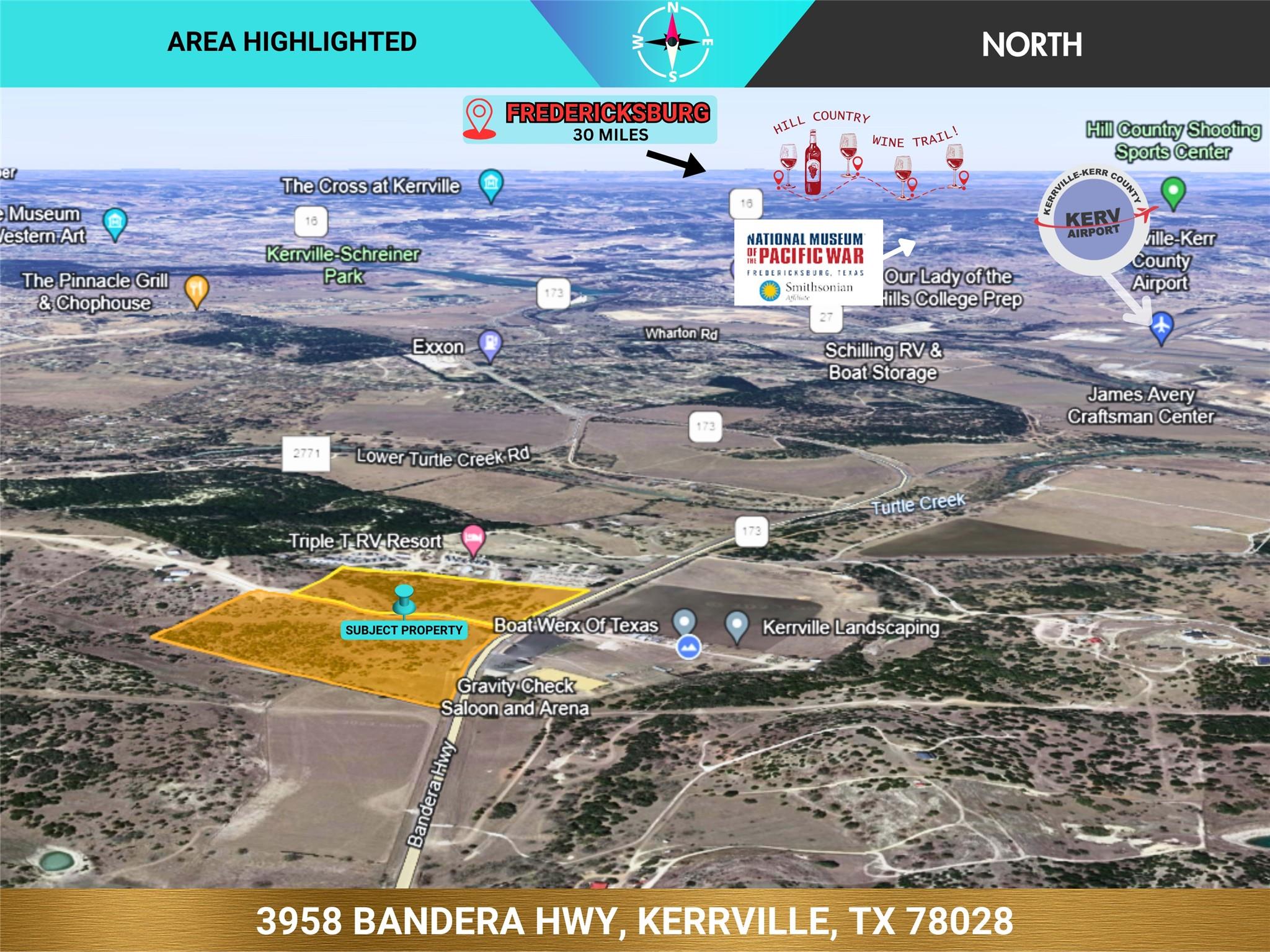 Exceptional ~45 Acres: A rare gem located just 6 miles from downtown Kerrville, this property boasts ~1900' of highway frontage, presenting an unparalleled opportunity for visibility and accessibility. Situated at the entrance of the gated Great Sky Ranch community, the land enjoys a prime location across the highway from the thriving Gravity Saloon & Arena and the Bandera Road Business Park. As a gateway to Kerrville, a sought-after destination and retirement area often hailed as the 'Capital of the Texas Hill Country,' this expansive property is uniquely positioned for dual-purpose use. It offers the perfect canvas for a picturesque ranch retreat, while its strategic location makes it an ideal investment for those looking to tap into the growing commercial landscape. Immerse yourself in the scenic beauty of the Texas Hill Country while capitalizing on the potential of this versatile property, perfectly poised at the crossroads of opportunity & growth in Kerrville. Kerrville hosts global attractions like the Texas State Arts and Crafts Fair and the Kerrville Folk Festival, while its riverfront parks enchant both residents and visitors. The area sets the perfect backdrop for this exceptional property. KerrEDC Case Study: Kerrville: "A Model of Collaborative Resilience". BUSINESS VIEW MAGAZINE calls Kerrville: "A Gem in the Heart of Texas Hill Country". ~1900ft Hwy Frontage. Buyer may request removal from Great Sky Ranch HOA & CC&Rs, providing vast use opportunity. Subdivide Options. See other listings.
