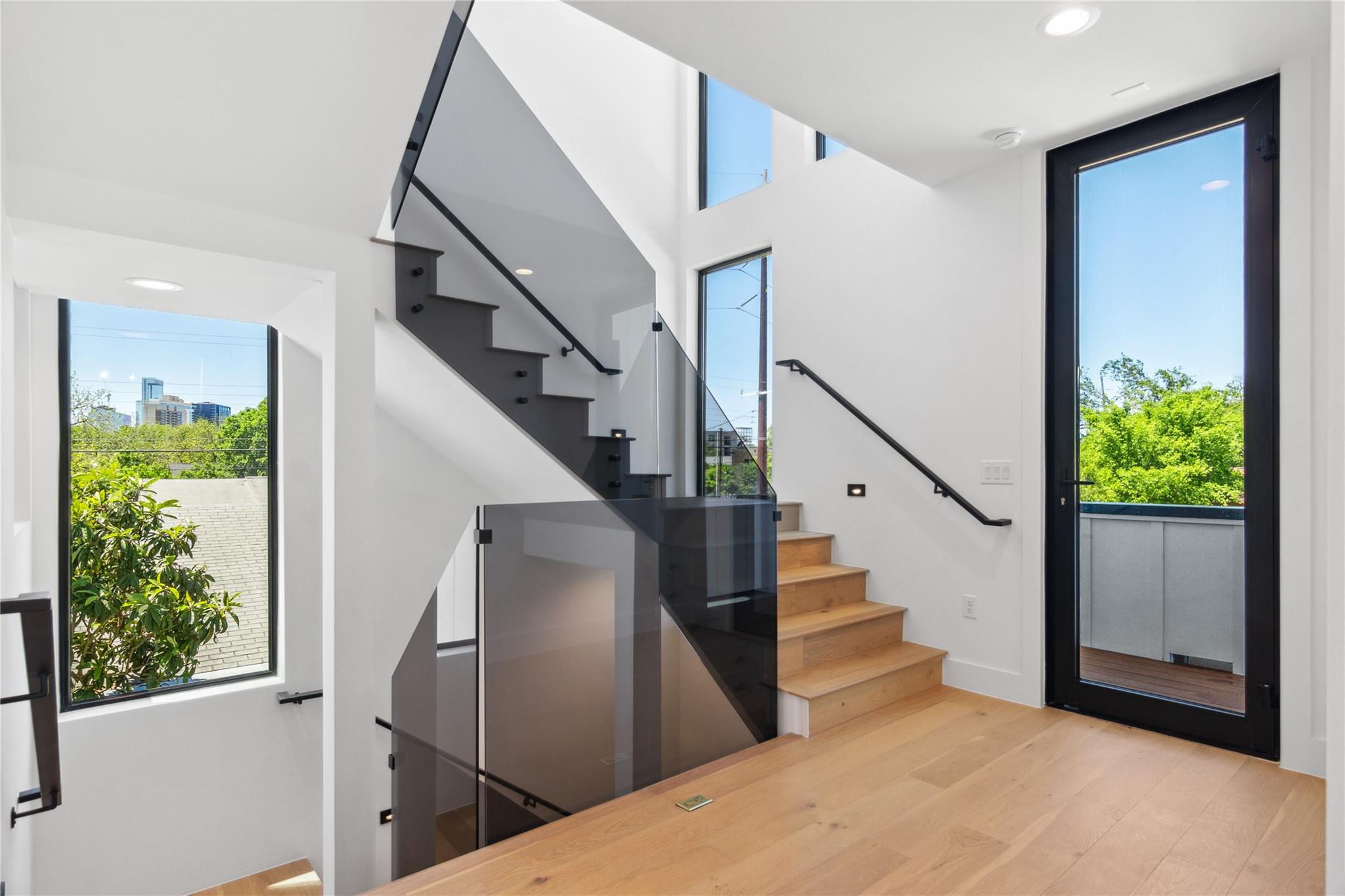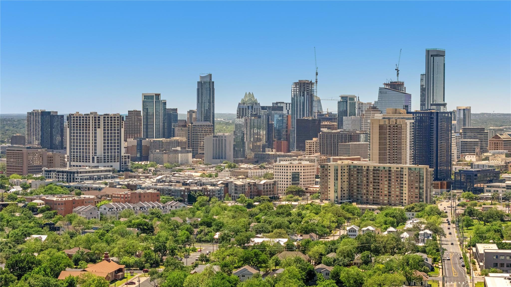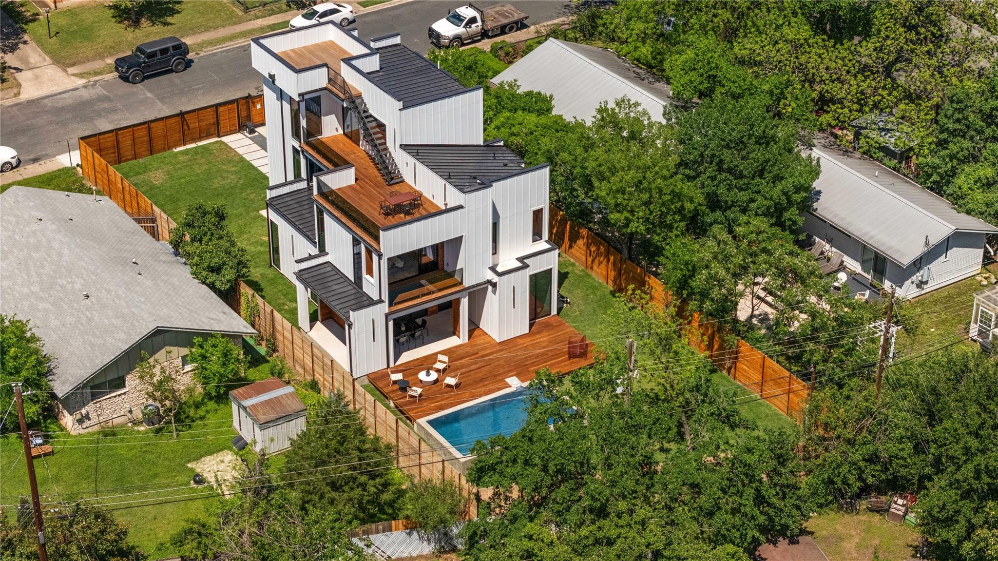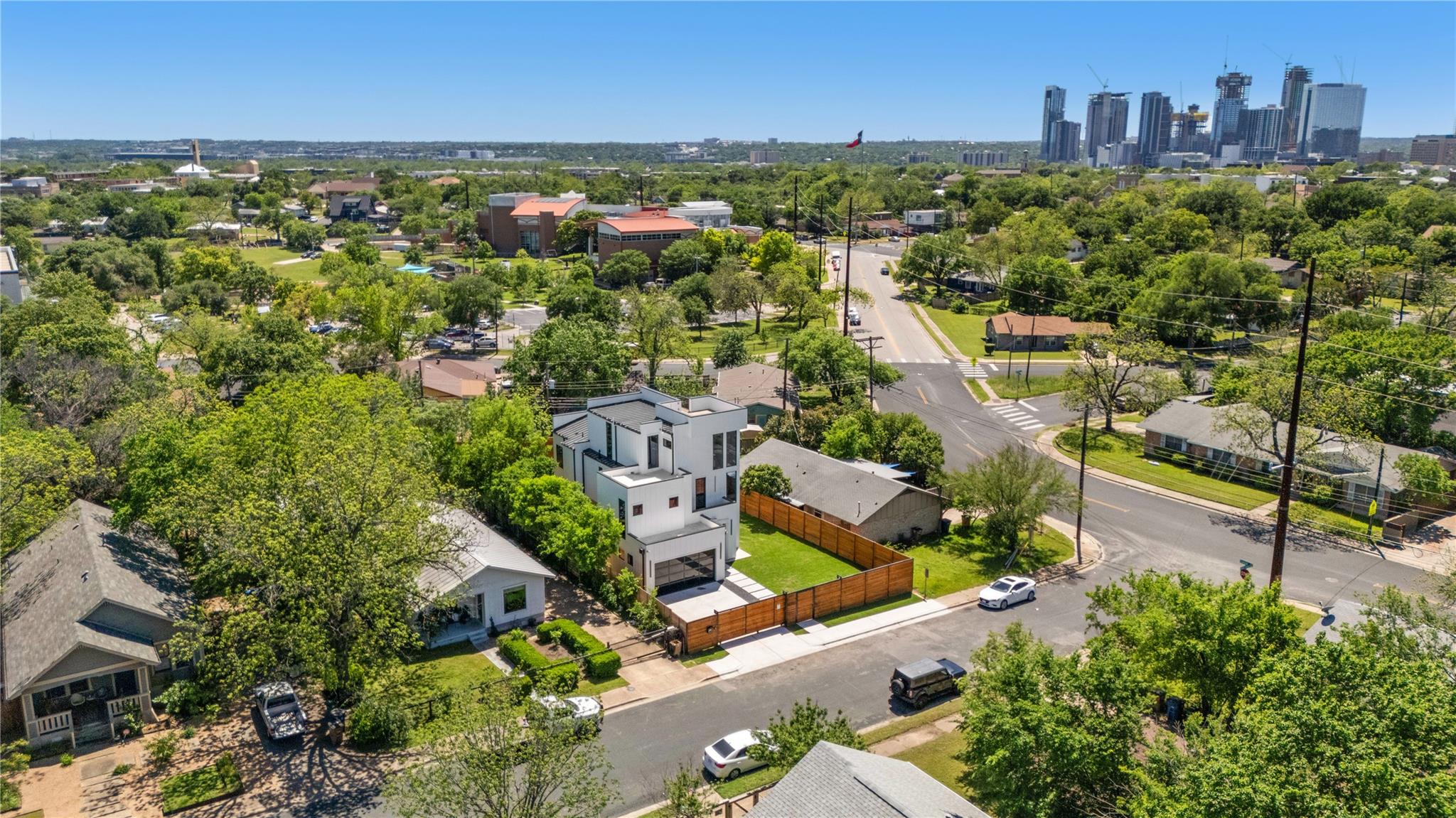 Welcome to a new standard of luxury living in East Austin, where every sunrise and sunset creates a breathtaking backdrop against unobstructed views of the Austin skyline. Nestled just a mile from Downtown, you can wake up to the sight of the iconic Austin skyline from your bedroom, sip your morning coffee on one of two rooftop decks, entertain in your swimming pool, or lounge in your 3rd floor lounge all while without ever losing sight of the incredible views. With 3 bedrooms plus a versatile 3rd floor lounge space (great option for a 4th bedroom or guest floor with an en suite bathroom), 4 full bathrooms and a host of luxurious amenities, this home feels custom built with elevated details including white oak wood cabinetry, expert millwork in the closets, thoughtful built-ins throughout, unique mirrors and light fixtures, mood and accent lighting, ample storage closets and cabinets, and a gourmet kitchen with a wood panel ready fridge and built in appliances by Miele and Wolf. The home is complete with an in ground swimming pool, 2 car garage with EV charger, full irrigation system, and is completely fenced in with an automatic gate for ultimate privacy. Located just a mile from Downtown, Dell Seton Hospital, and the University of Austin, and just 15 minutes from the Domain, Tesla and ABIA, convenience meets cosmopolitan living as you're located at the center of it all. Walk to local favorites like Paperboy, El Tigre Coffee, Cuantos Tacos, Rockstar Bagel, Franklin's BBQ and more.