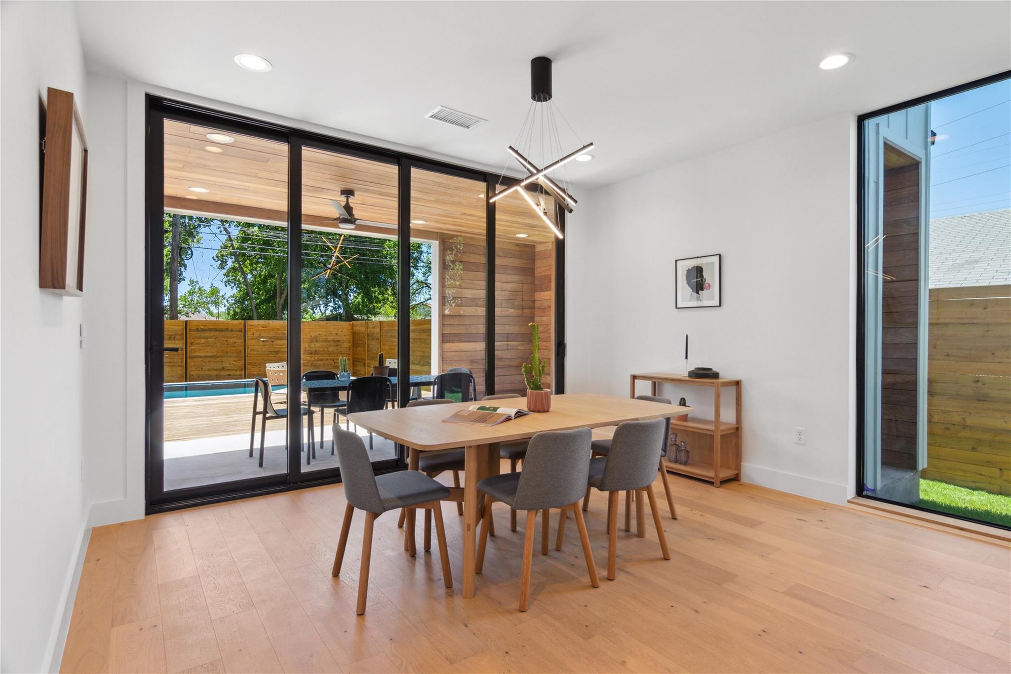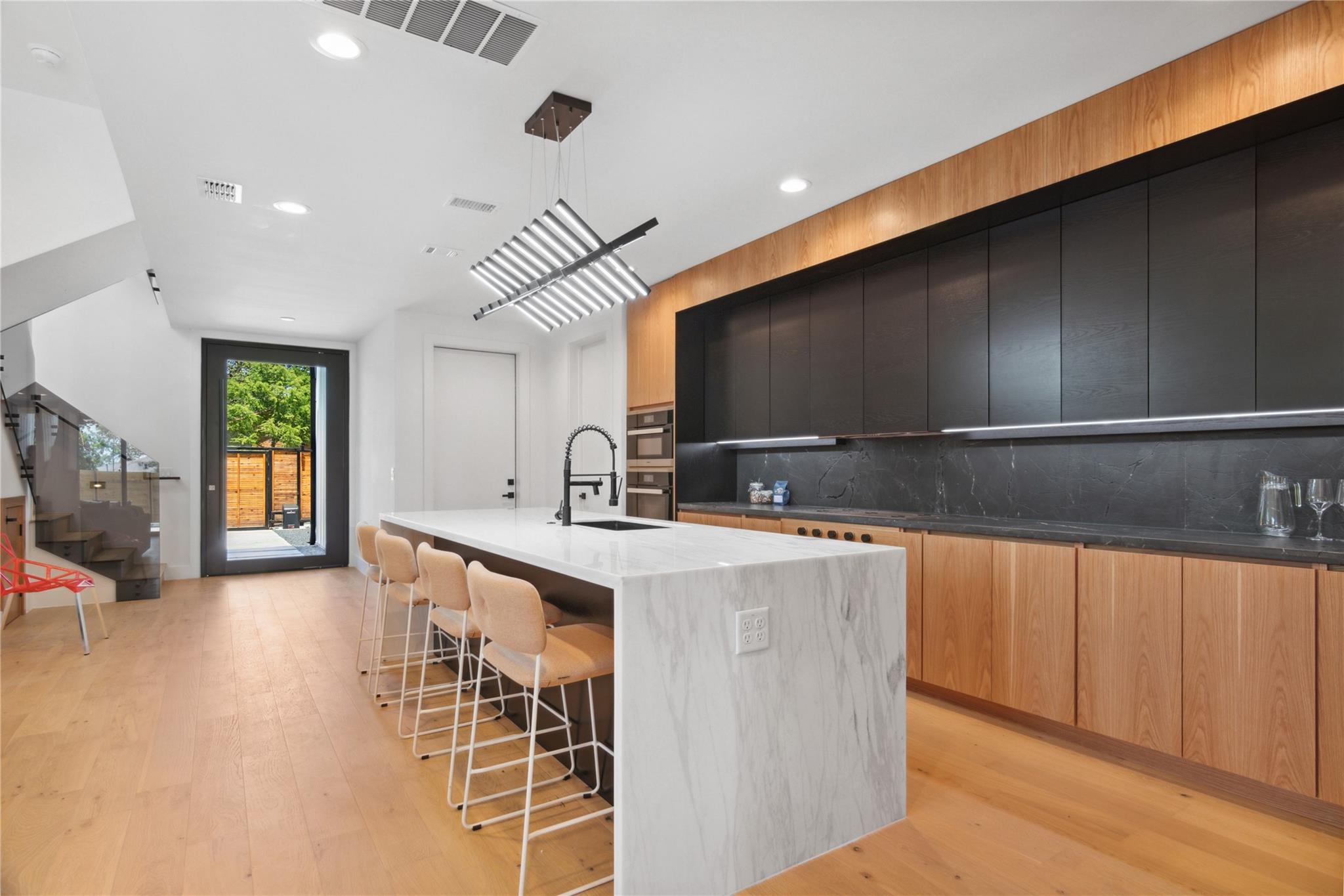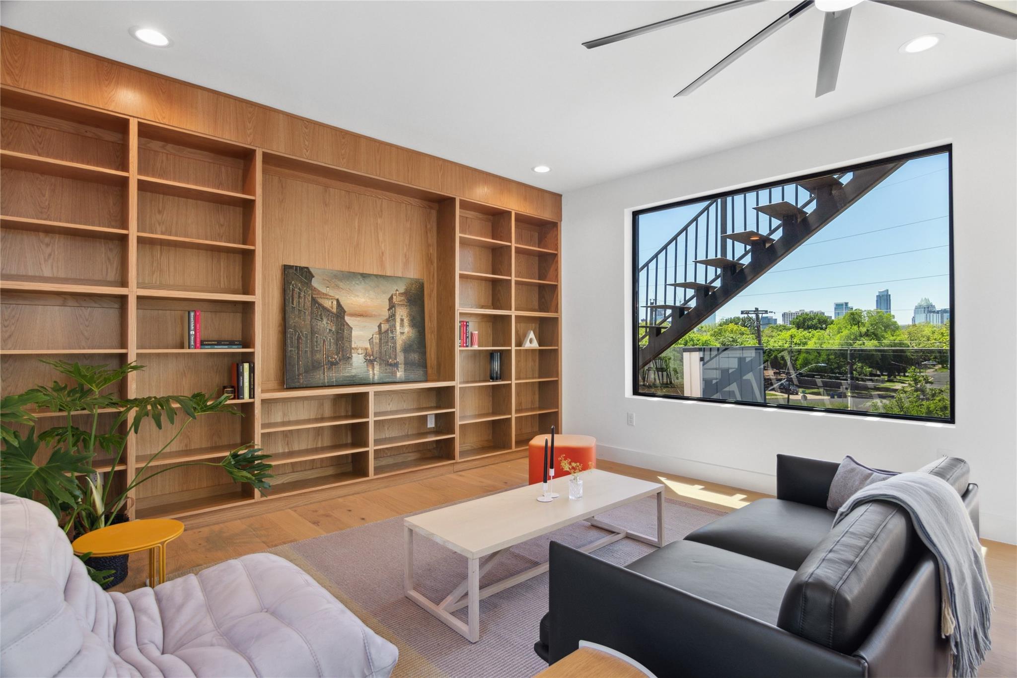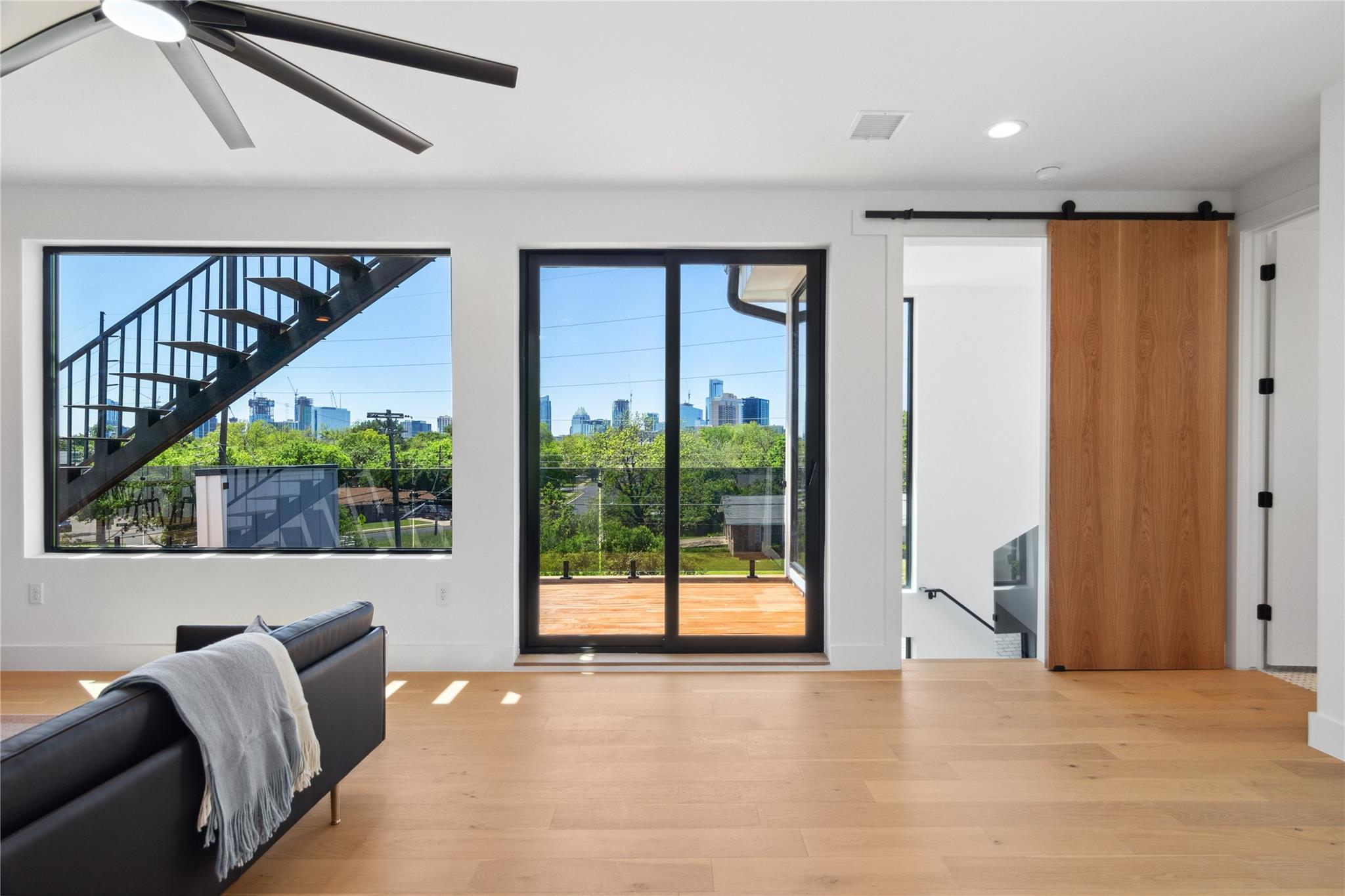 Welcome to a new standard of luxury living in East Austin, where every sunrise and sunset creates a breathtaking backdrop against unobstructed views of the Austin skyline. Nestled just a mile from Downtown, you can wake up to the sight of the iconic Austin skyline from your bedroom, sip your morning coffee on one of two rooftop decks, entertain in your swimming pool, or lounge in your 3rd floor lounge all while without ever losing sight of the incredible views. With 3 bedrooms plus a versatile 3rd floor lounge space (great option for a 4th bedroom or guest floor with an en suite bathroom), 4 full bathrooms and a host of luxurious amenities, this home feels custom built with elevated details including white oak wood cabinetry, expert millwork in the closets, thoughtful built-ins throughout, unique mirrors and light fixtures, mood and accent lighting, ample storage closets and cabinets, and a gourmet kitchen with a wood panel ready fridge and built in appliances by Miele and Wolf. The home is complete with an in ground swimming pool, 2 car garage with EV charger, full irrigation system, and is completely fenced in with an automatic gate for ultimate privacy. Located just a mile from Downtown, Dell Seton Hospital, and the University of Austin, and just 15 minutes from the Domain, Tesla and ABIA, convenience meets cosmopolitan living as you're located at the center of it all. Walk to local favorites like Paperboy, El Tigre Coffee, Cuantos Tacos, Rockstar Bagel, Franklin's BBQ and more.