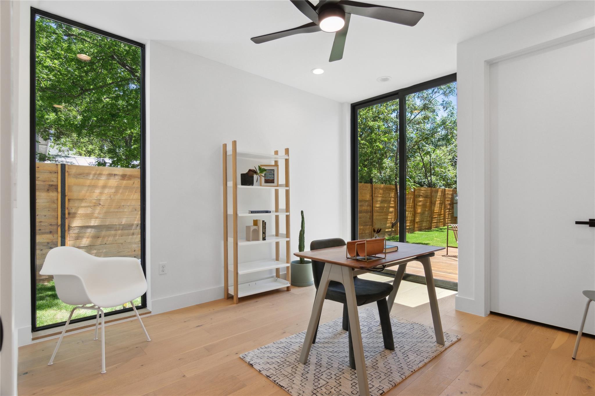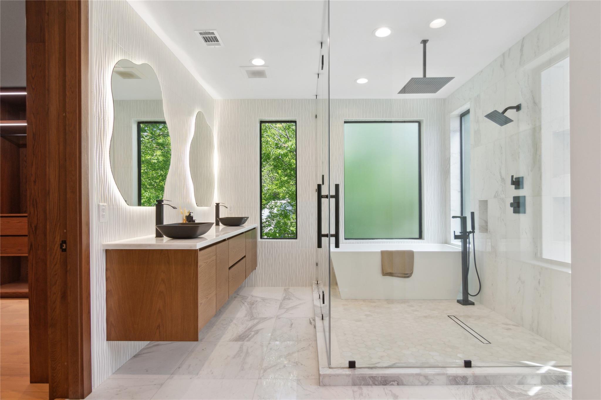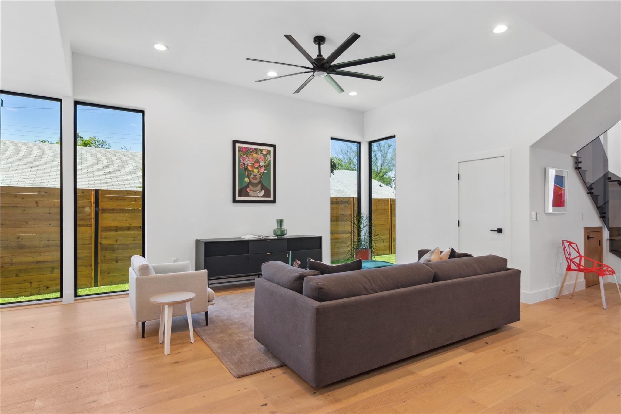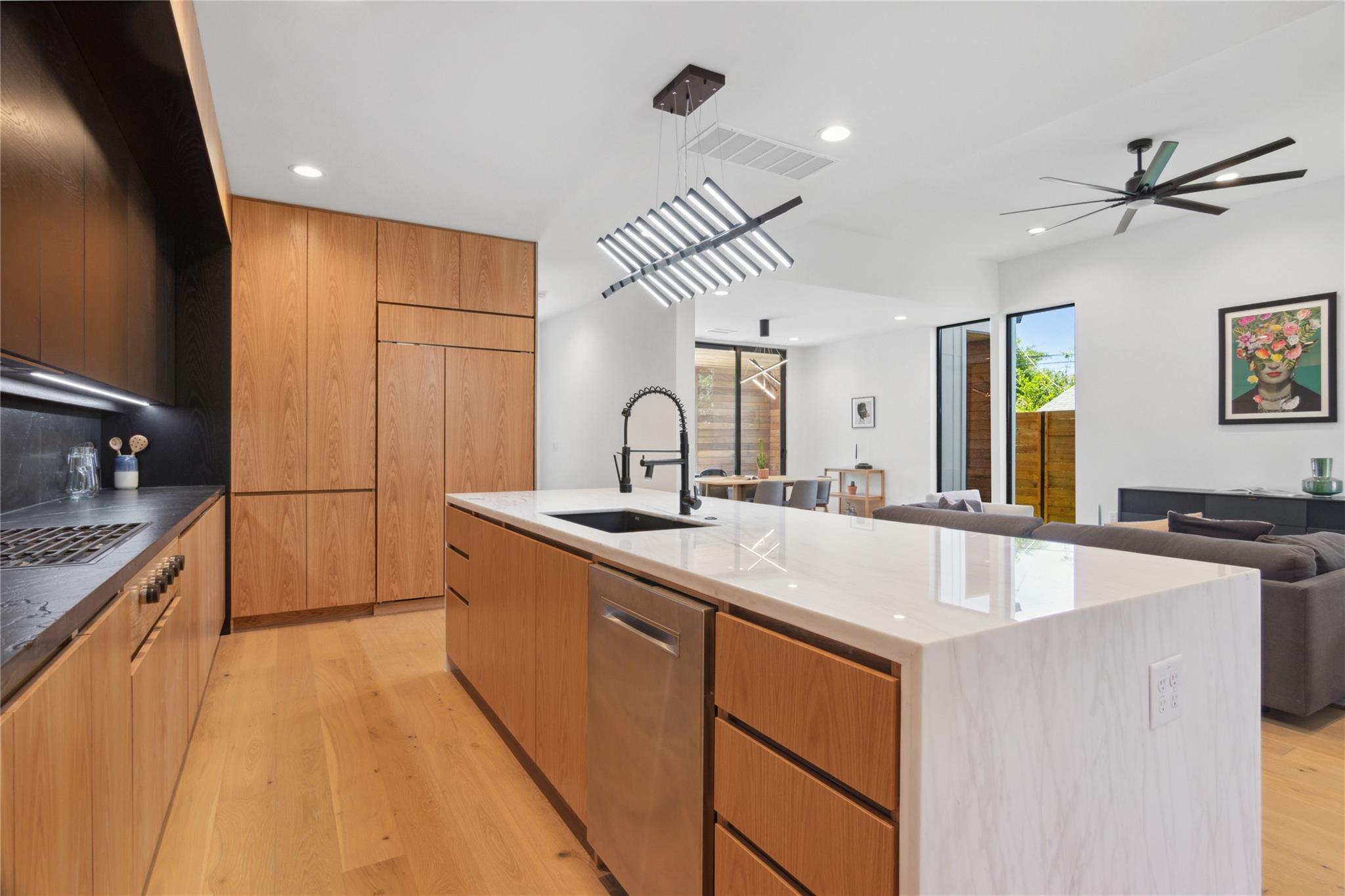 Welcome to a new standard of luxury living in East Austin, where every sunrise and sunset creates a breathtaking backdrop against unobstructed views of the Austin skyline. Nestled just a mile from Downtown, you can wake up to the sight of the iconic Austin skyline from your bedroom, sip your morning coffee on one of two rooftop decks, entertain in your swimming pool, or lounge in your 3rd floor lounge all while without ever losing sight of the incredible views. With 3 bedrooms plus a versatile 3rd floor lounge space (great option for a 4th bedroom or guest floor with an en suite bathroom), 4 full bathrooms and a host of luxurious amenities, this home feels custom built with elevated details including white oak wood cabinetry, expert millwork in the closets, thoughtful built-ins throughout, unique mirrors and light fixtures, mood and accent lighting, ample storage closets and cabinets, and a gourmet kitchen with a wood panel ready fridge and built in appliances by Miele and Wolf. The home is complete with an in ground swimming pool, 2 car garage with EV charger, full irrigation system, and is completely fenced in with an automatic gate for ultimate privacy. Located just a mile from Downtown, Dell Seton Hospital, and the University of Austin, and just 15 minutes from the Domain, Tesla and ABIA, convenience meets cosmopolitan living as you're located at the center of it all. Walk to local favorites like Paperboy, El Tigre Coffee, Cuantos Tacos, Rockstar Bagel, Franklin's BBQ and more.