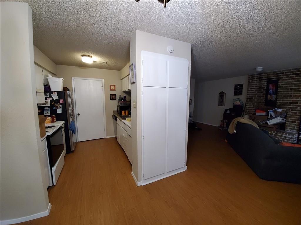 Spacious two bedroom, two bath, first floor unit. Open concept kitchen, dining, living rooms. Breakfast bar. Refrigerator included. Fenced back yard, indoor laundry connections, back patio with storage closet. Close to Mopac and 183. Fireplace is for decorative use only. Application deposit is due within 24 hours of applying online.
