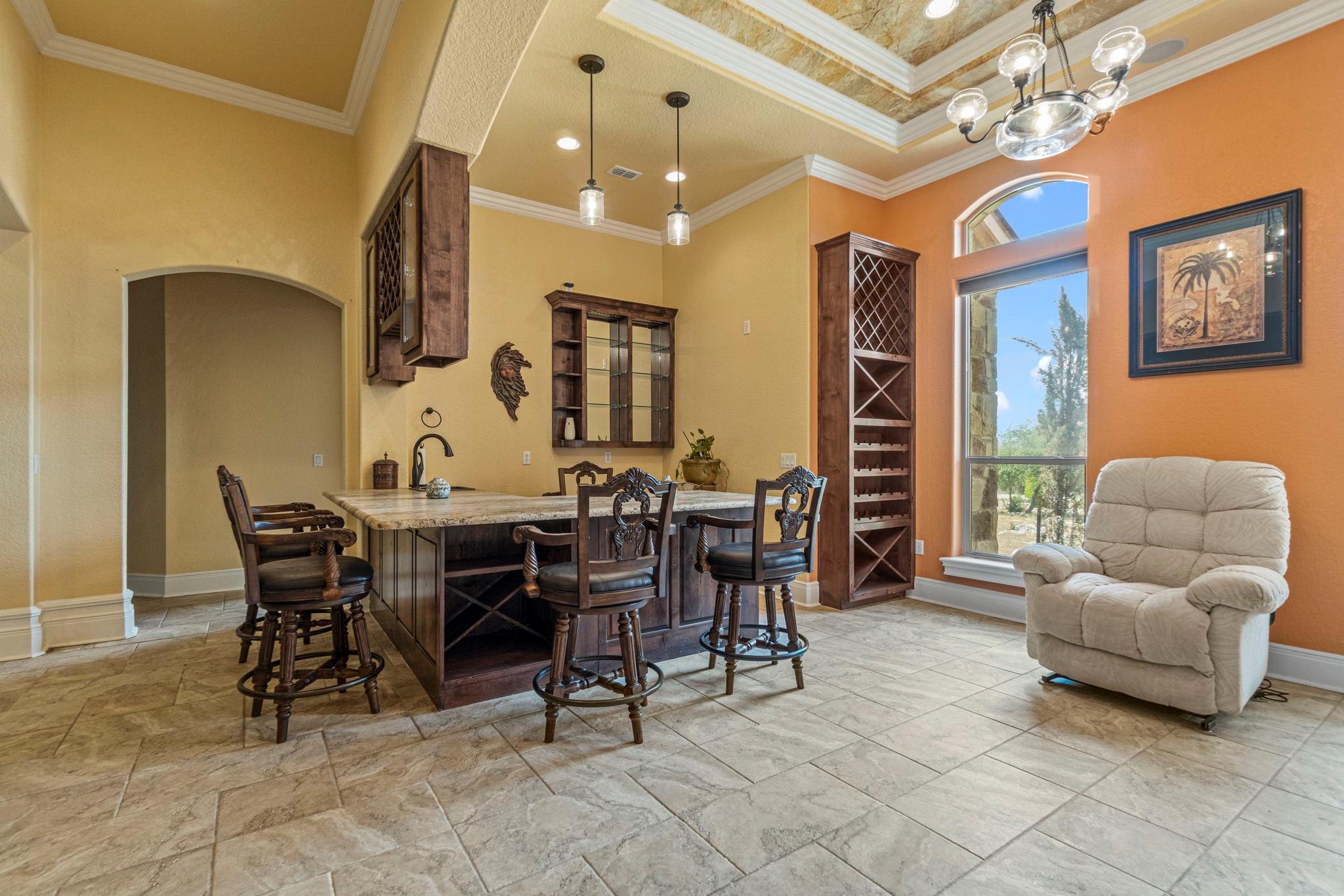 | Interior Features | Bar, Breakfast Bar, Built-in Features, Ceiling Fan(s), Chandelier, Crown Molding, Double Vanity, Electric Dryer Hookup, Entrance Foyer, French Doors, High Speed Internet, Kitchen Island, Multiple Living Areas, Open Floorplan, Pantry, Primary Bedroom on Main, Recessed Lighting, Soaking Tub, Sound System, Storage, Walk-In Closet(s), Washer Hookup, Wet Bar, Wired for Sound | |
