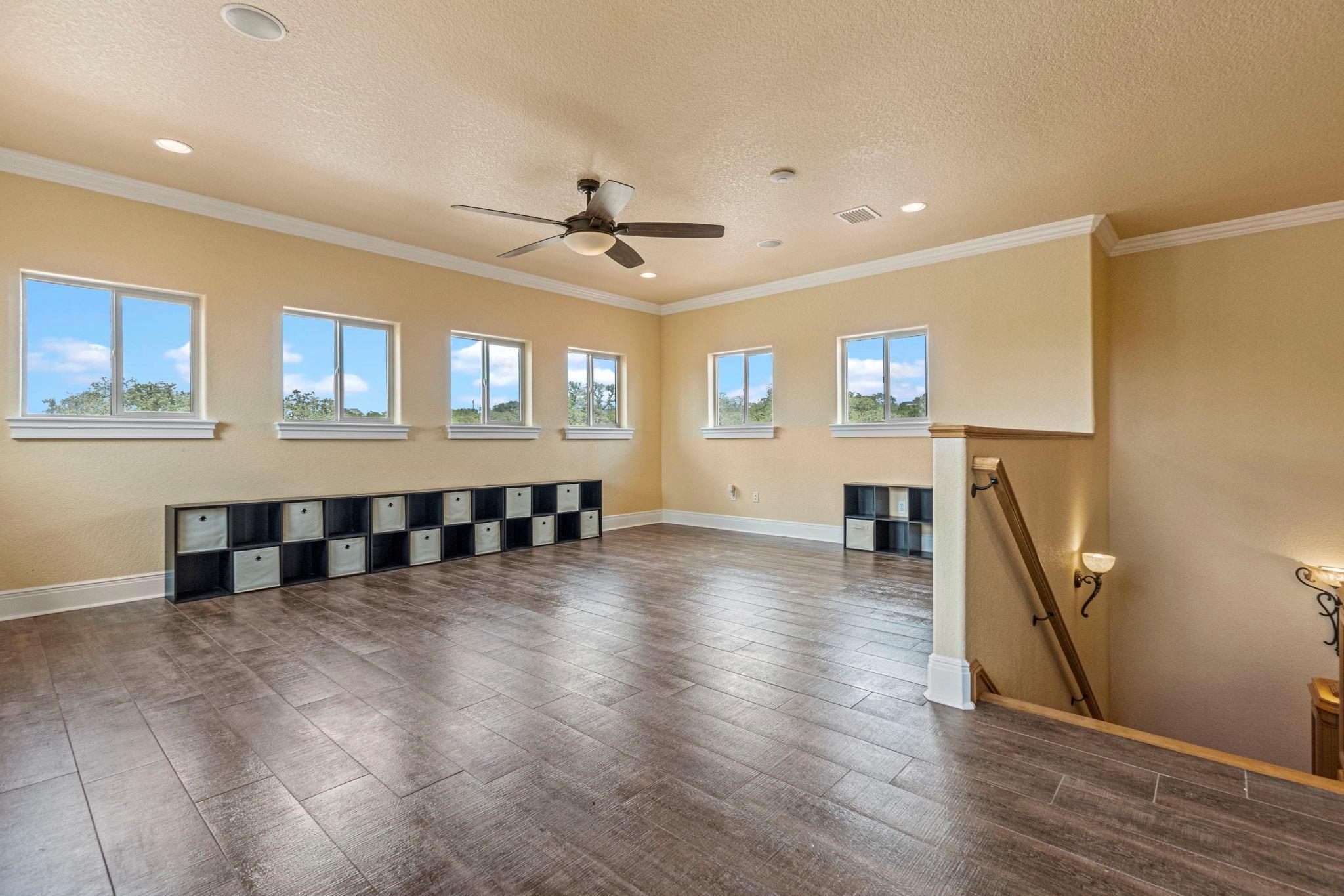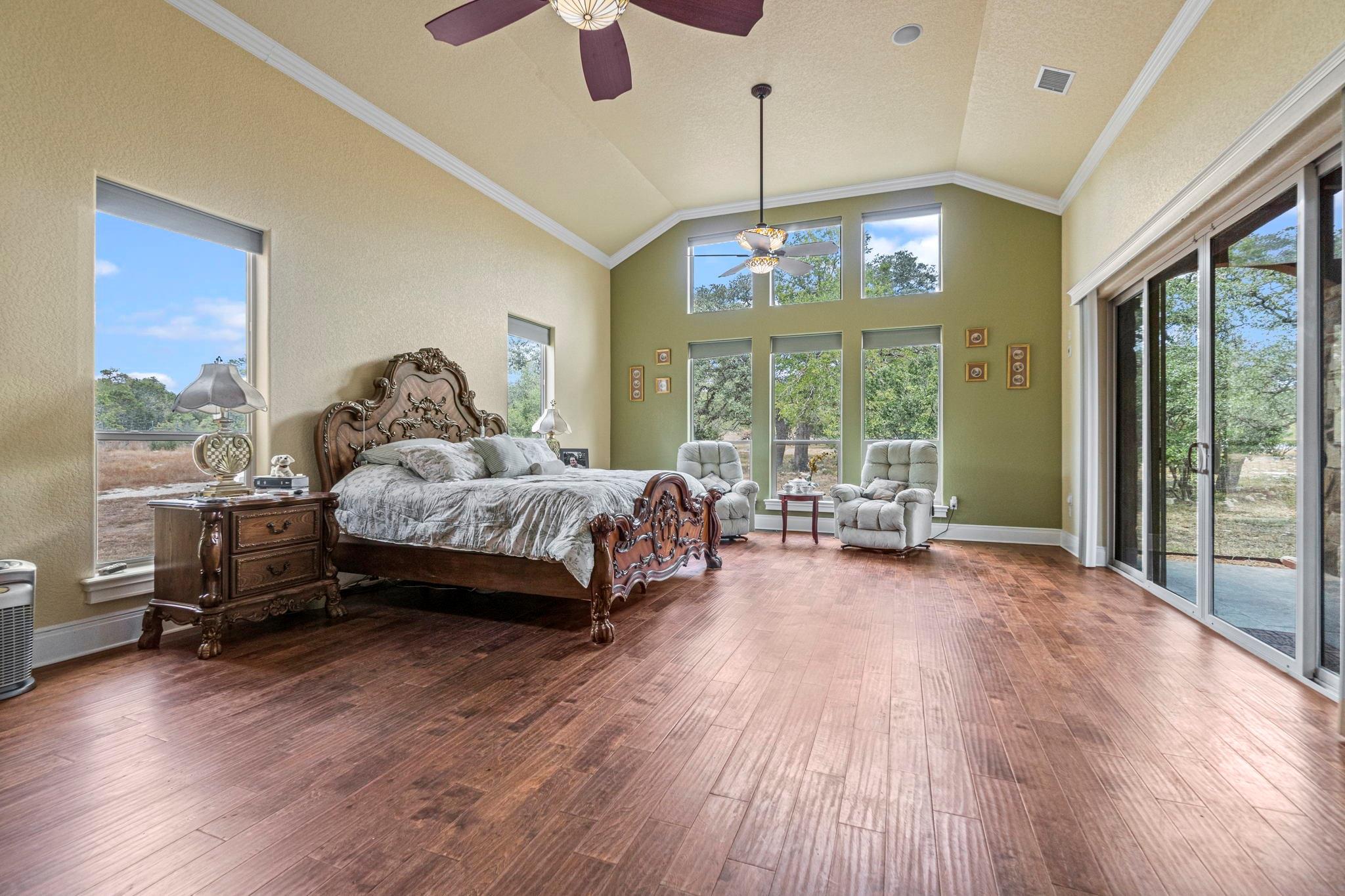 Gorgeous Hill Country Home sitting on 6 acres of serenity surrounded by nature. Canyon Lake less than a mile away. Home is an entertainer's dream, with 5 large bedroom sites, 3 living spaces, media room, bar room, large patio with outdoor kitchen for BBQing, and making homemade pizza on your very own wood burning pizza oven. The kitchen, made for a chef, has an open concept with an oversized pantry, large island, 2 vegetable sinks, and a Bosh Steam oven. The Bar & Media room are each equipped with an ice maker and beverage refrigerator, so you never run out of a cold drink. Listen to music from every room in the house with surround sound. The media room seats 12 comfortably in theater seating recliners. The 50 ft by 30 ft RV Barn in the back has 2 entrances, so you never have to back up the RV. The barn is equipped with RV connections, full bath, 2 large chain link Garage Door openers, Sun lit roof, and a 50 ft by 20 ft Covered patio and fenced. The community amenities include a clubhouse, basketball & volleyball courts, jogging trails, and a boat ramp to name a few. Don't miss out on this one-of-a-kind Dream Home!