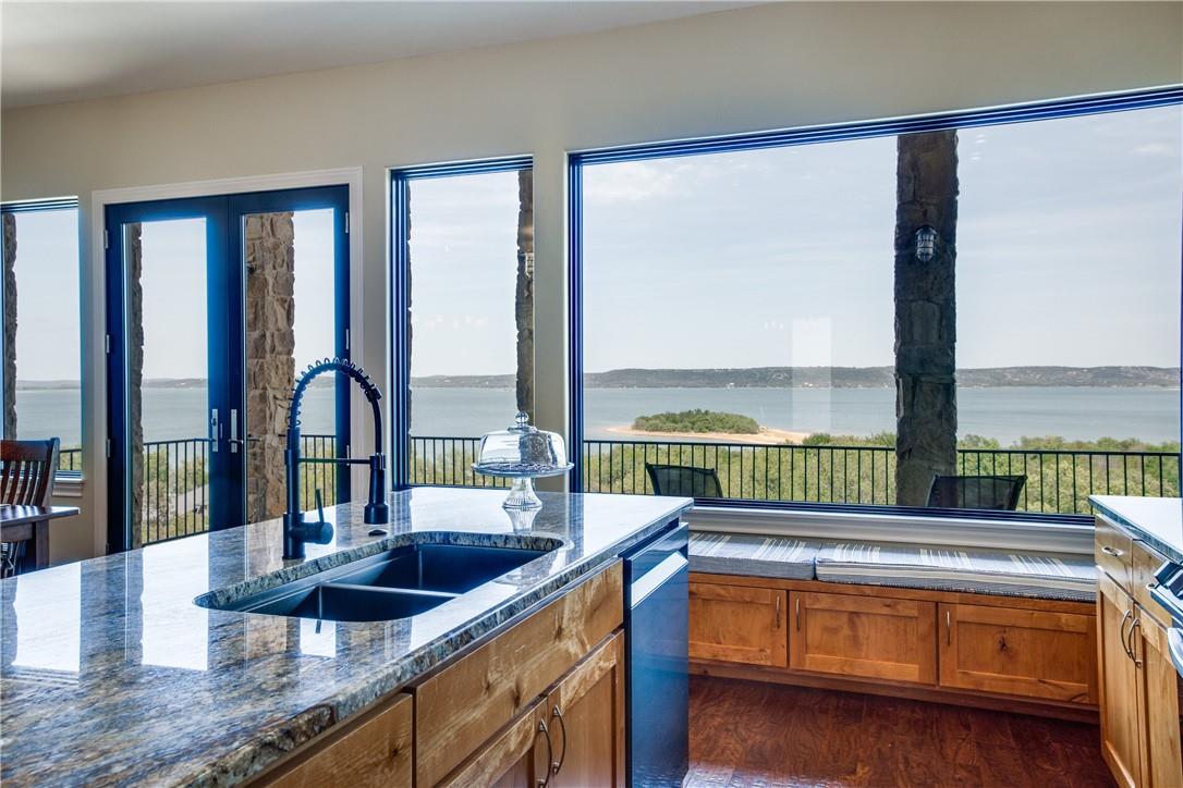 ***GATED COMMUNITY ON LAKE BUCHANAN ***4 BEDROOMS ***3.5 BATHS ***4 CAR GARAGE **MEDIA ROOM *Sweeping and breathtaking views of Lake Buchanan, every detail and design on the amazing property, this expansive 3.24 acres home is designed for those who adore the hill country and peaceful views. Foyer welcomes guests with spectacular views, abundant windows delivering natural light throughout gourmet kitchen opens to a large dining room and den, new kitchen appliances, granite countertops, new Anderson custom windows and doors (A series, argon filled) Primary suite on the main level, upstairs a gameroom, media room and secondary bedrooms. 800ft driveway from one street to the other one, 4 car garage with epoxy paint (prepared with stainless steel sink designed for fish cleaning and prep)water filter Pentair and Pelican, private marina with deeded dock slip.