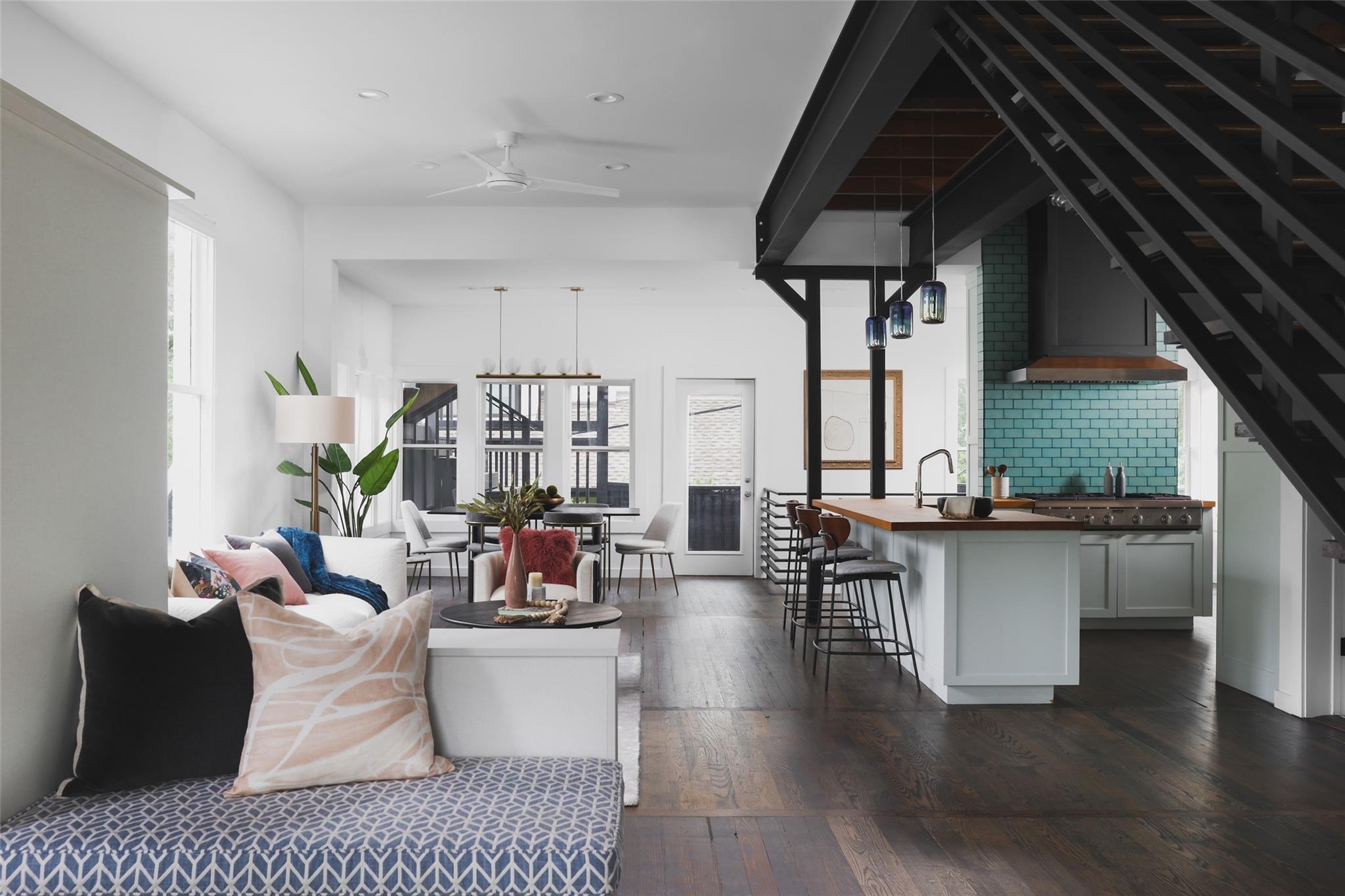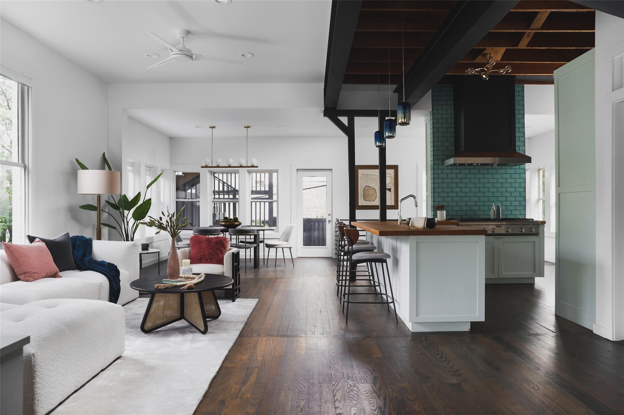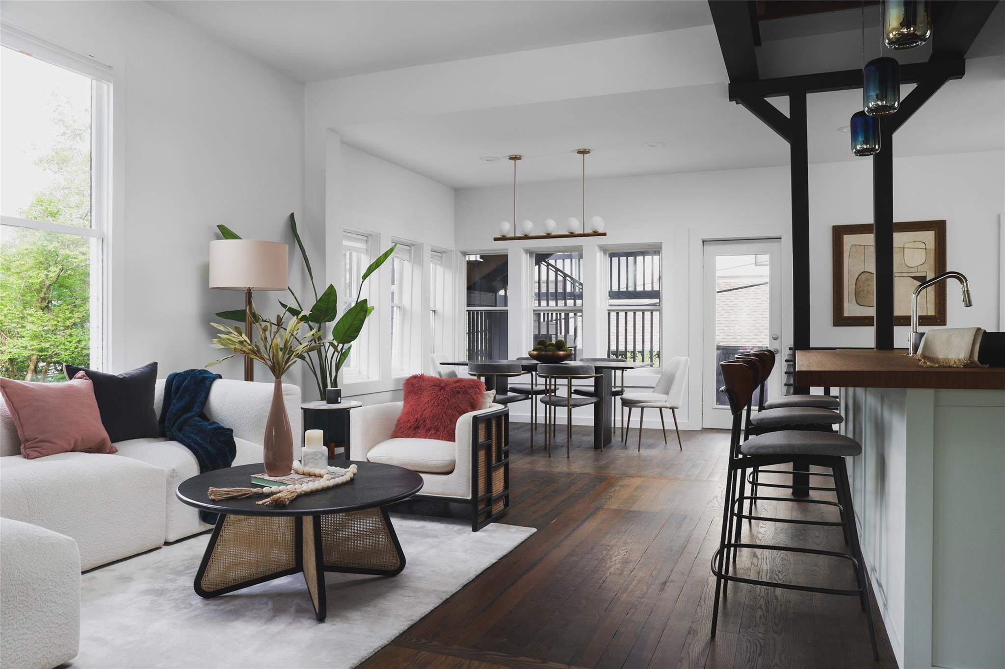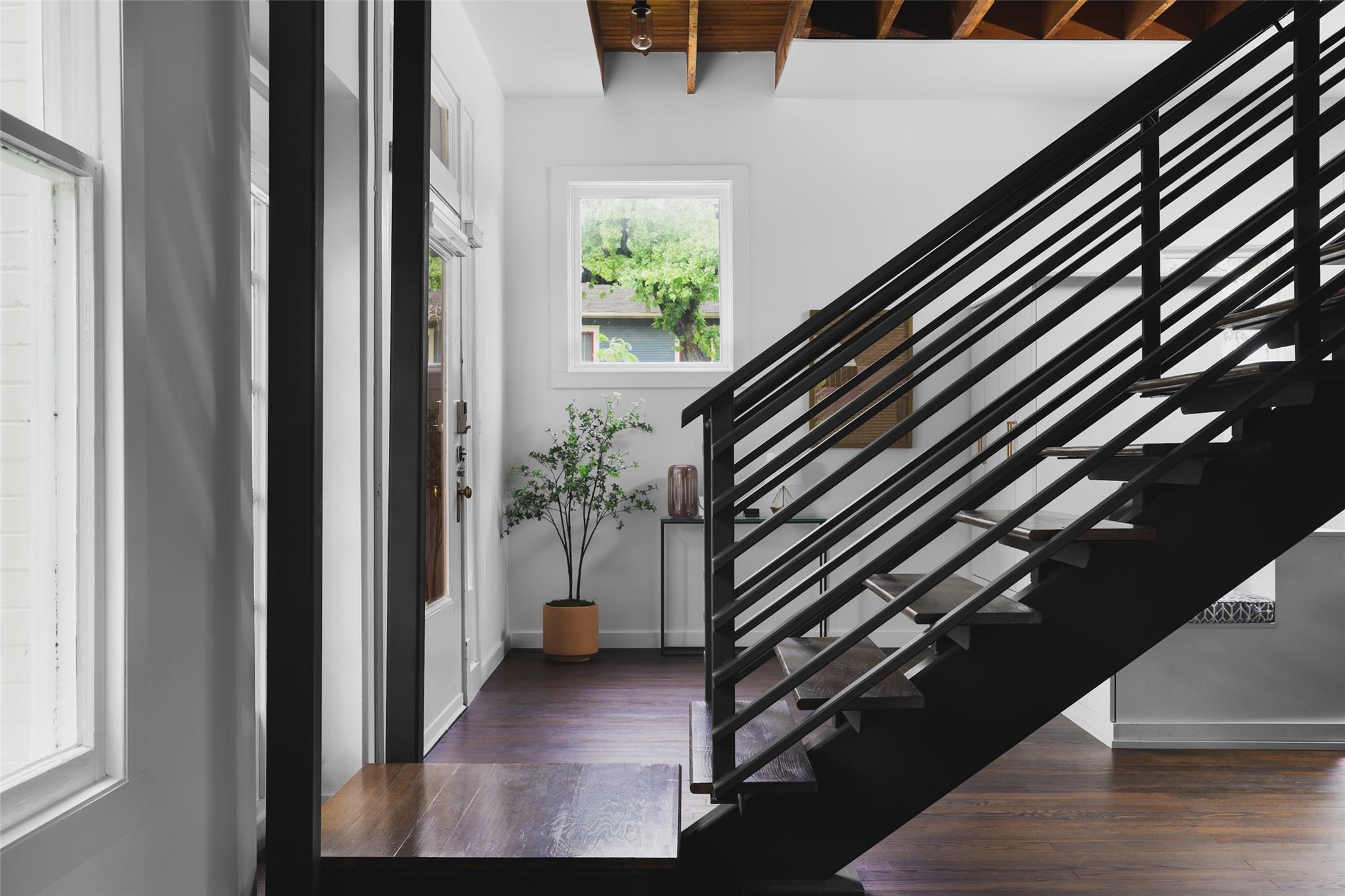 Situated within Austin’s charming Clarksville neighborhood, this luxury residence epitomizes historic elegance while seamlessly being intertwined with modern sophistication. Exuding timeless allure, the home boasts exposed beams, brick accents, and wood detailing, harmonizing effortlessly with contemporary design elements such as floating stairs and expansive 12-foot ceilings, which flood the interiors with natural light. The kitchen boasts a 6-burner Viking range, double ovens, and sleek wood finishes. Retreat to the primary suite offering sweeping city views, an ensuite bath with lavish dual vanities, and a dual-headed glass-enclosed shower. Entertain with ease on the welcoming front porch or covered decks, showcasing captivating views of the downtown skyline. Additionally, the property includes a lower level with a separate entrance, ideal for an office or studio space. Enjoy the convenience of this prime location, just moments away from Austin’s renowned dining and shopping destinations. With two tandem parking spots and no fees in a condominium regime, this single-family adobe offers both luxury and practicality in the heart of Clarksville.