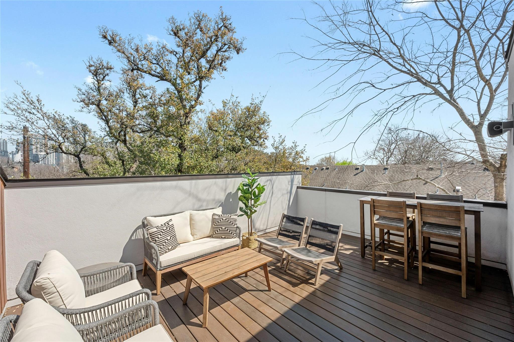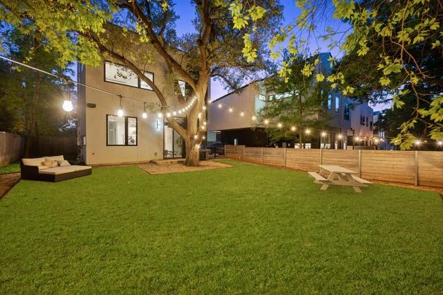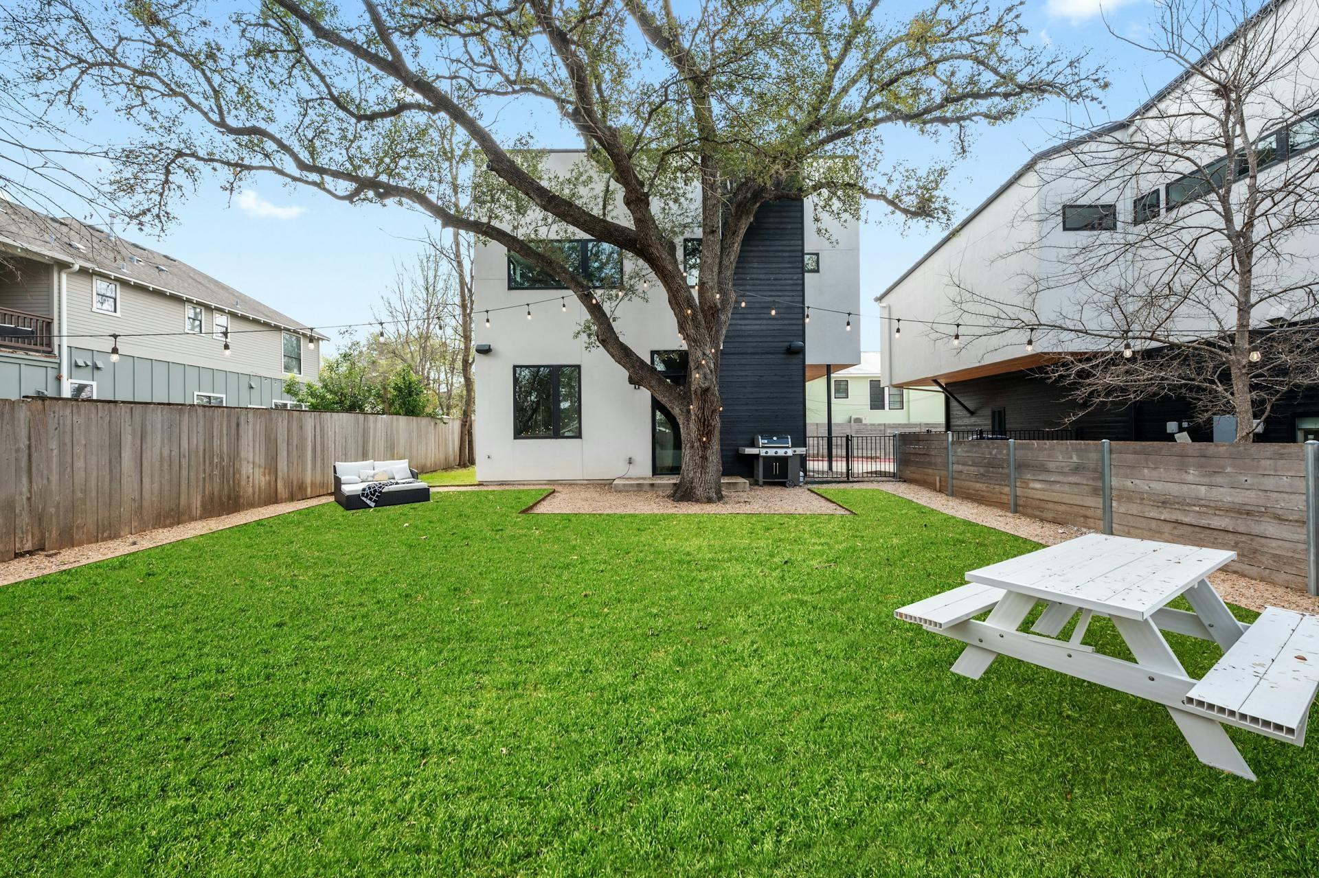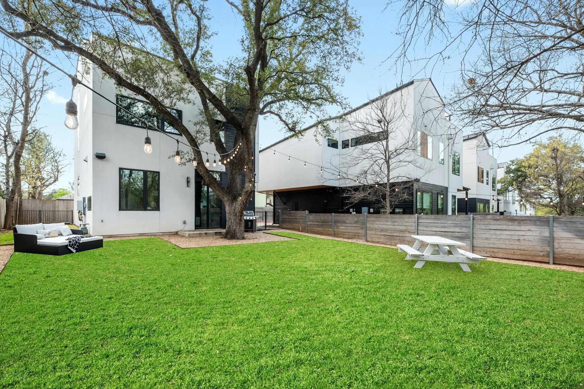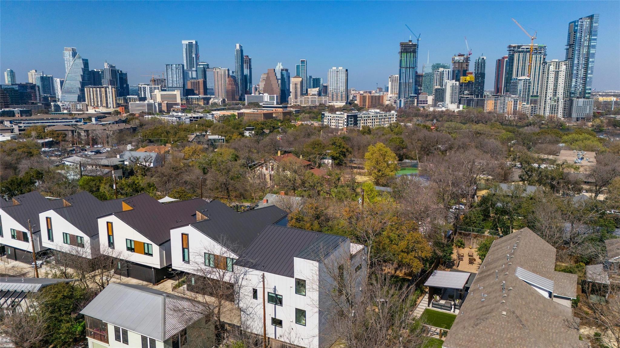 Stunning modern home located in the highly desirable Travis Heights neighborhood. This private, gated property features luxurious finishes, abundant natural light, and breathtaking downtown views from the rooftop deck. The spacious bedrooms all have their own en-suite bathrooms, and there is a versatile flex space perfect for an office, gym, media room or playroom. The primary bathroom includes a shower and freestanding tub. Throughout the home, you'll find wide plank oak floors, walnut cabinetry, and top-of-the-line Thermador appliances. The kitchen and guest bath feature beautiful marble countertops. Faced with Authentic Japanese "Shou Sugi Ban" siding and stucco. The property also includes a 2-car garage, the largest yard in the community, and is elevator ready. The professionally landscaped backyard includes premium turf. Just a 5-minute walk to Hotel St Cecila, Music Lane and South Congress Avenue, Enjoy shops like By George, Allen’s Boots, Stag Provisions and Hermes while dining at Aba, Gueros, Vespaio and Homeslice which are only steps away. Travis Heights own Stacy Park is right around the corner. HOA fee is $300 annually. COMPLEX ALLOWS STRs.