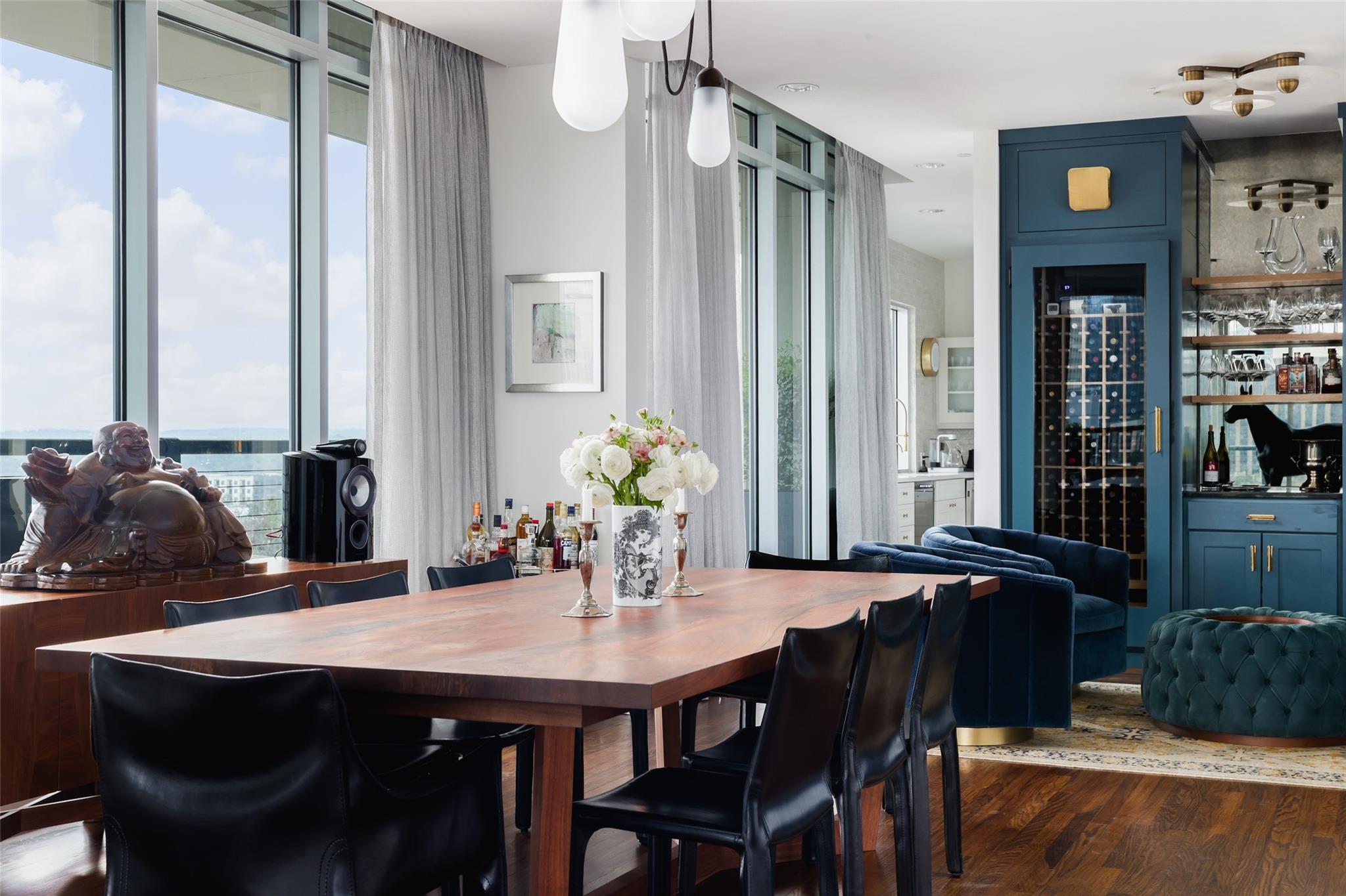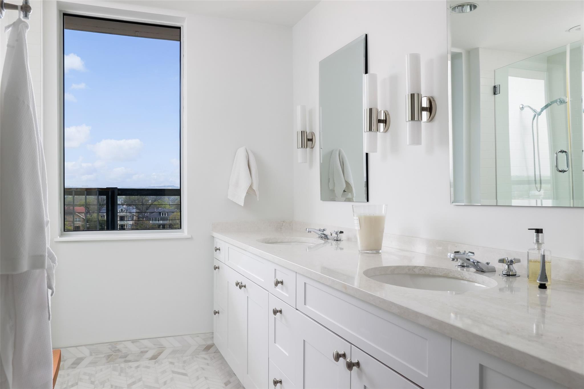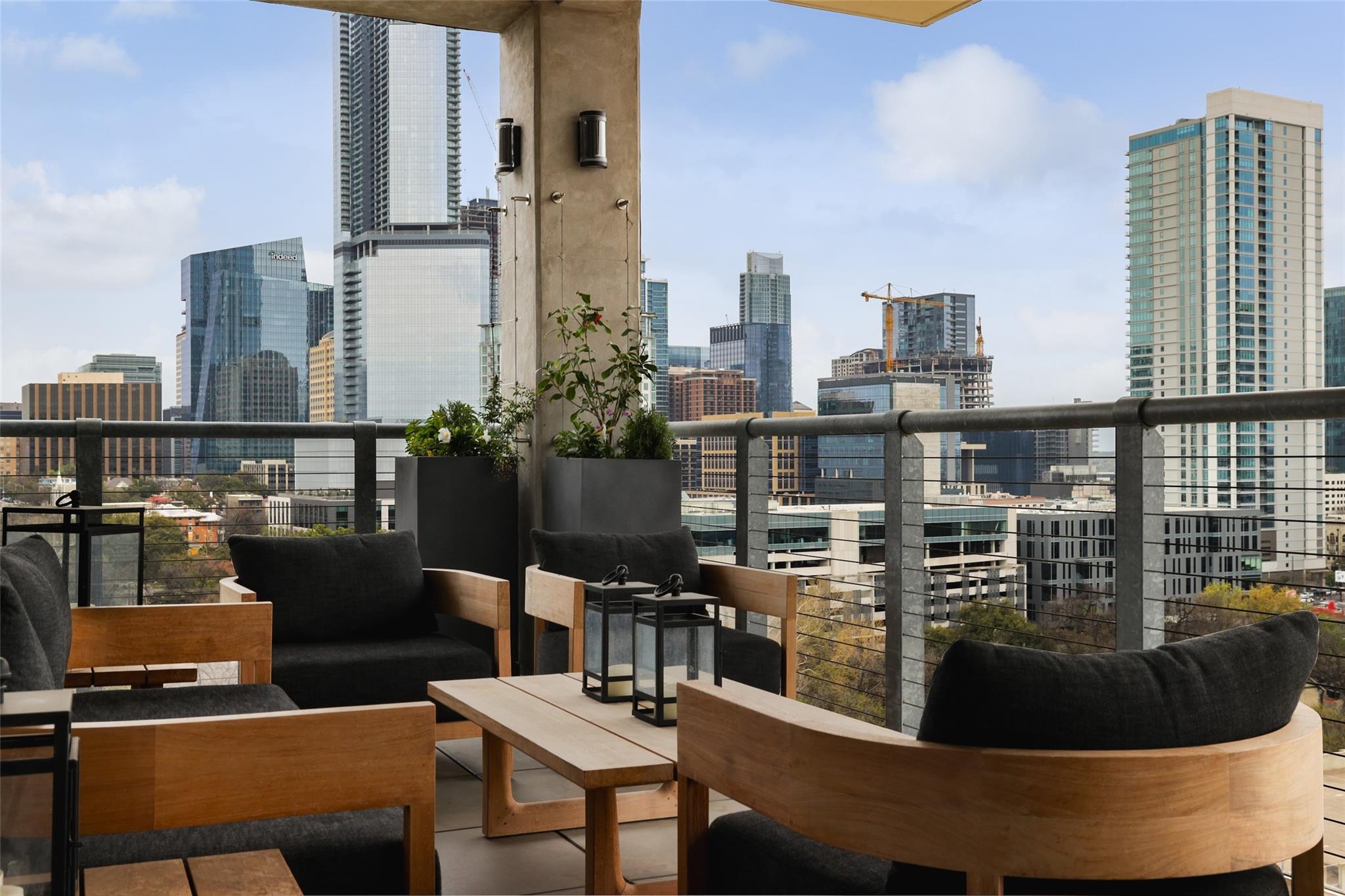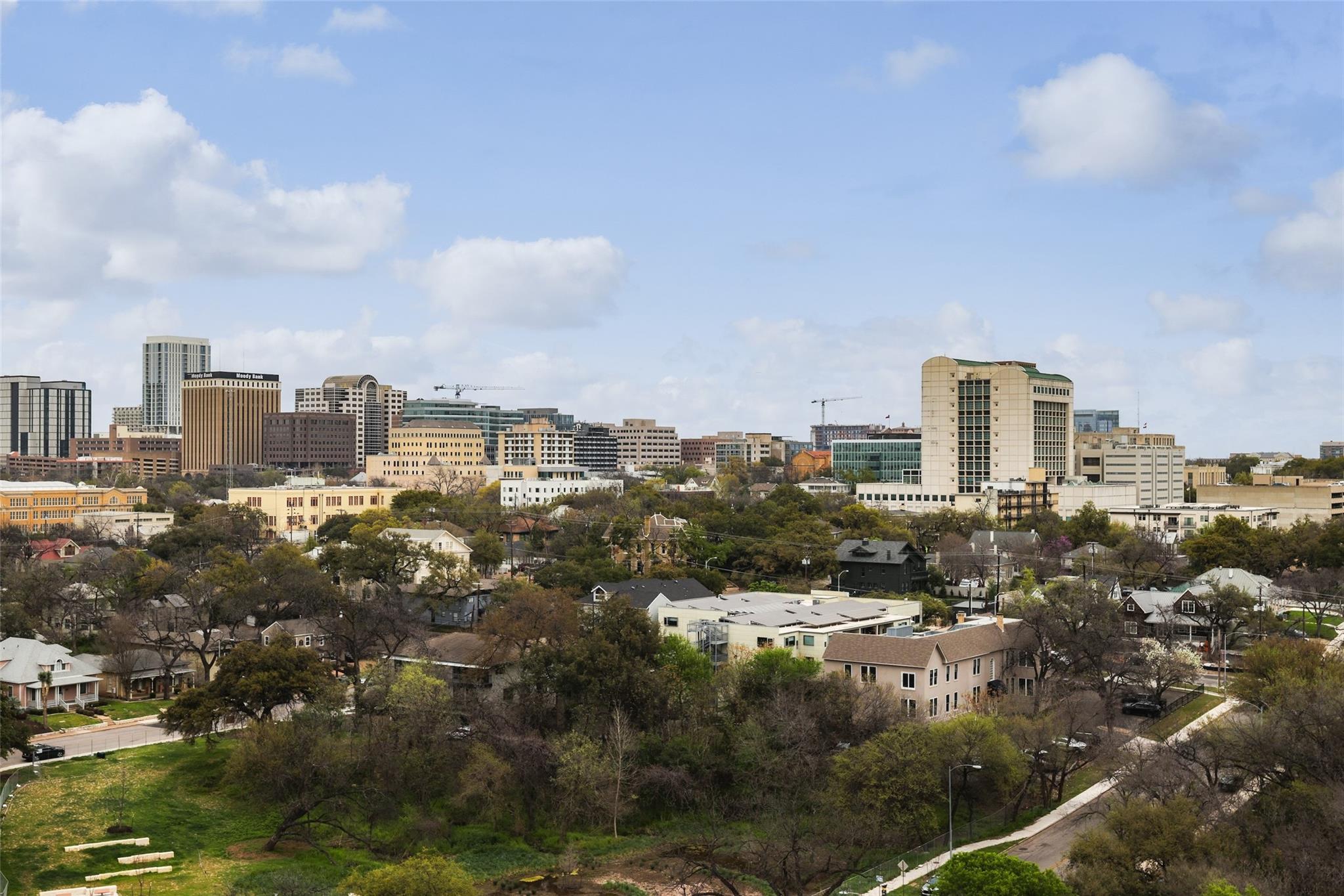 Ultimate Austin sophistication in the heart of the city. This 11th floor showplace presides over the cityscape with a wraparound balcony comprising the entire south side of the building. The spacious terraces offer extraordinary views of verdant Shoal Creek Greenbelt and the glittering skyscrapers downtown. Walk to Lady Bird Lake, the Whole Foods Flagship store and local boutiques and restaurants. The chic interior is designed for sophisticated entertaining with a stunning wine bar starring in the center of the living area. The living room as well as the kitchen are bracketed with windows. The primary bedroom offers a luxurious spa-like bath and large walk-in closet. Two additional bedrooms with en-suite baths offer flexibility for sleeping spaces or a home office and gym. The Nokonah pampers you with 24-hour concierge service, a fitness center, heated pool, spa and sundeck, and a cozy club room. Additional luxuries with this unit include four parking spots and an oversized storage unit.