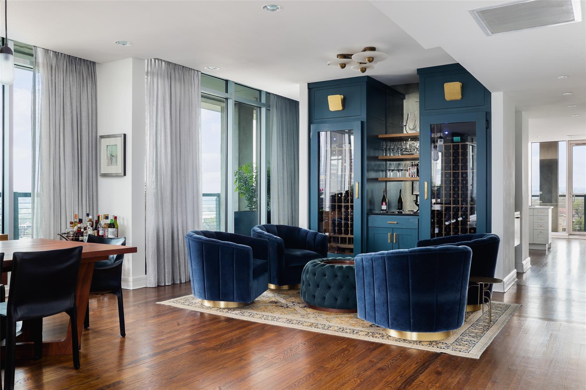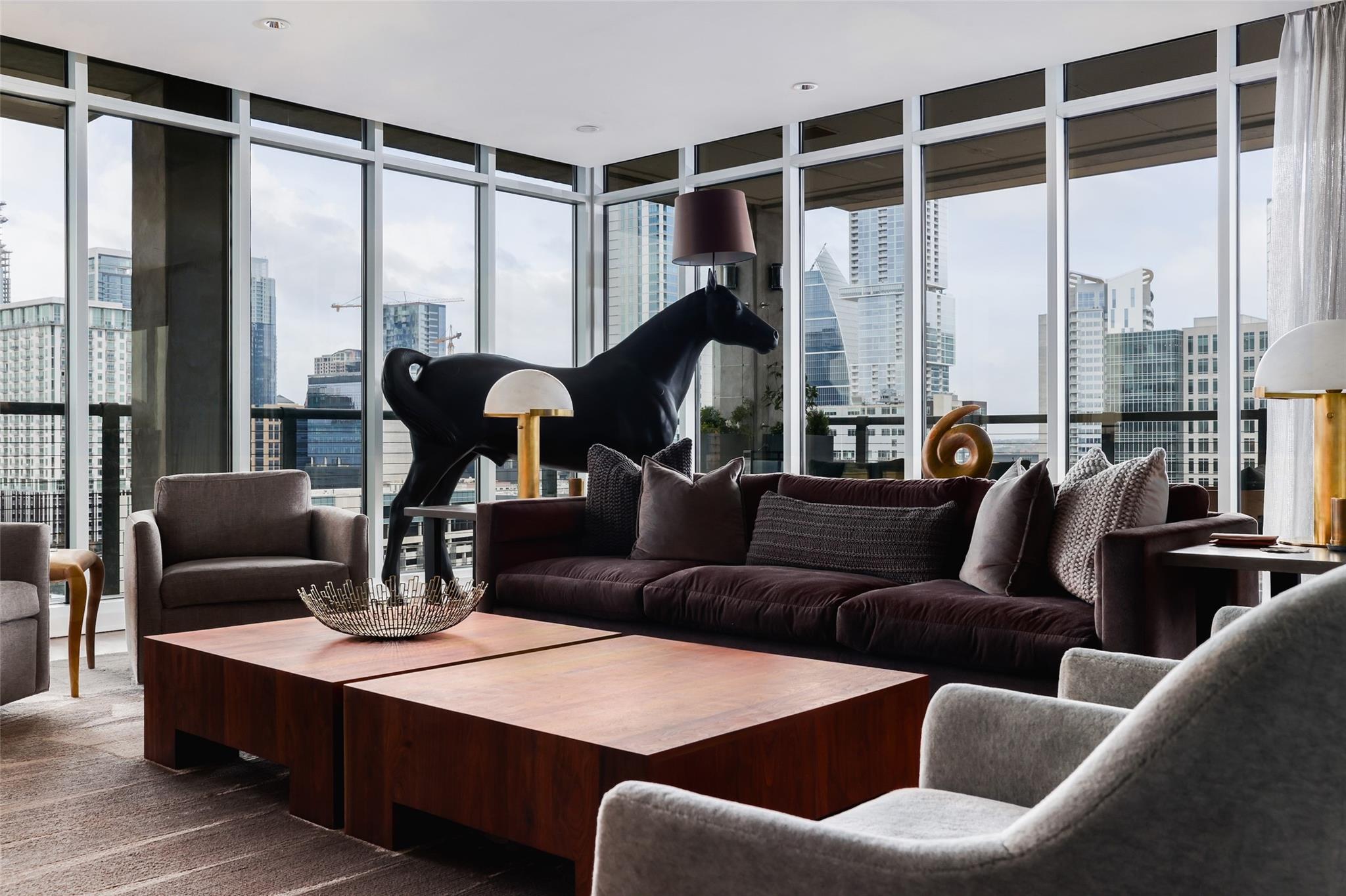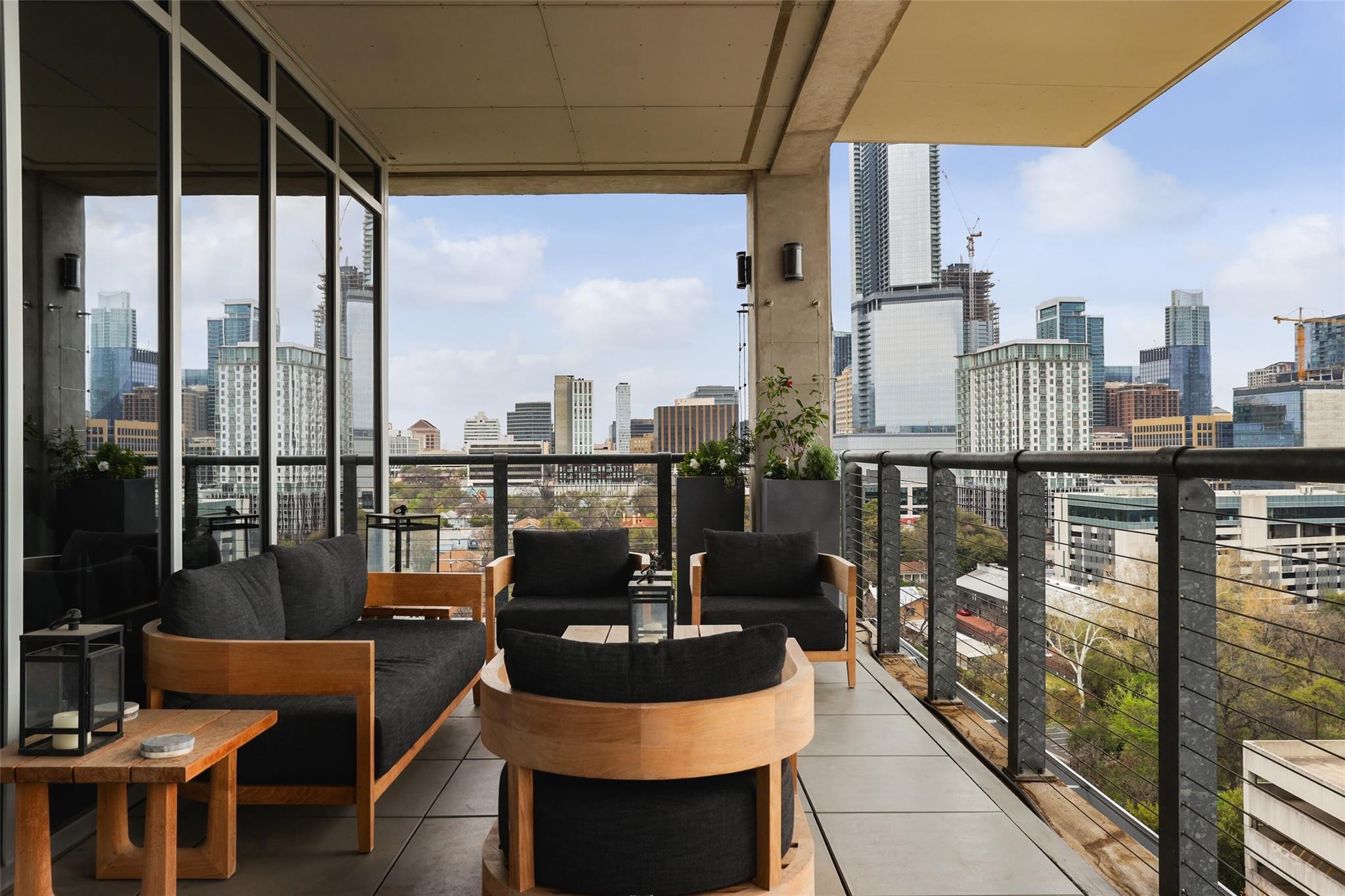 Ultimate Austin sophistication in the heart of the city. This 11th floor showplace presides over the cityscape with a wraparound balcony comprising the entire south side of the building. The spacious terraces offer extraordinary views of verdant Shoal Creek Greenbelt and the glittering skyscrapers downtown. Walk to Lady Bird Lake, the Whole Foods Flagship store and local boutiques and restaurants. The chic interior is designed for sophisticated entertaining with a stunning wine bar starring in the center of the living area. The living room as well as the kitchen are bracketed with windows. The primary bedroom offers a luxurious spa-like bath and large walk-in closet. Two additional bedrooms with en-suite baths offer flexibility for sleeping spaces or a home office and gym. The Nokonah pampers you with 24-hour concierge service, a fitness center, heated pool, spa and sundeck, and a cozy club room. Additional luxuries with this unit include four parking spots and an oversized storage unit.