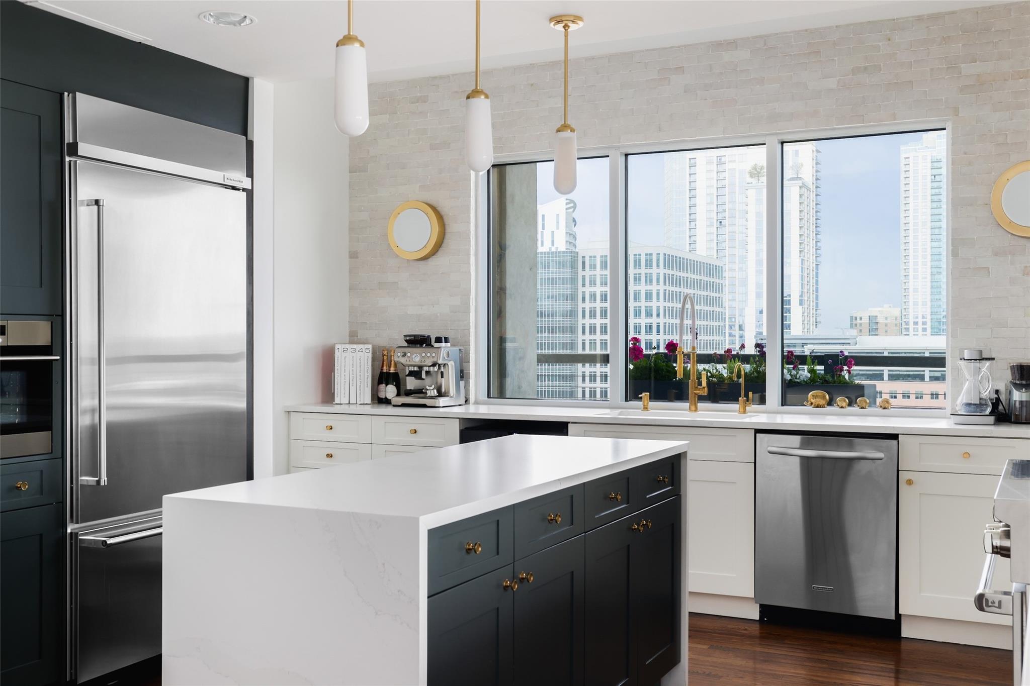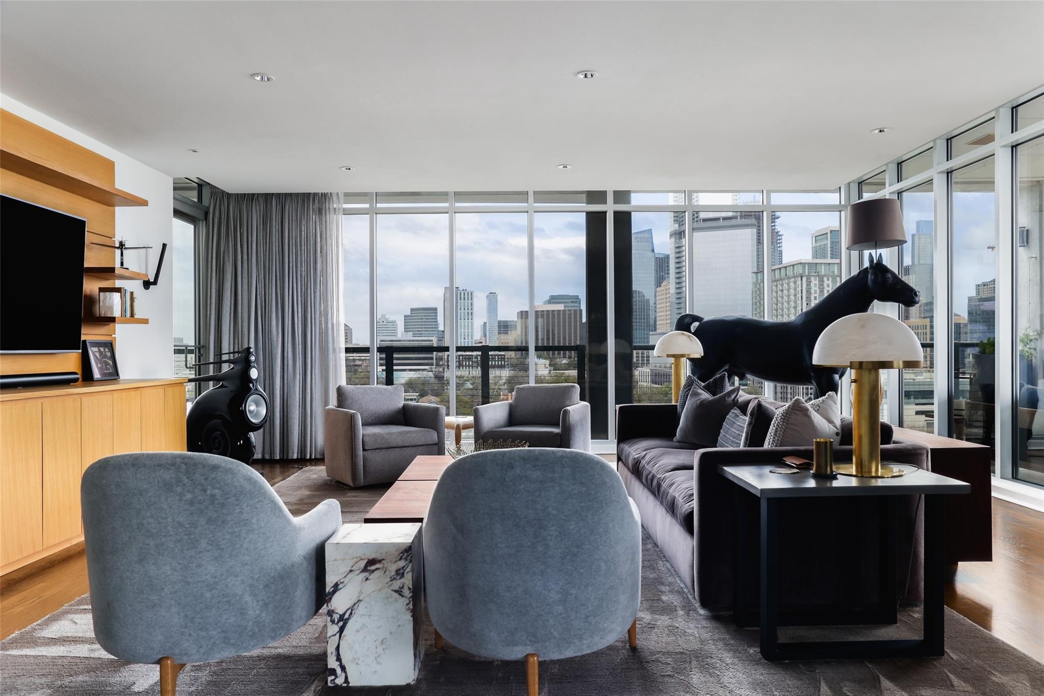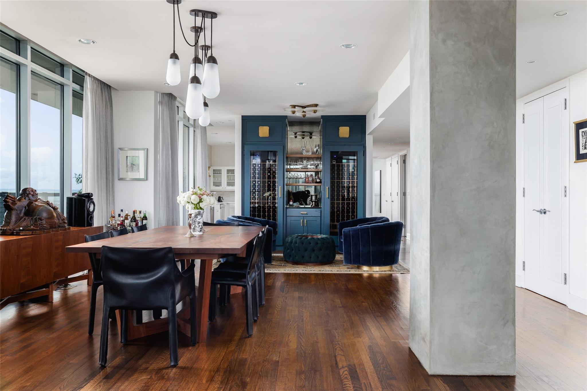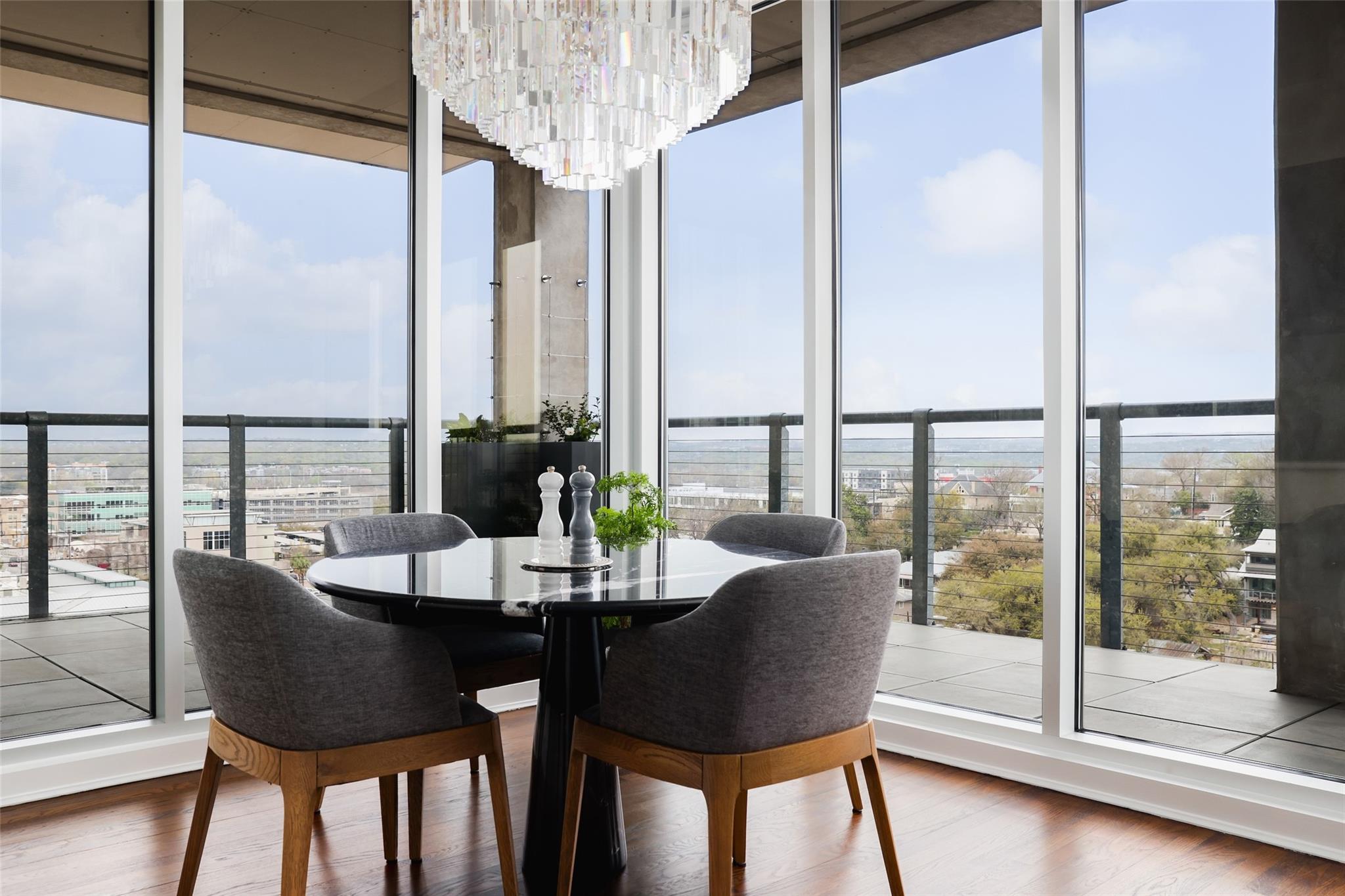 Ultimate Austin sophistication in the heart of the city. This 11th floor showplace presides over the cityscape with a wraparound balcony comprising the entire south side of the building. The spacious terraces offer extraordinary views of verdant Shoal Creek Greenbelt and the glittering skyscrapers downtown. Walk to Lady Bird Lake, the Whole Foods Flagship store and local boutiques and restaurants. The chic interior is designed for sophisticated entertaining with a stunning wine bar starring in the center of the living area. The living room as well as the kitchen are bracketed with windows. The primary bedroom offers a luxurious spa-like bath and large walk-in closet. Two additional bedrooms with en-suite baths offer flexibility for sleeping spaces or a home office and gym. The Nokonah pampers you with 24-hour concierge service, a fitness center, heated pool, spa and sundeck, and a cozy club room. Additional luxuries with this unit include four parking spots and an oversized storage unit.