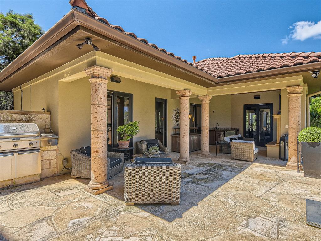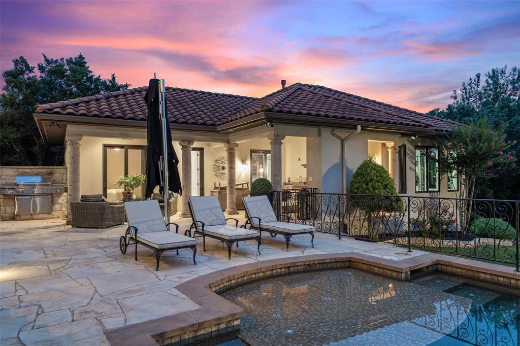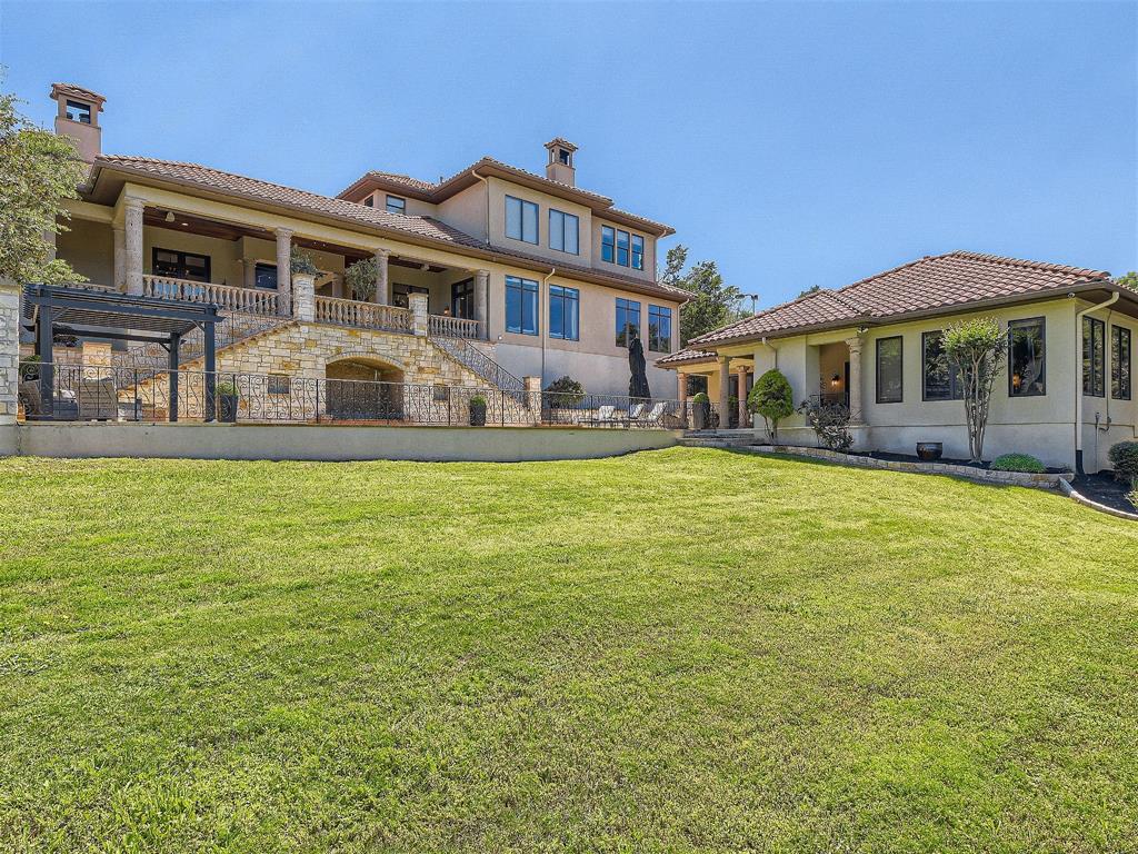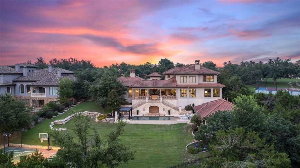 Located in the desirable Seven Oaks Neighborhood. Stunning Tuscany inspired home on 1.25 acres with separate guest house as well as a casita, pool/hot tub, sport court and expansive views of the hill country. This home has an excellent layout with a primary retreat on one side of the home. Grand primary suite with fireplace, sitting area, door to outside with private exterior patio. Primary bath has dual vanities, large soaking tub, dual head showers, walk in closet with built ins & a second washer/dryer closet. Private office with fireplace. Enjoy entertaining in your chef's kitchen with viking appliances and butler pantry. Kitchen is open to the living area and has a separate large game room off the kitchen as well. A beautiful wine cellar is showcased from your formal dining room.Upstairs features spacious, high ceiling bedrooms, each has it's own private full bath.There is also a large loft area upstairs. The guest house is separate from the main home and features a 1 bedroom/1 full bath with kitchenette and large living space. The casita is a 1/1 separated from the main home by a breezeway. The outdoor area of this home is meant for entertaining. A spacious, well shaded balcony is the perfect place to host a dinner party. Lap pool with hot tub featuring a waterfall. Sport court as well as outdoor kitchen! Zoned for the acclaimed Eanes ISD.