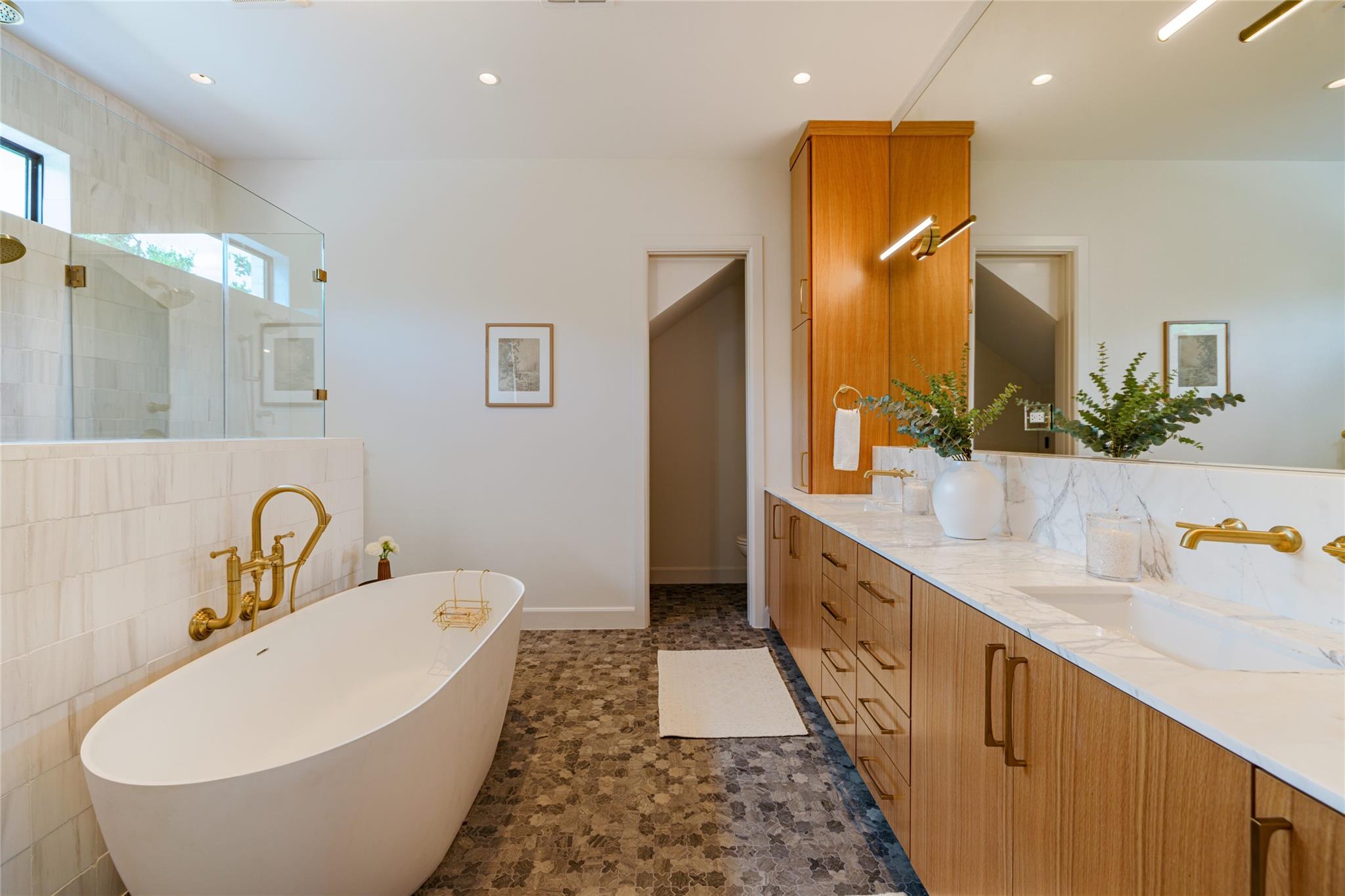 NOW REDUCED OVER 600 THOUSAND!! You will not find any new home in central Austin priced under 765 a ft with this level of finish out. This immaculate brand-new home by Trailway Builders in Northwest Hills is the epitome of luxury living. Every detail exudes opulence and sophistication, from the bespoke custom metal doors and windows to the artisanal plaster fireplace and kitchen vent. Enjoy finishes such as custom rift white oak cabinets or a premium commercial appliance package that blends style with functionality seamlessly. Indulge in the luxury of real marble bathrooms, or step outside to your private oasis with a heated pool and spa. Situated on a serene street, this home offers privacy and convenience, boasting nearly 4,000 square feet of living space on a sprawling 10,000+ square foot lot. Don't miss out on this unparalleled opportunity! lockbox in MAILBOX