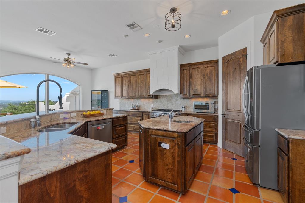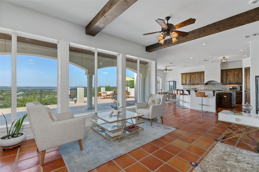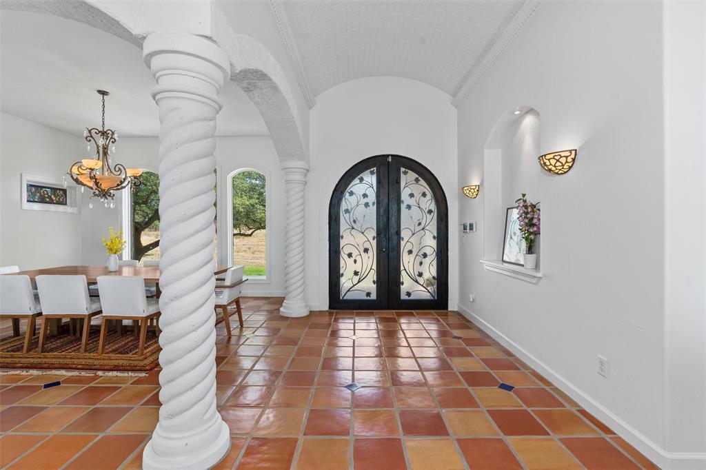 Welcome to a world of unrivaled opulence and grandeur, where refined luxury meets the breathtaking beauty of the Texas hill country. Nestled on an expansive 7.9-acre gated estate in Spicewood, this magnificent custom residence redefines high-end living in every sense. Arriving through a private drive, you are greeted by a magnificent façade, boasting Spanish-influenced architecture. Car aficionados will revel in the 9-car garage, designed to accommodate your automotive collection. Stepping through the grand Cantera front doors, an awe-inspiring interior unfolds before you. Spanish tile flooring, intricate columns, and artisanal finishes harmoniously blend to create a masterpiece of architectural brilliance. Spanning a remarkable 5,324 sq ft, this palatial residence offers 5 bedrooms, 5.5 bathrooms, 2 dining areas, and multiple living spaces that include 2 media rooms, an executive home office and a game/billiards room. Embrace a life of wellness with the indoor junior Olympic lap pool and a gym/multi-purpose room. The heart of this exceptional residence lies in the expansive living area, adorned with soaring wood-beamed ceilings and a stately stone fireplace. A wall of windows invites the breathtaking hill country views to become an integral part of the luxurious interior, creating a living canvas of natural beauty. The gourmet kitchen is a culinary haven, where knotty alder cabinets, granite countertops, and chef-style SS appliances create an ambiance of epicurean delight. The wrap-around center island with bar seating becomes the focal point for gatherings and culinary masterpieces. The owner's suite is a haven of tranquility and splendor, with a spa-like bath and direct access to a private balcony. A dreamy oasis awaits on the entertainer's back patio. Alfresco dining, lounging, and savoring unobstructed views become a cherished part of everyday life. Come experience a lifestyle that surpasses all expectations and defines a new era of elevated living.