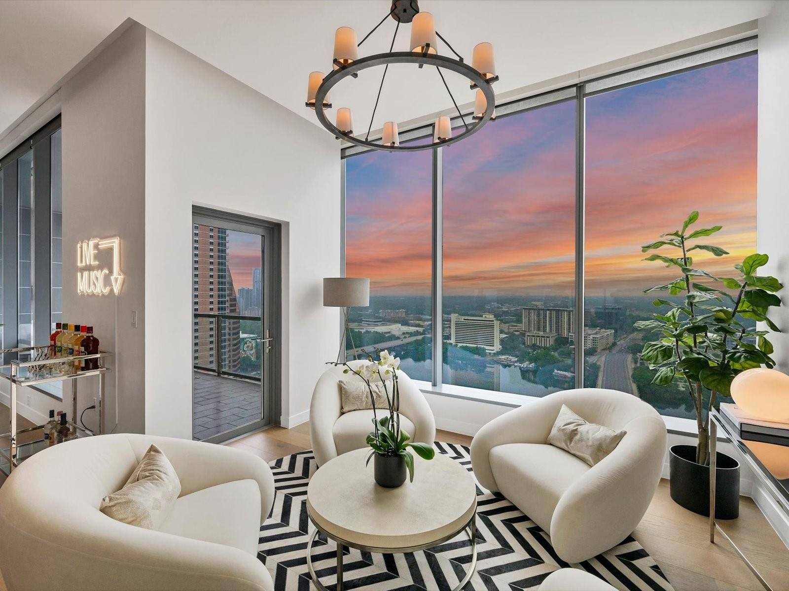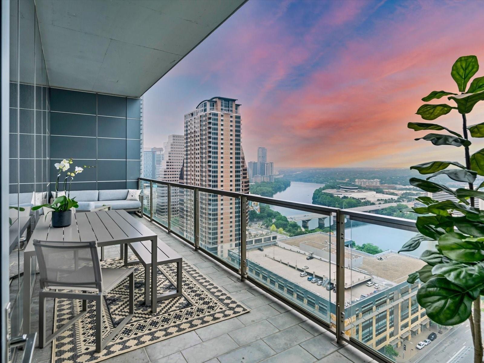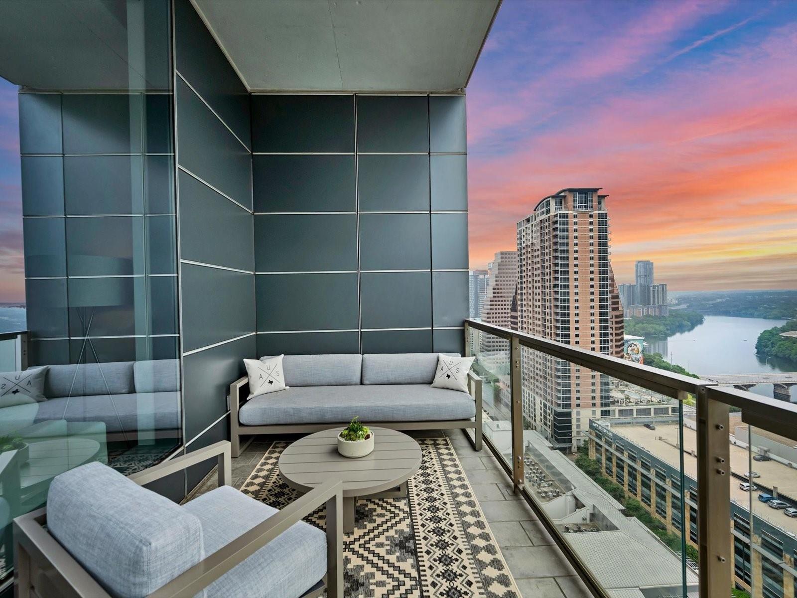 Amazing water views at the W Residences- South facing unit with Southeast corner primary suite! All brand-new RH furnishings are included in the list price. Recently renovated and furnished to sell as a turnkey package. This condo boasts brand-new high-end furnishings, Samsung Frame TVs, Miele appliances, and modern lighting, all complemented by newly installed wood floors and custom closets. Immerse yourself in the epitome of luxury living at the prestigious W Residences of Austin, where the "whatever, whenever" lifestyle awaits. This unit offers panoramic Lady Bird Lake views, captivating you from every angle. Step onto the expansive balcony to relish in W hotel room service delights or to witness the mesmerizing Texas sunsets. Retreat to the tranquil primary suite, where city and lake panoramas serve as a backdrop to your relaxation. Complete with a custom closet, dedicated workspace, walk-in shower, and luxurious soaking tub, this suite is a sanctuary in itself. 2 parking spaces that pull directly up to a large storage unit convey. Experience the unparalleled amenities of the W Residences, including a private resident pool, laundry services, and housekeeping, all accompanied by 24/7 complimentary valet parking and concierge services. Enjoy exclusive perks such as prioritized ticket sales to the renowned ACL-LIVE, access to a world-class workout facility, and residential discounts at the hotel, spa, and restaurant, ensuring a lifestyle of unparalleled luxury and convenience.