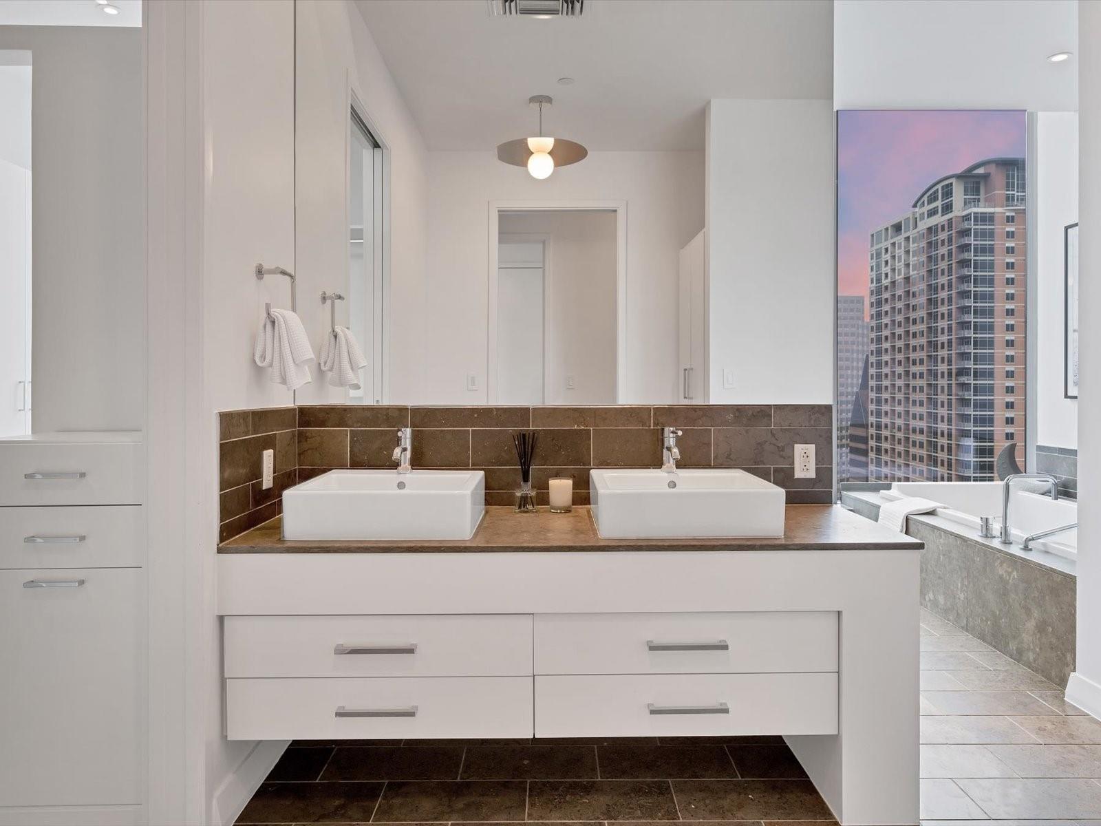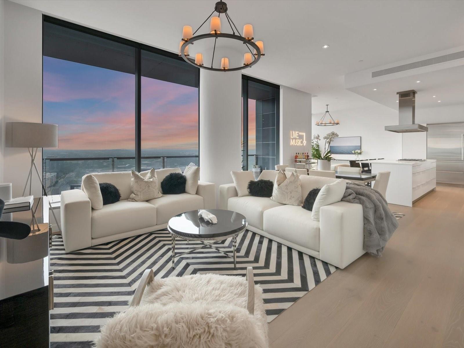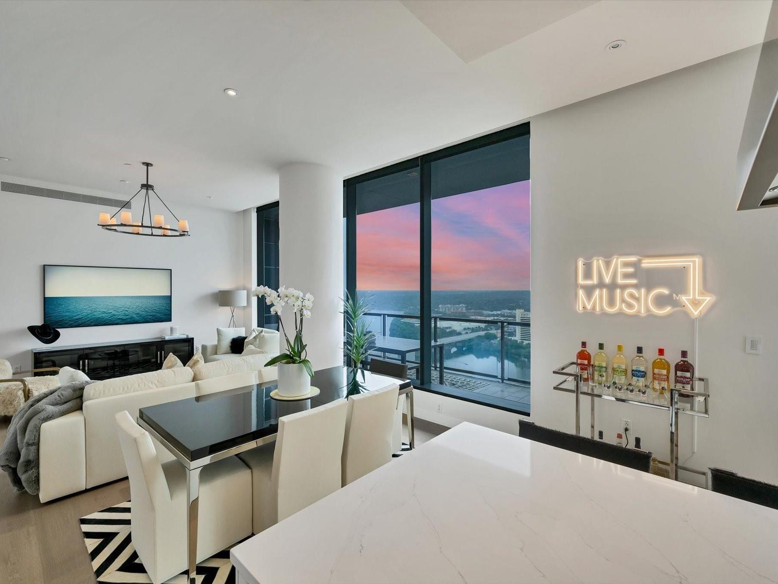 Amazing water views at the W Residences- South facing unit with Southeast corner primary suite! All brand-new RH furnishings are included in the list price. Recently renovated and furnished to sell as a turnkey package. This condo boasts brand-new high-end furnishings, Samsung Frame TVs, Miele appliances, and modern lighting, all complemented by newly installed wood floors and custom closets. Immerse yourself in the epitome of luxury living at the prestigious W Residences of Austin, where the "whatever, whenever" lifestyle awaits. This unit offers panoramic Lady Bird Lake views, captivating you from every angle. Step onto the expansive balcony to relish in W hotel room service delights or to witness the mesmerizing Texas sunsets. Retreat to the tranquil primary suite, where city and lake panoramas serve as a backdrop to your relaxation. Complete with a custom closet, dedicated workspace, walk-in shower, and luxurious soaking tub, this suite is a sanctuary in itself. 2 parking spaces that pull directly up to a large storage unit convey. Experience the unparalleled amenities of the W Residences, including a private resident pool, laundry services, and housekeeping, all accompanied by 24/7 complimentary valet parking and concierge services. Enjoy exclusive perks such as prioritized ticket sales to the renowned ACL-LIVE, access to a world-class workout facility, and residential discounts at the hotel, spa, and restaurant, ensuring a lifestyle of unparalleled luxury and convenience.