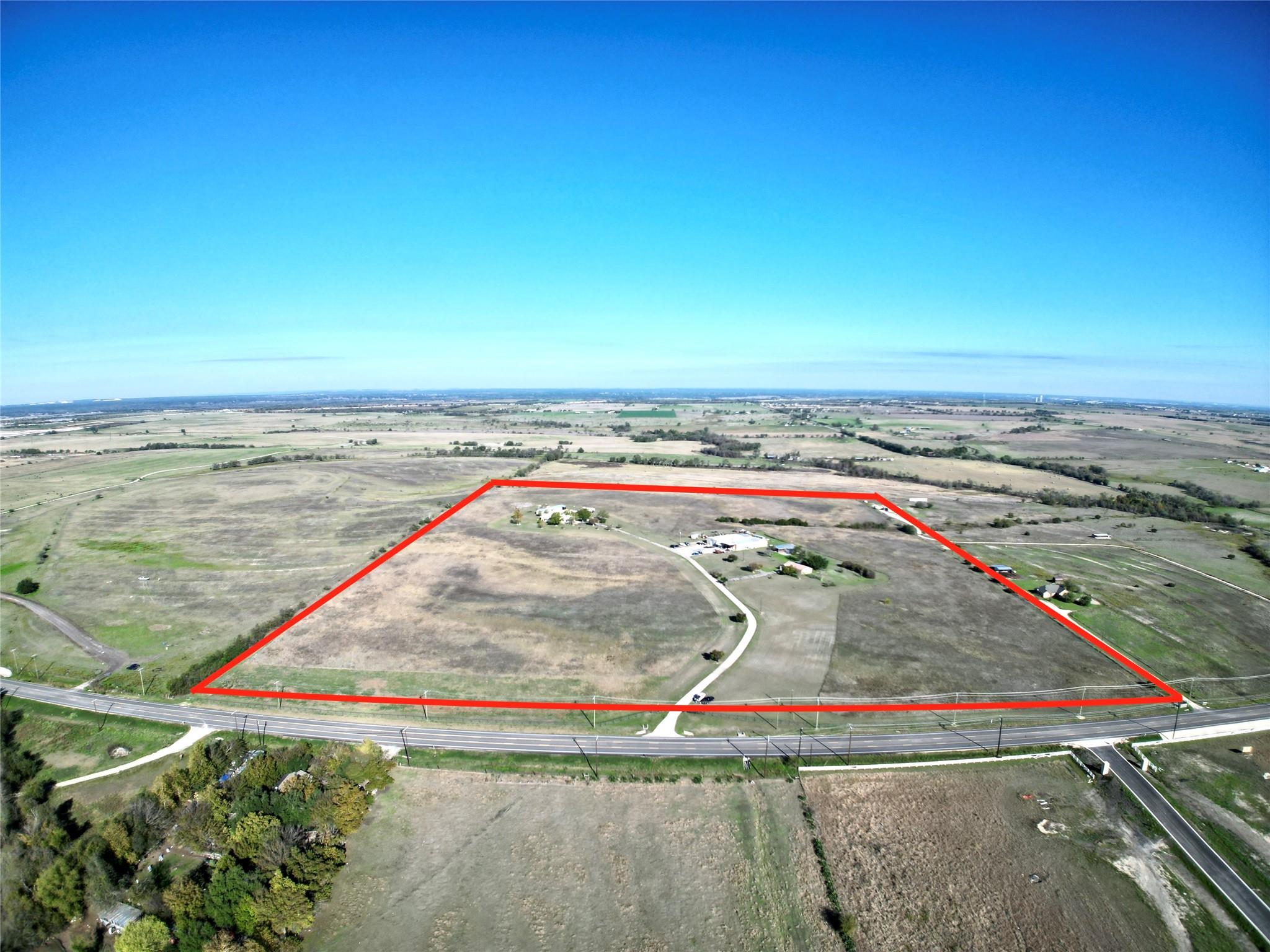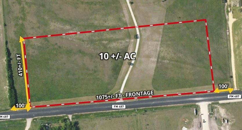 10 AC of unrestricted land on FM 487 in Jarrell, TX. The property features over 1050 ft of frontage and has an additional 42+ AC available. Located next to the future middle school (JISD), this property has 3 Phase power onsite, a 12' waterline at the road, and the seller is currently negotiating an easement for sewer through front of the property. Buyer to verify all utilities with providers. Additional 42+ AC offered at $70,000/AC 52+- total acres available