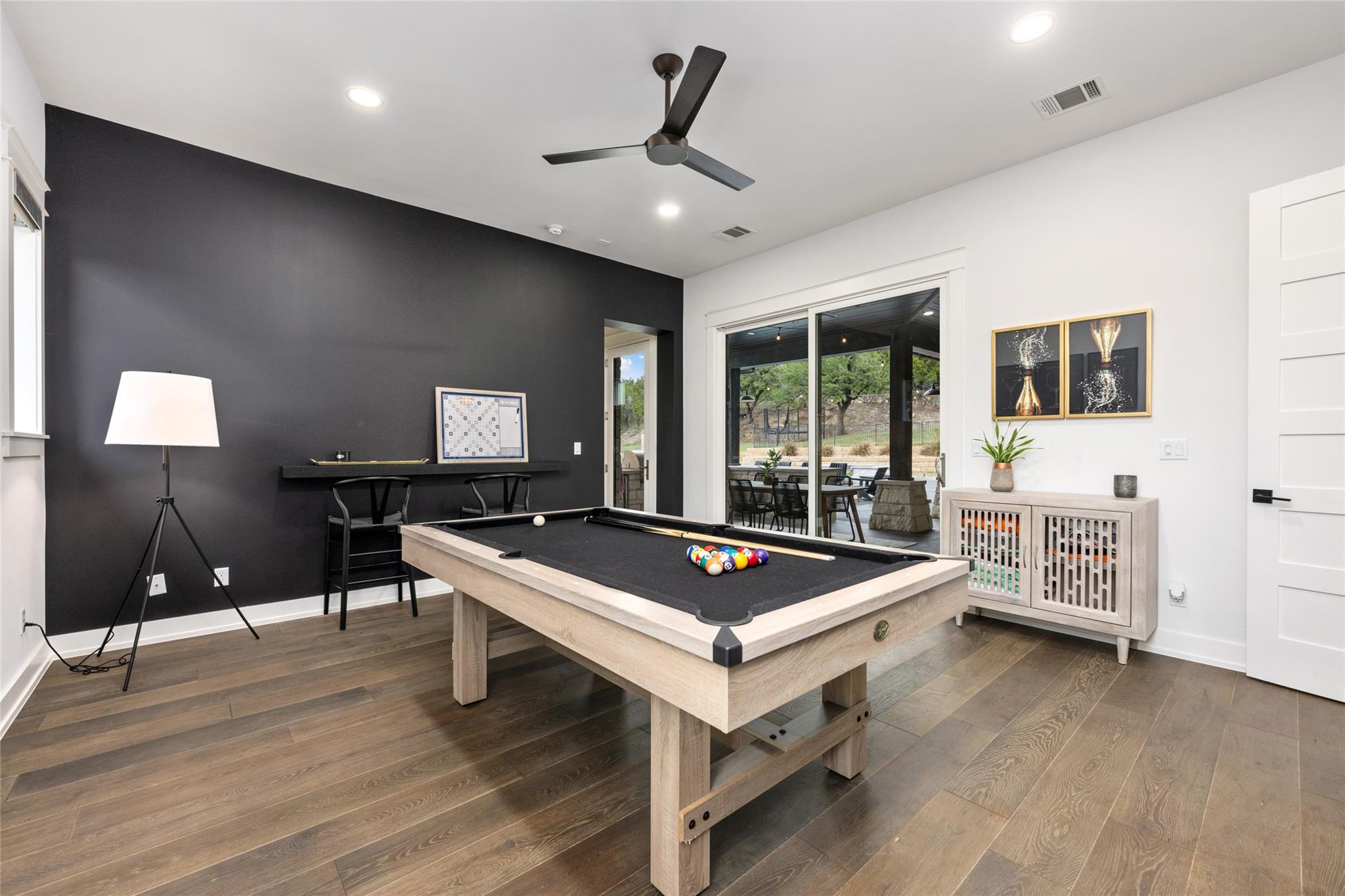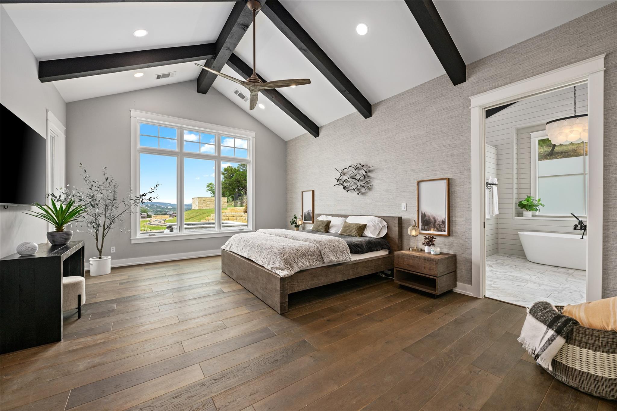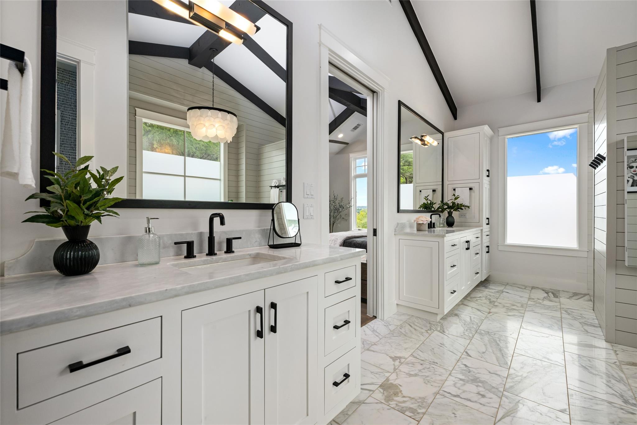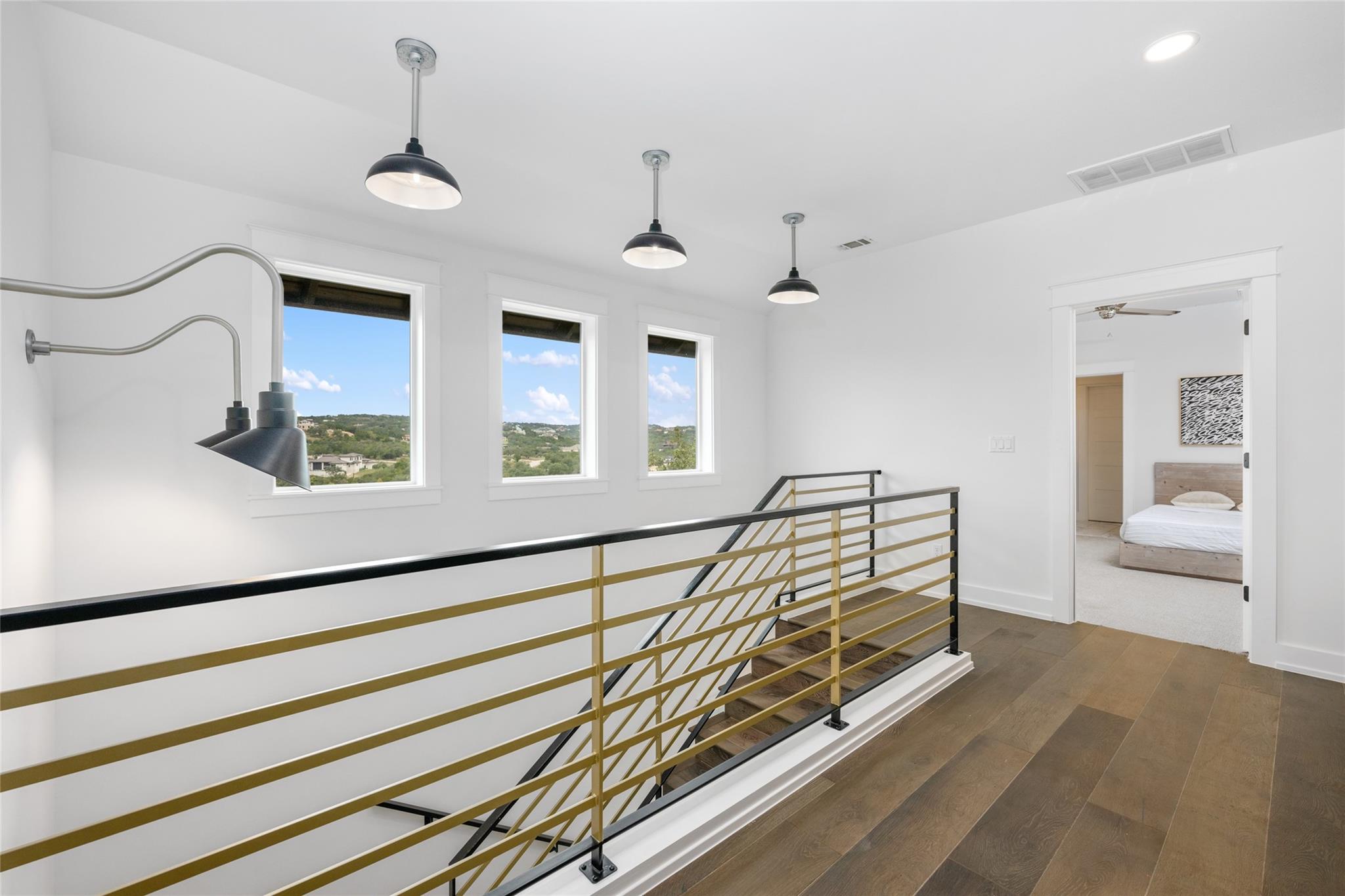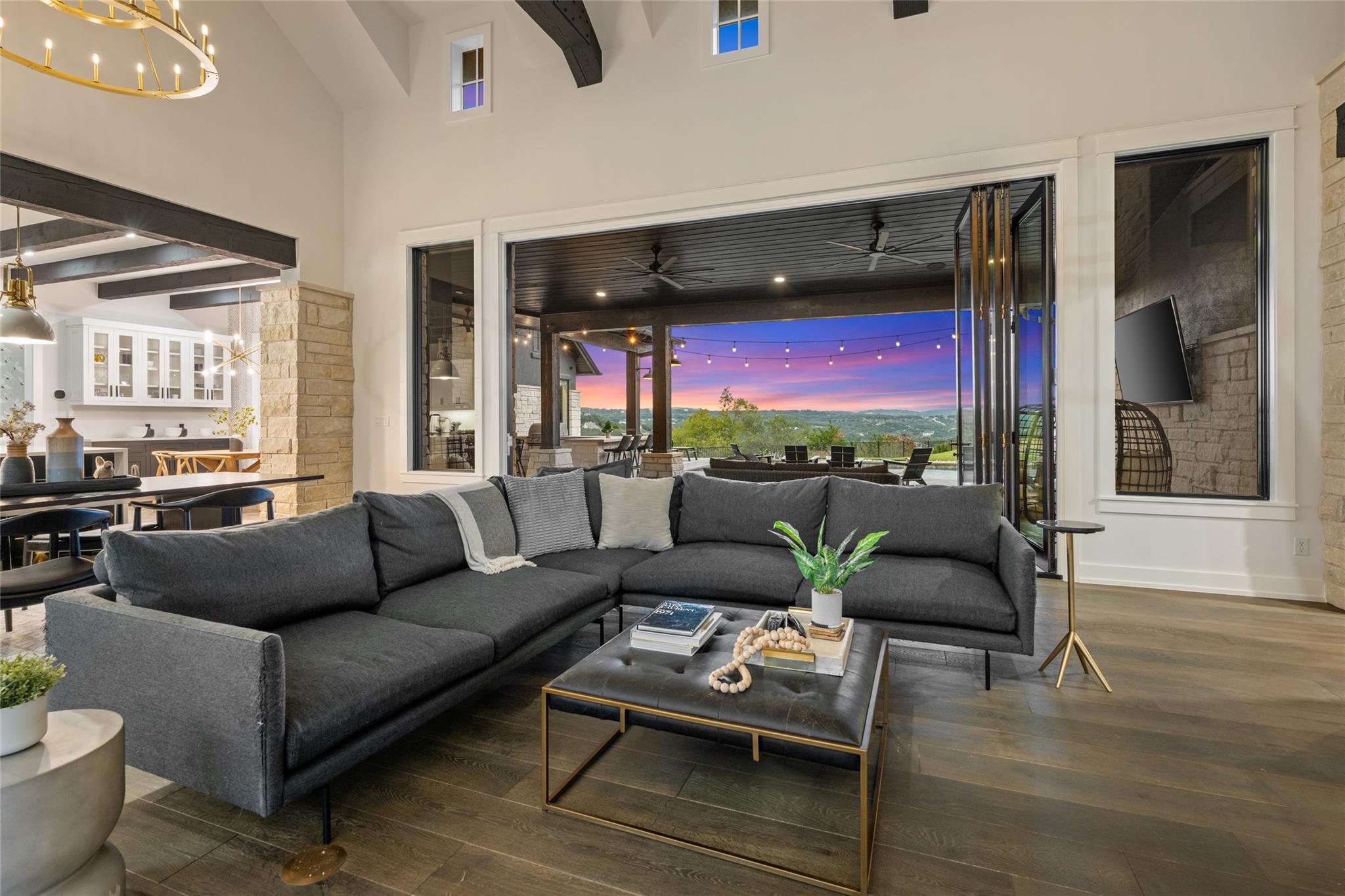 Welcome to a luxurious oasis that redefines upscale living. Situated in the prestigious gated community of Bee Creek Estates in Spicewood, Texas, this extraordinary, remodeled estate occupies a sprawling 3-acre home site with stunning 10-mile panoramic views. With meticulous attention to detail and impeccable craftsmanship, this home offers unparalleled elegance and sophistication. Step inside and be captivated by the grandeur of the cathedral ceiling great room, seamlessly connected to a spacious gourmet kitchen. French white hardwood flooring exudes timeless beauty, complemented by dazzling quartz countertops and a suite of professional-grade stainless steel appliances. The adjacent butler's pantry adds convenience, catering to your culinary desires. Discover bespoke elegance with custom wall treatments and exquisite light fixtures that effortlessly elevate every room's aesthetic. The oversized owner's suite is a masterpiece, offering an unparalleled escape. Pamper yourself in the sumptuous spa bath, featuring an oversized body jetted shower and freestanding bathtub, for the perfect haven of relaxation. This remarkable residence boasts a flexible floor plan, accommodating your ever-changing needs. Embrace joy and entertainment in the downstairs games area, seamlessly connected to the inviting pool, offering a seamless indoor-outdoor lifestyle. For work, retreat to the peaceful sanctuary of the separate office(s), allowing you to balance productivity and tranquility. Upstairs, find two additional en-suite bedrooms adorned with exquisite finishes, accompanied by a living area for unwinding or quality time with loved ones. Step outside into the oversized covered outdoor living area, complete with a built-in kitchen for hosting gatherings while enjoying the breathtaking scenery or head out to the firepit area and marvel at the stars. Dive into the pool or surrender to the soothing embrace of the spa as you bask in the tranquility of your personal retreat.