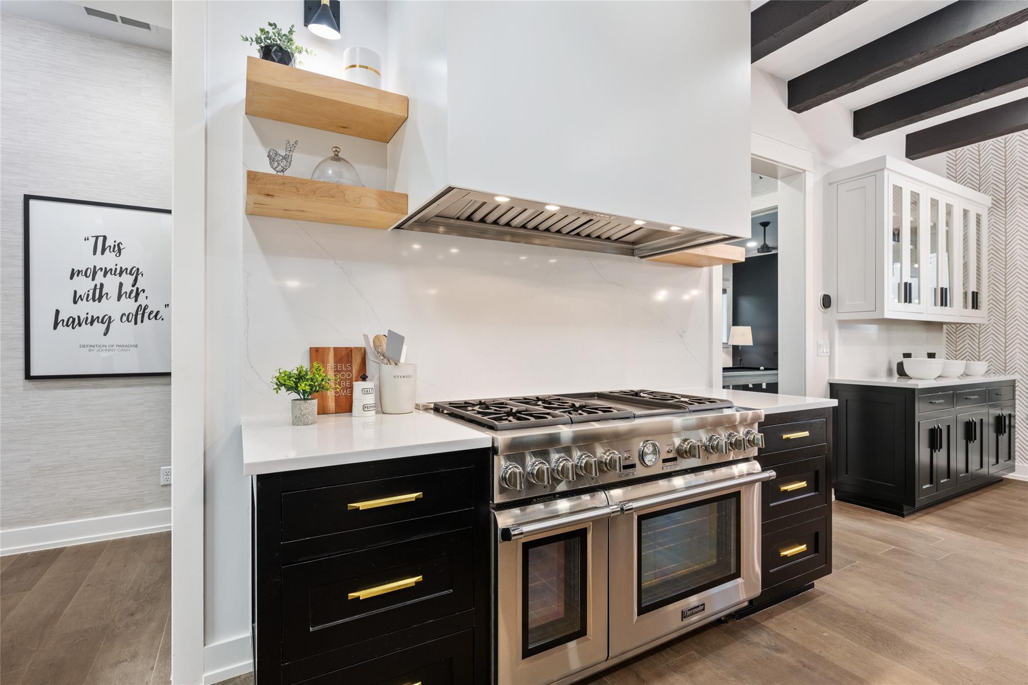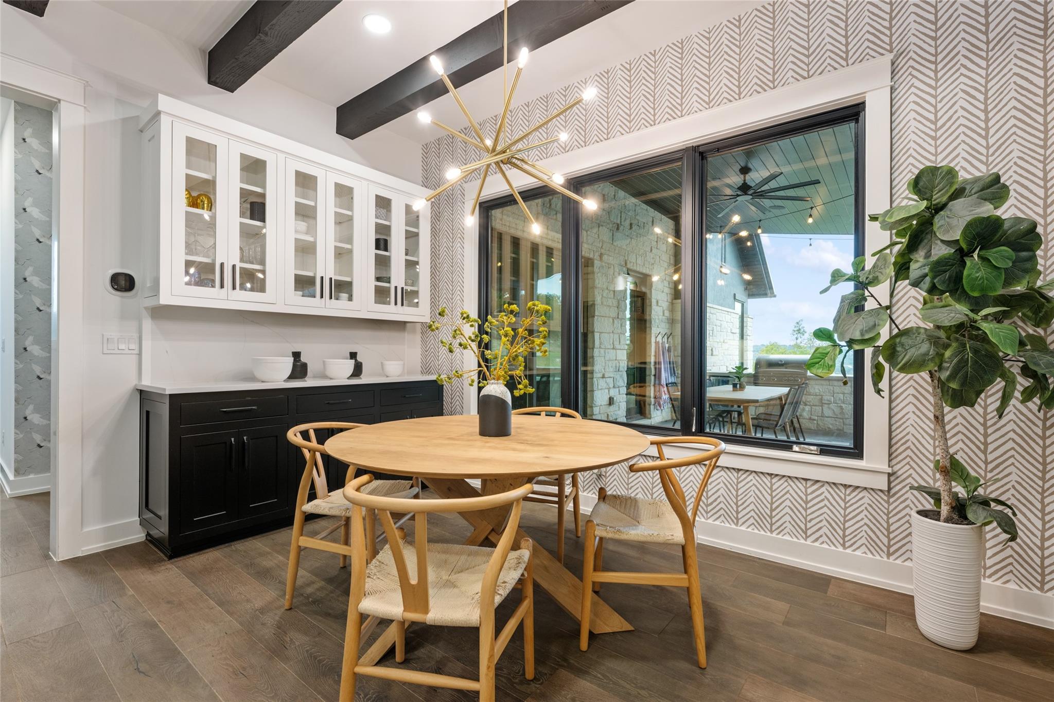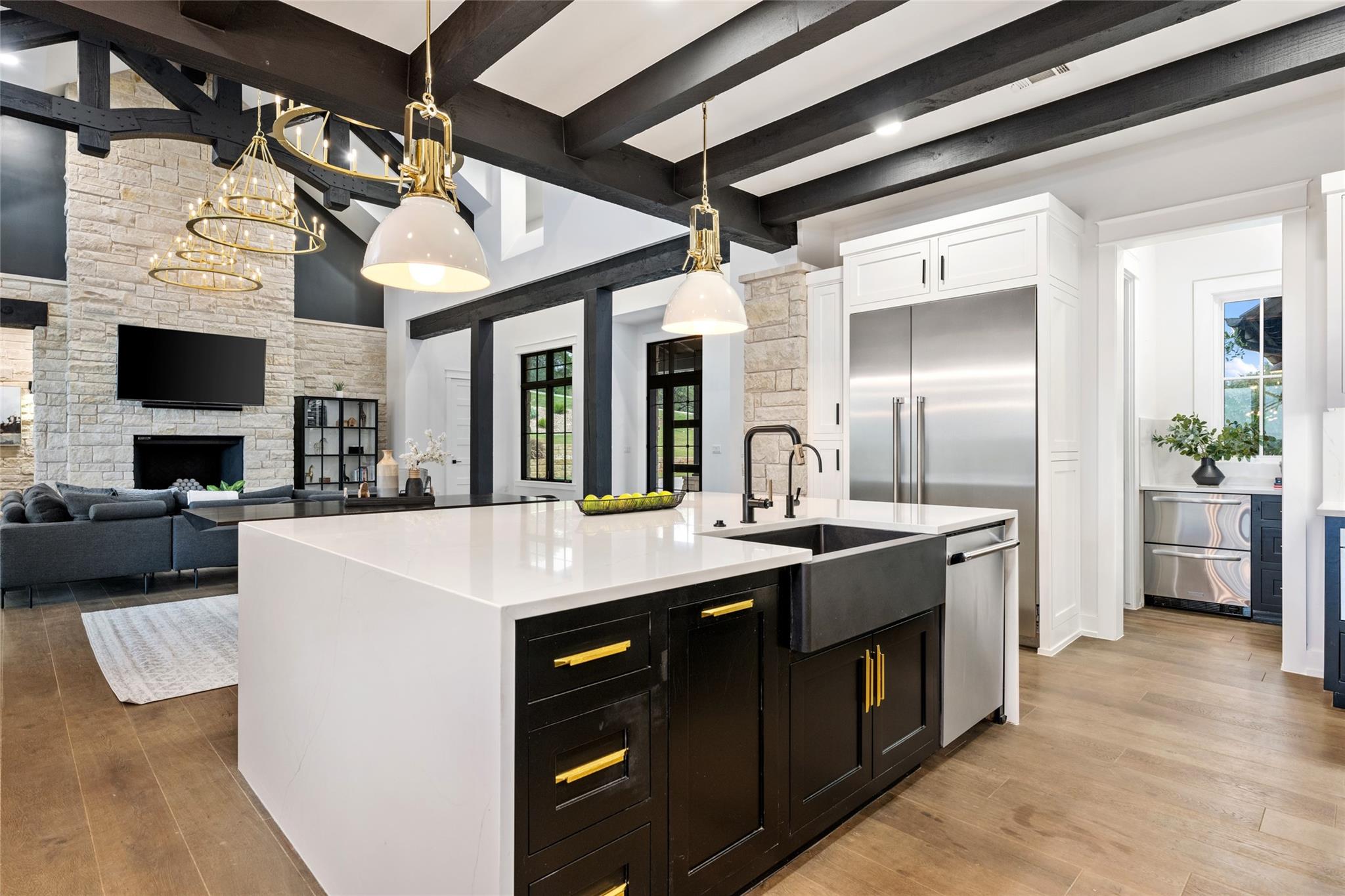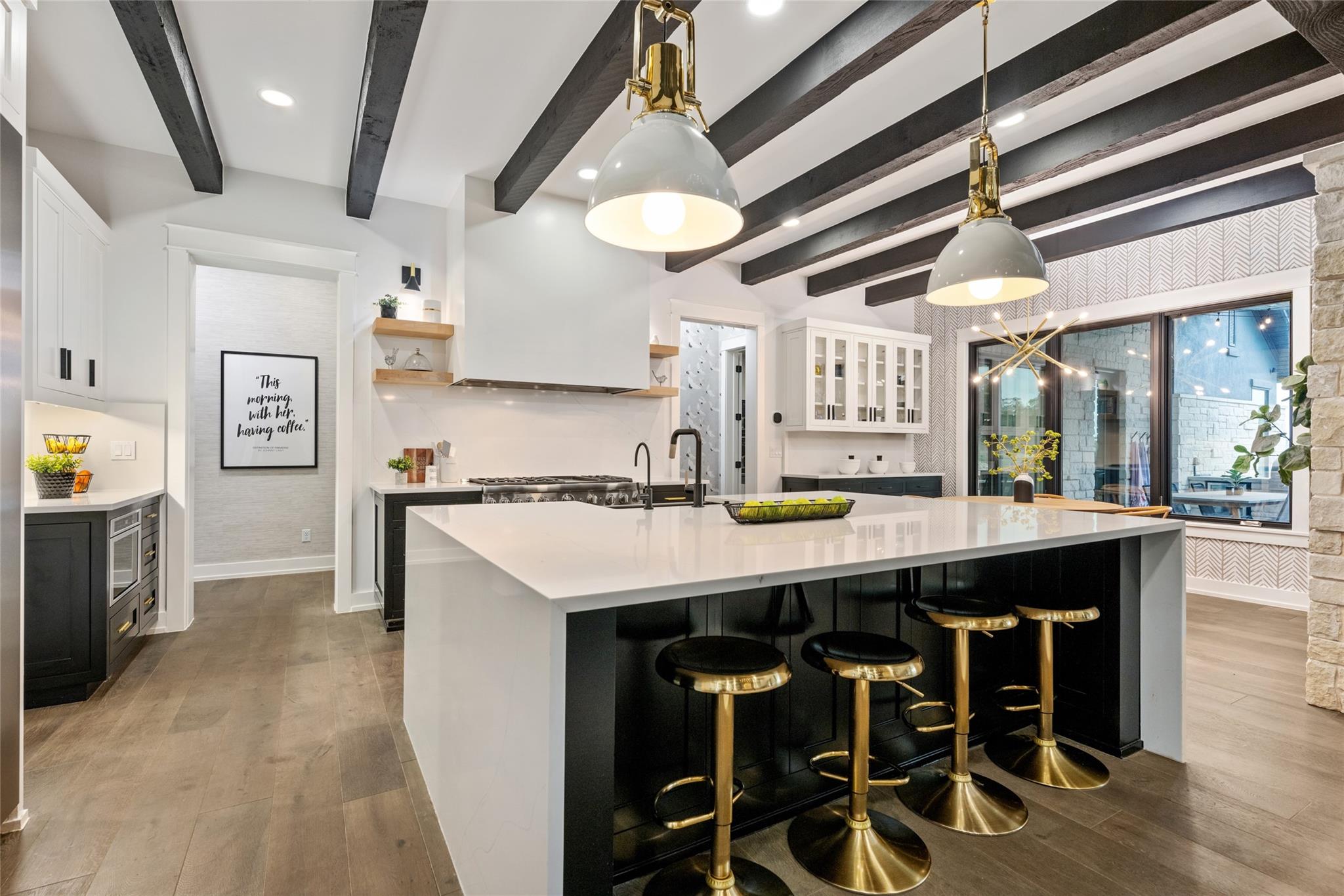 | Interior Features | Built-in Features, Beamed Ceilings, Cathedral Ceiling(s), High Ceilings, Chandelier, Quartz Counters, Double Vanity, Electric Dryer Hookup, Eat-in Kitchen, French Doors, High Speed Internet, In-Law Floorplan, Kitchen Island, Multiple Dining Areas, Multiple Living Areas, Open Floorplan, Pantry, Primary Bedroom on Main, Recessed Lighting, Smart Thermostat, Soaking Tub, Storage, Walk-In Closet(s), Washer Hookup, Wet Bar, Wired for Data, See Remarks | |