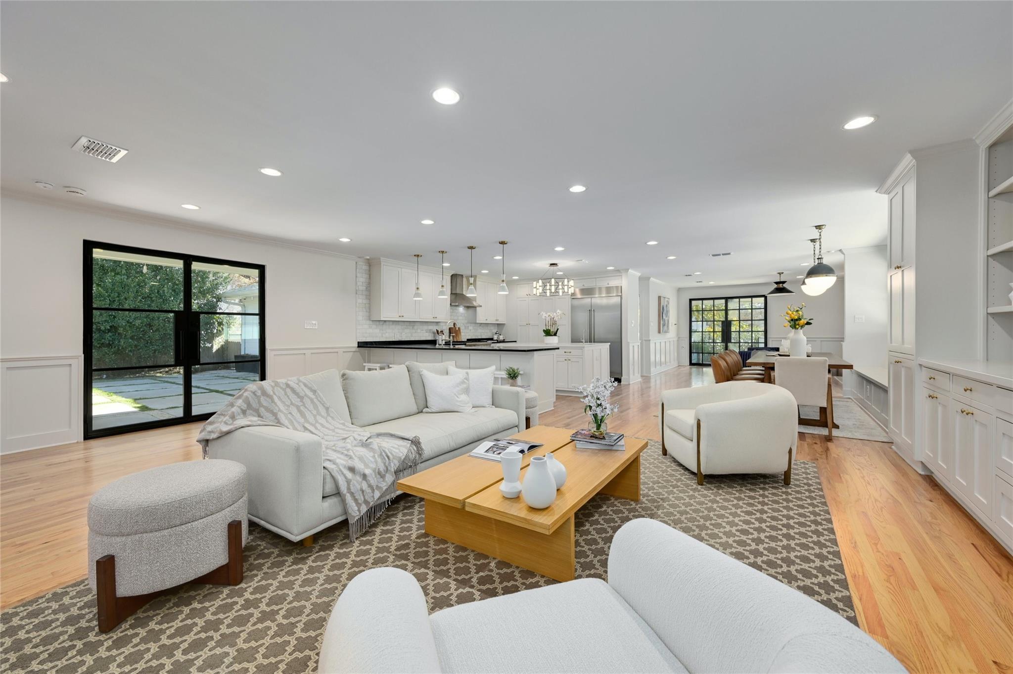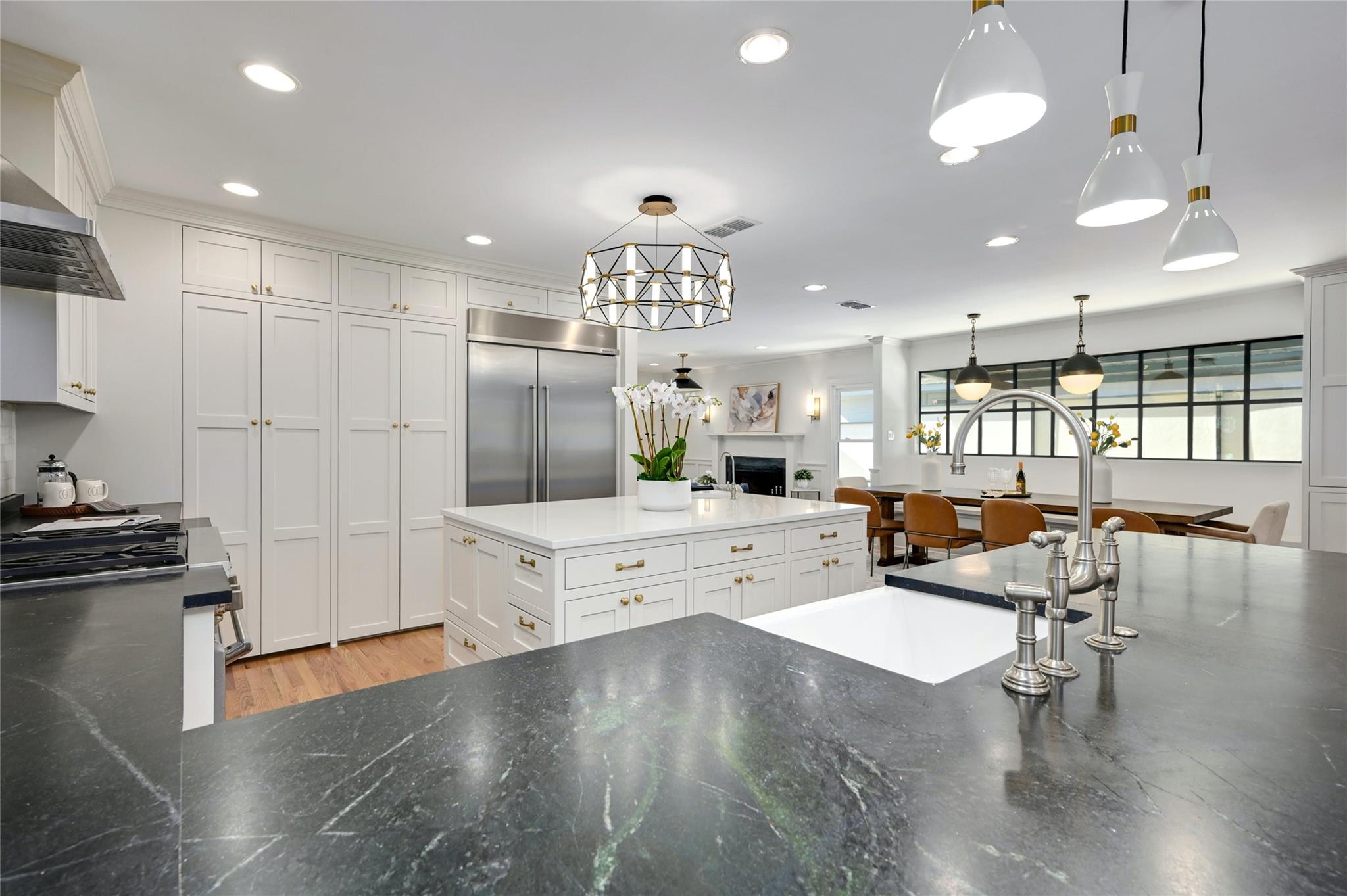 Recently reduced! Welcome to 2800 Warren St., a rare single level 5 bedroom home on an estate size .28 acre lot in the heart of Tarrytown. This distinctive fully updated home, originally constructed in 1953, has been meticulously transformed from the studs down into a masterpiece of modern living, blending timeless charm with contemporary elegance even the most discerning eye will appreciate. Inside there is space for everyone with an open concept living area and thoughtfully designed layout of 4 bedrooms and 3.5 baths separated to maximize space and create privacy with the primary suite separated from the secondary bedrooms. All bathrooms are tastefully updated with marble and classic materials. A junior primary suite lends to a flexible floor plan, including for multigenerational living arrangements or live-in nanny. The centerpiece of this home is the gourmet kitchen, a true culinary haven. With its sleek countertops, top-of-the-line appliances, double sinks and ample prep space + storage, this kitchen is a dream come true for any cooking enthusiast. The eat-in dining room is ideal for both casual every day meals and large gatherings with seating of 12+ people. Step outside and experience a private oasis that transcends expectations. The sprawling and private grounds, enveloped by a fully gated and fenced perimeter, features a stunning newly resurfaced pool with fountains + automatic pool cover that can be easily used year round with wifi control, heating + chilling capabilities. The casita with full bath is an ideal space as a guest bedroom, home office or gym. Walk to Starbucks, Casis Elementary, Westwood Club and Laguna Gloria among many other neighborhood attractions.