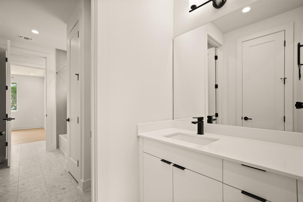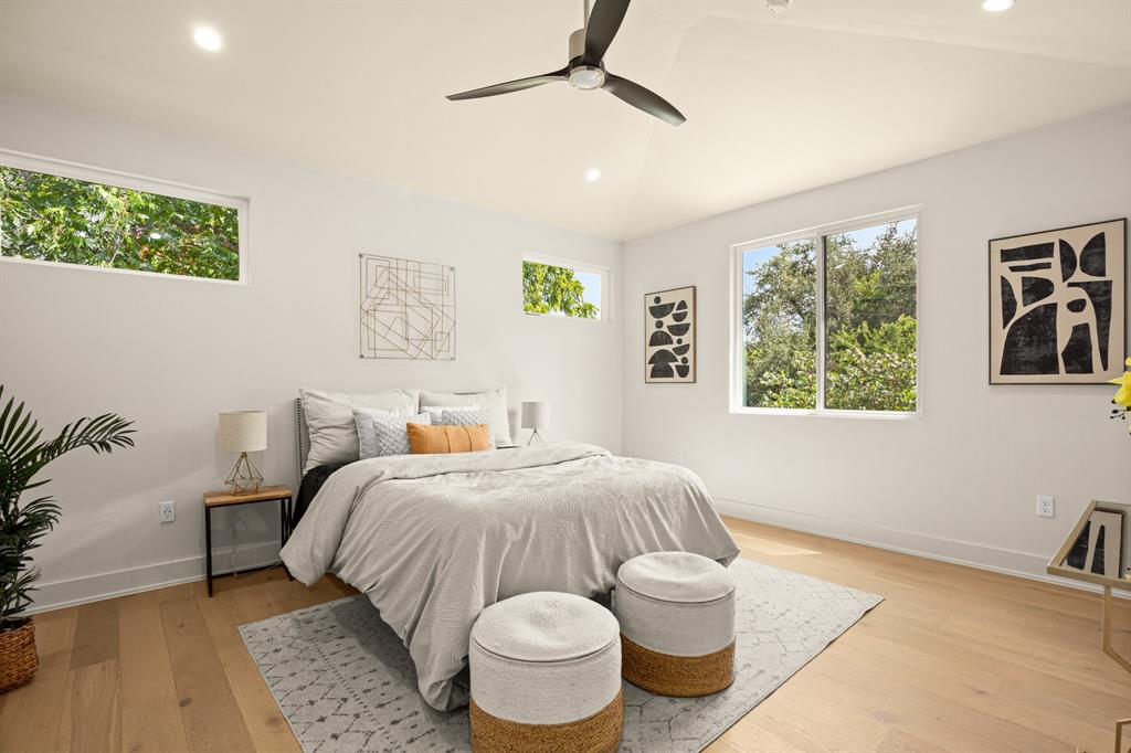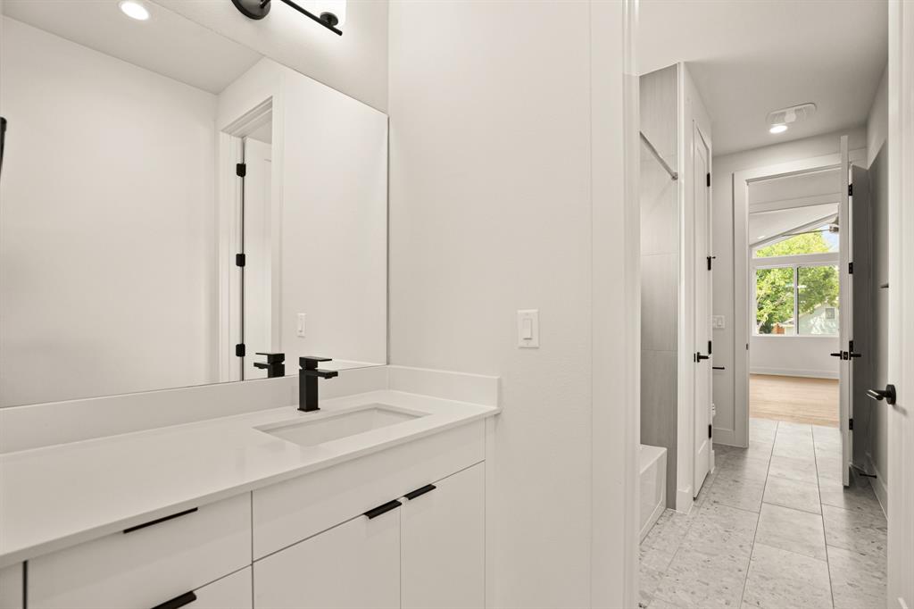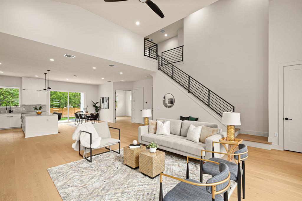 Buyer will have two blue tape walks with the builder before closing. Nearly complete home! This new home is a modern twist on a classic design, featuring 4 bedrooms and 3 baths, a big fenced backyard, and and rare 2 car garage with upgraded glass panel garage doors. The living spaces have high ceilings, 8' doors, and large windows, creating a bright and open feel both upstairs and down. The wood flooring throughout, along with the all-marble tile in the primary bathroom and contemporary tile in the guest bath, add a stylish touch. The primary suite includes dual vanities, a seamless glass walk-in shower/tub, and walk-in closets. The home is equipped with energy-efficient features, stainless steel appliances, upgraded flat panel cabinetry, Smart programmable thermostats, ceiling fans, LED bulbs, bathroom fan timers, USB charging plugs, a zoned sprinkler system, Zoysia Grass, a large pantry and more. In addition, there is a large Cowboy Pool with gas heater to be installed, ready for you to enjoy this summer and into the winter!