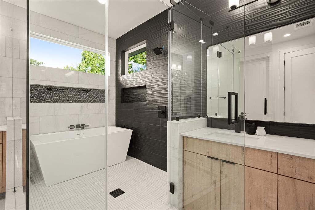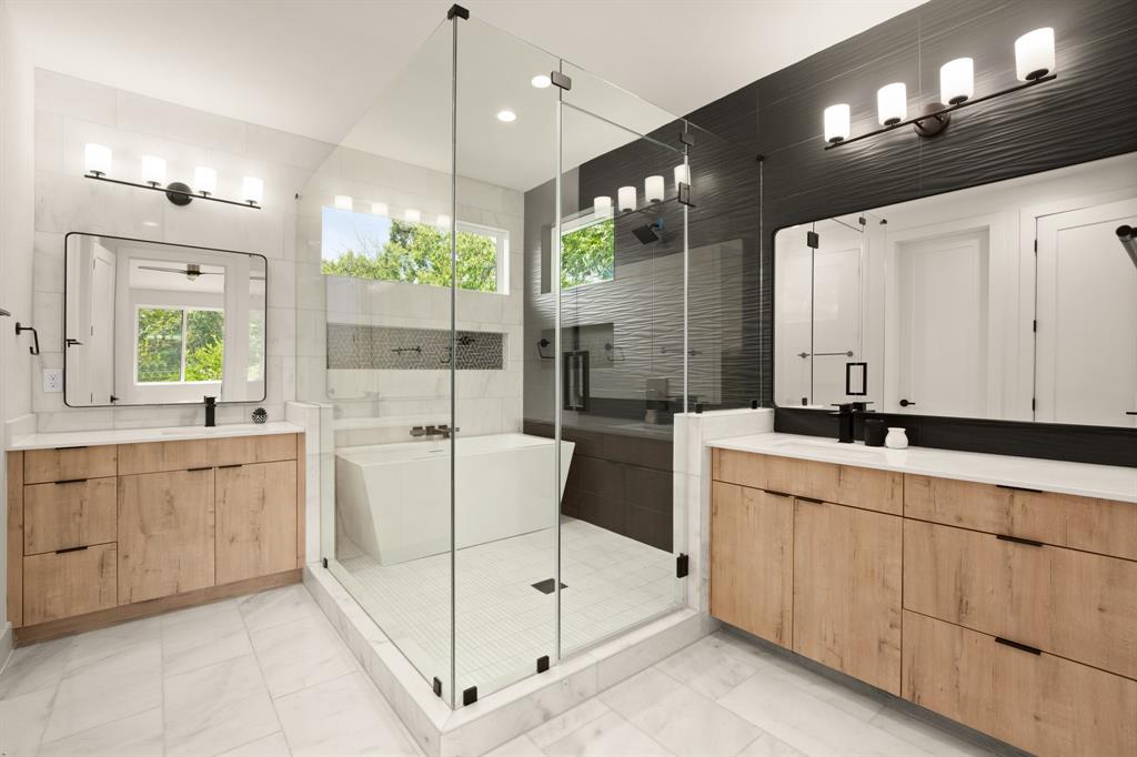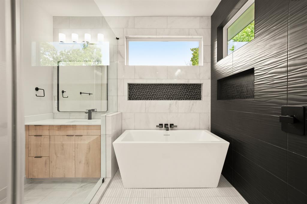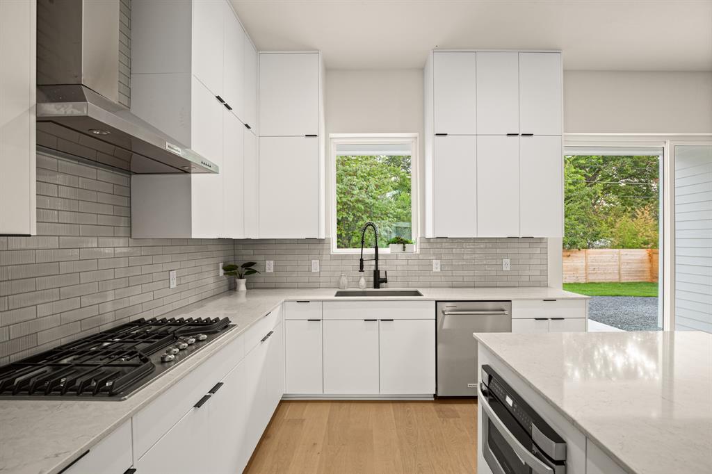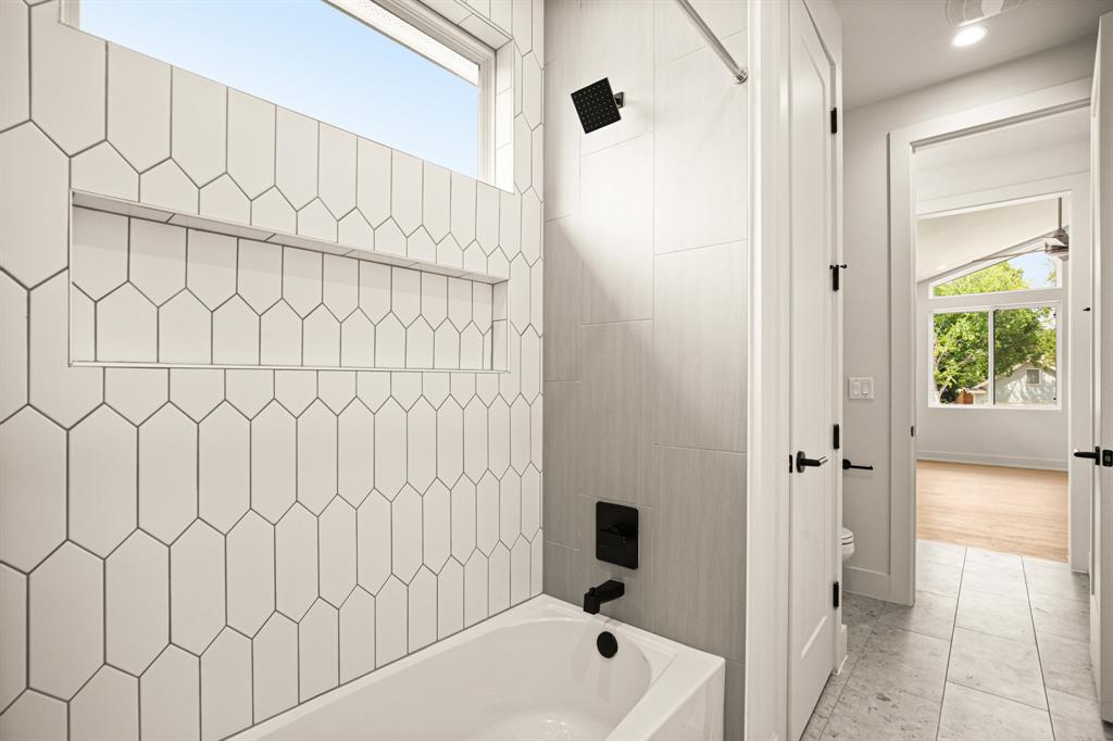 Buyer will have two blue tape walks with the builder before closing. Nearly complete home! This new home is a modern twist on a classic design, featuring 4 bedrooms and 3 baths, a big fenced backyard, and and rare 2 car garage with upgraded glass panel garage doors. The living spaces have high ceilings, 8' doors, and large windows, creating a bright and open feel both upstairs and down. The wood flooring throughout, along with the all-marble tile in the primary bathroom and contemporary tile in the guest bath, add a stylish touch. The primary suite includes dual vanities, a seamless glass walk-in shower/tub, and walk-in closets. The home is equipped with energy-efficient features, stainless steel appliances, upgraded flat panel cabinetry, Smart programmable thermostats, ceiling fans, LED bulbs, bathroom fan timers, USB charging plugs, a zoned sprinkler system, Zoysia Grass, a large pantry and more. In addition, there is a large Cowboy Pool with gas heater to be installed, ready for you to enjoy this summer and into the winter!