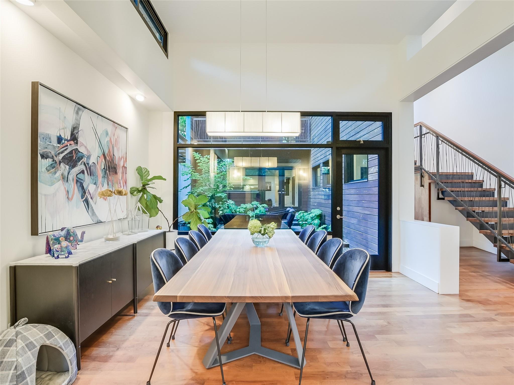 An immaculately designed property in historic Bouldin! From the jaw-dropping curb appeal to the moment you enter this creatively thought-out space, you will be mesmerized by the collaboration efforts of Jobe Corral Architects, Pilgrim Building Company, and Mark Word Design (landscaper). 909 Post Oak invites you into an open concept with tall ceilings and spaces wrapping all around a cozy, private courtyard. The main level master bath boasts high-end custom tile, and grants access to the courtyard featuring beautiful bamboo. On one of the most coveted streets, it is within walking distance to everything - Barton Springs Rd, Downtown, Lady Bird Lake, Hike and Bike trail, SOCO, and South Lamar. It is the perfect location to enjoy nature, dining, shopping, and nightlife.