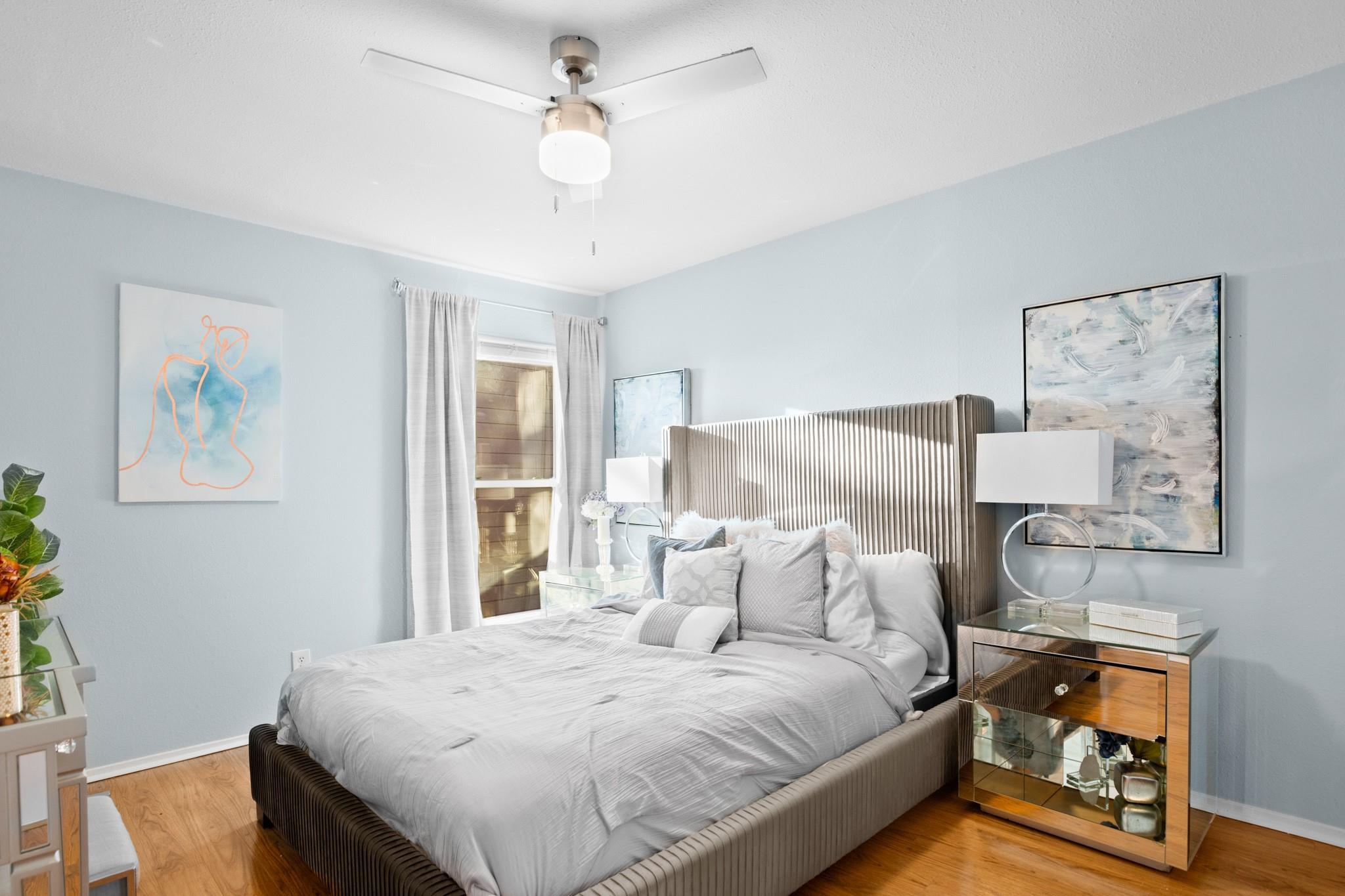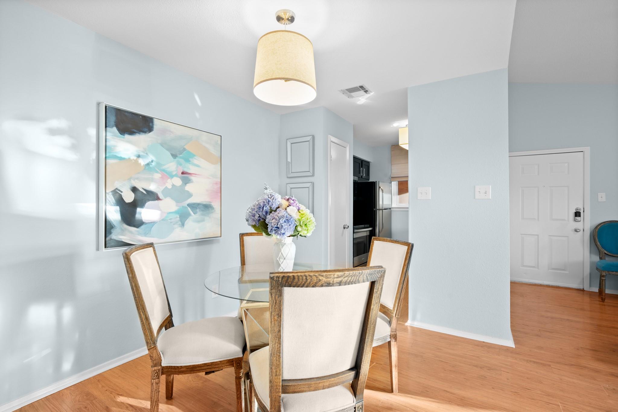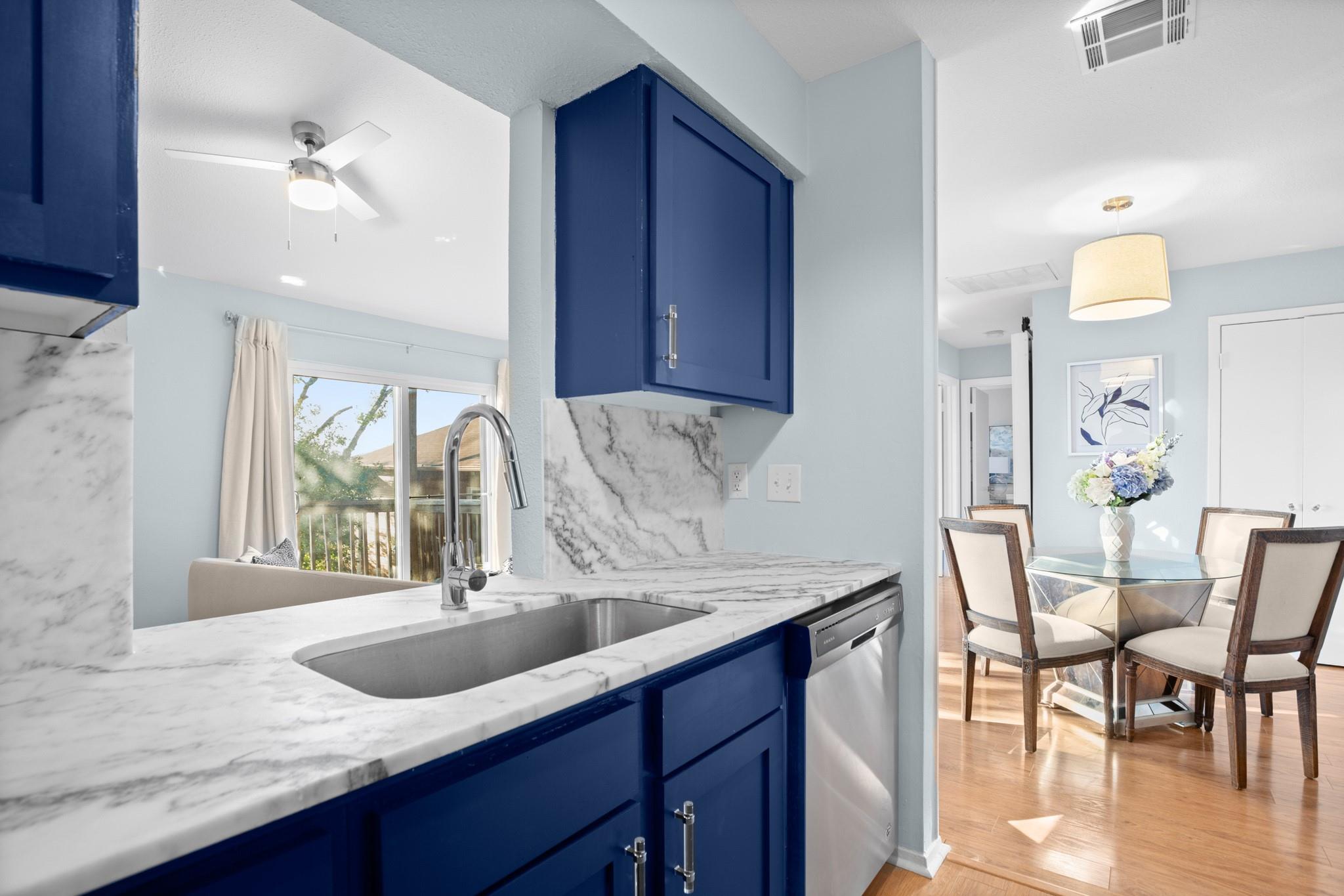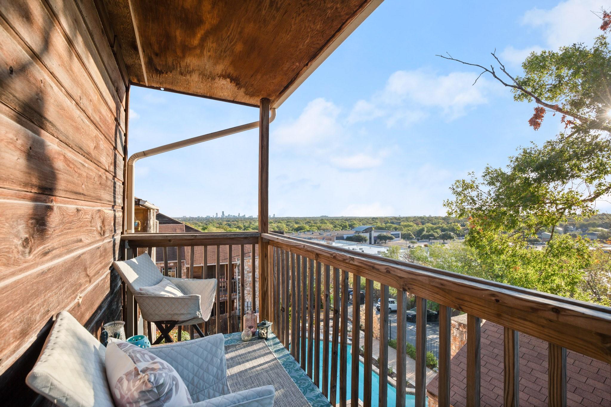 Beautifully furnished and designed south Austin condo with quick access to MoPac and popular shopping and restaurants at Arbor Trails and Sunset Valley. Enjoy a rare, beautiful skyline view from the private balcony! A vaulted ceiling in the living and dining area creates a feeling of spaciousness, while decorative touches throughout add tasteful style. The kitchen features a pot filler sink, stainless appliances, and stone countertops and backsplash. The primary bedroom includes a walk-in closet, and the bathroom features a rainfall shower head and custom tile touches.
