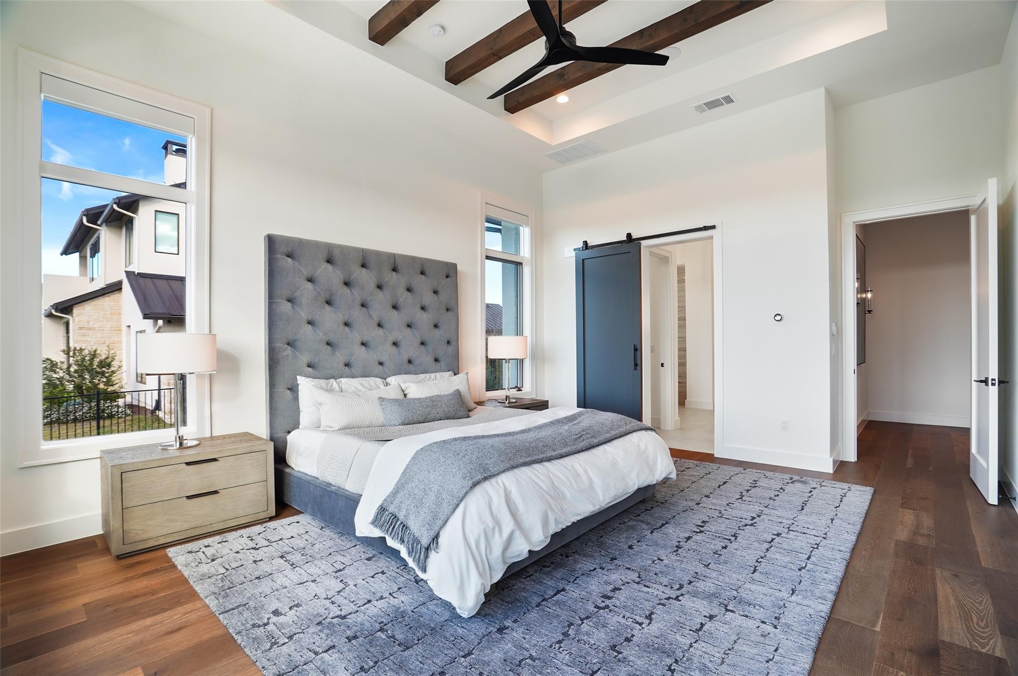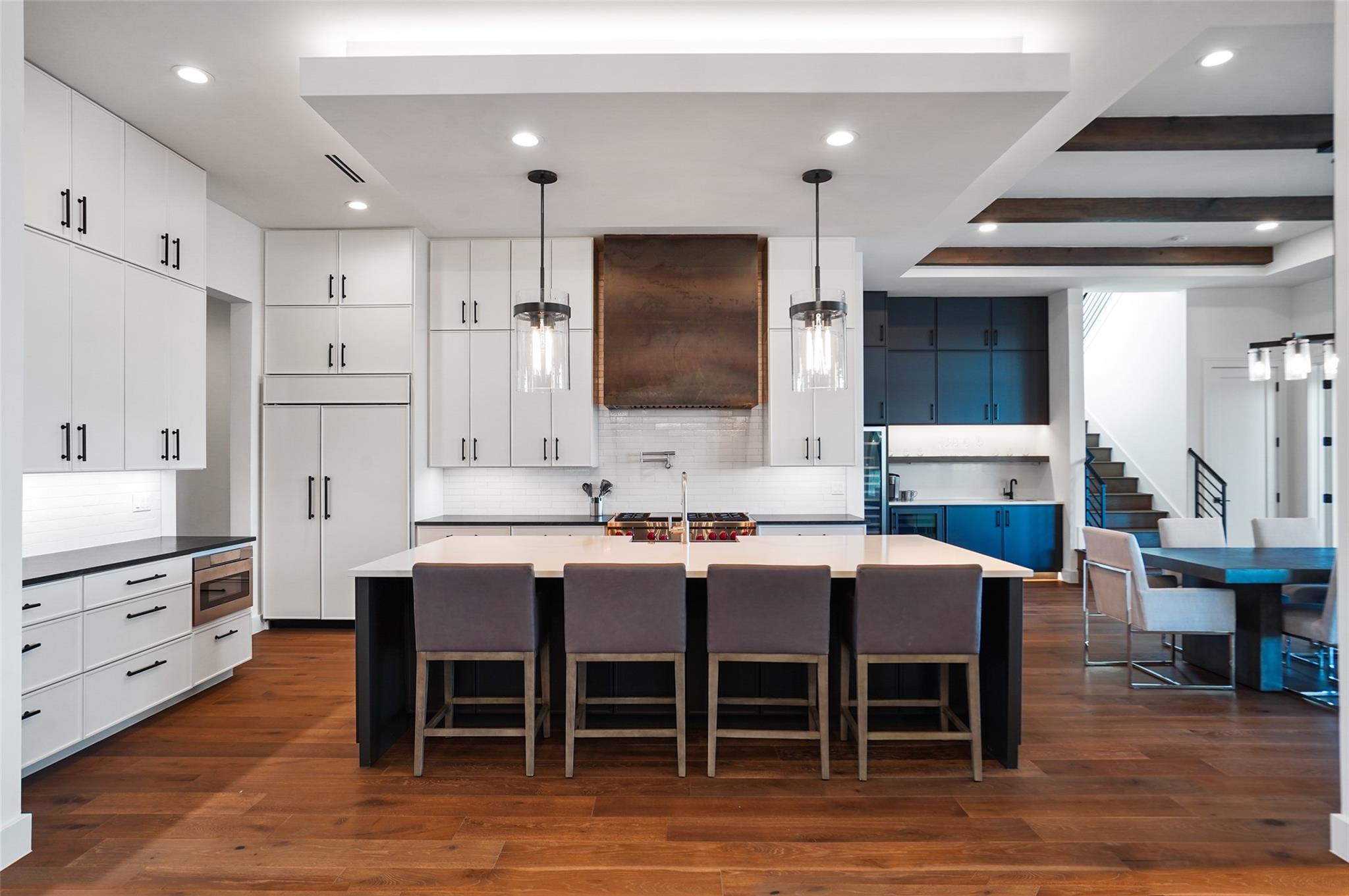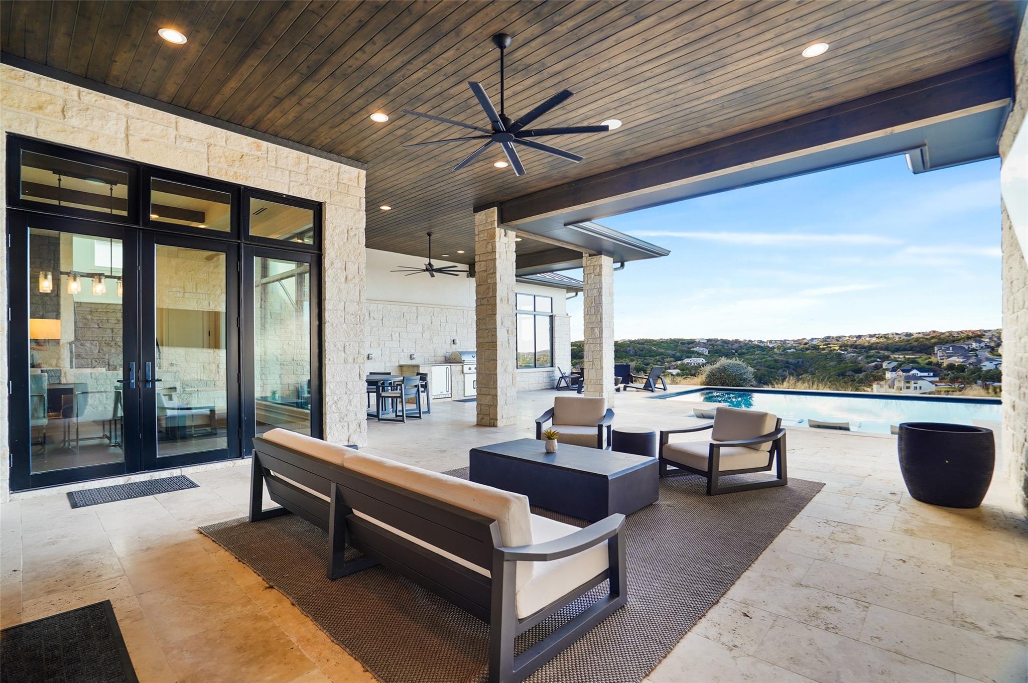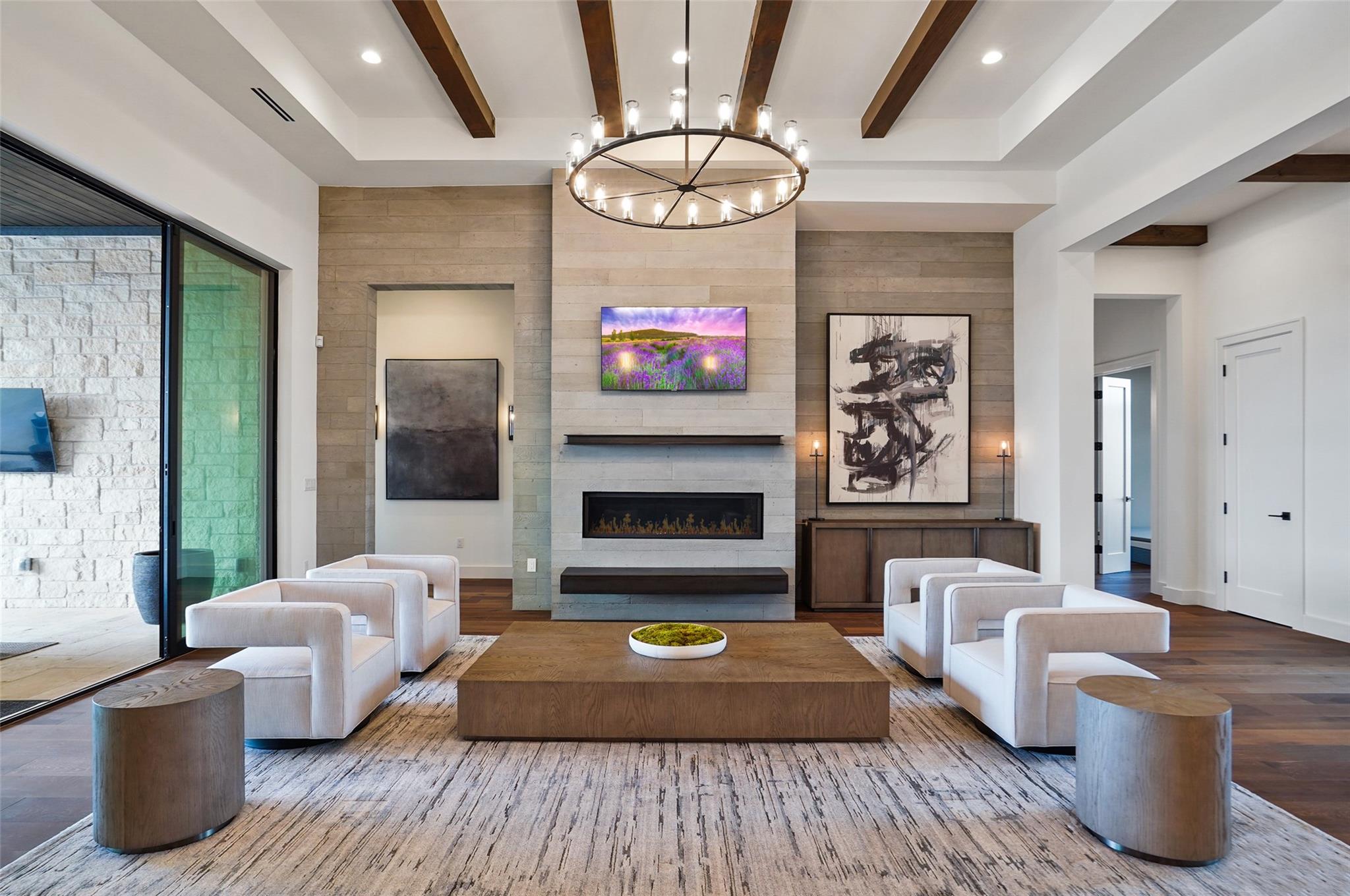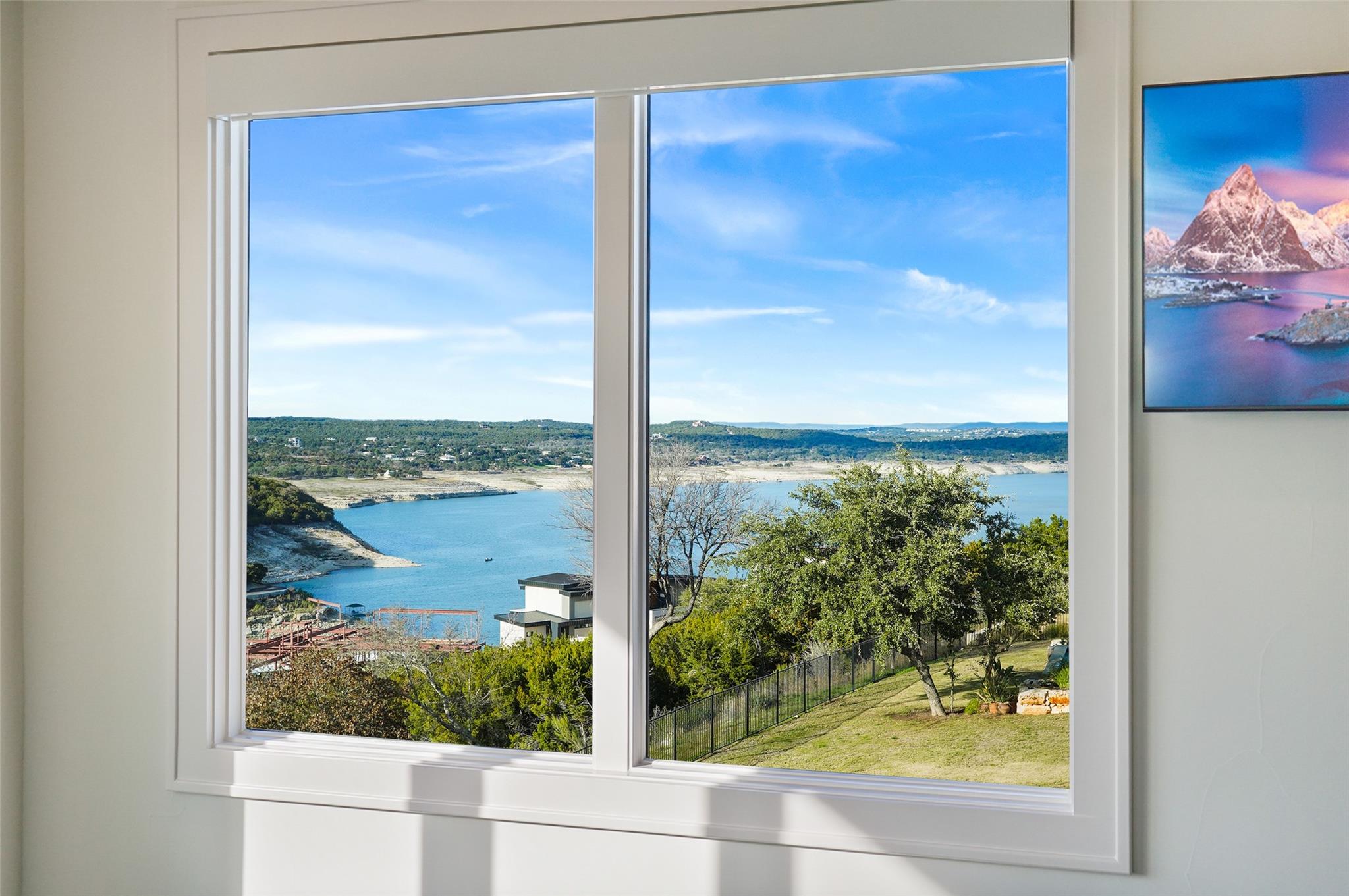 Stunning modern Lake Travis waterfront views surround this masterpiece located in The Peninsula of Rough Hollow-Lakeway. 5,378 sf, 5 beds/5.5 bathrooms (1.79AC). See the lake from almost every room, including the huge luxury Master suite! The downstairs features a supersized flex/game room w/full bar + kegerator and office. Outdoor covered living spaces and firepit area surround a resort style pool w/spa, in-water seating and bubblers. Modern finishes, designer lighting, abundant light, large format windows/glass doors, w/ tall ceilings. Wolfe 7 burner range anchors the open kitchen, framed in white quartz counters on an oversized center island. Tray lighting in ceiling and under cabinet lighting provide an elegant soft glow. 3 bedrooms up centered by a secondary living space w/more lake views. The upstairs also features a private gym w padded flooring and mirrored wall. Exquisite craftsmanship and attention to detail are hallmarks of this home built by award winning builder Arbogast Custom Homes. Designed by Geschke Group Architecture. This magnificent home can be sold entirely furnished as shown. The Peninsula is the most exclusive neighborhood in Rough Hollow, with two privacy gates with concierge, private access to a tram with community dock and observation deck. Note the beautiful, lush landscape as you meander down Peninsula Blvd. Residents will receive access to the Rough Hollow Yacht Club & Marina, 22+ miles of hike and bike trails, water-themed community center, basketball, tennis, and pickleball courts and discounts to the fabulous Canyon Grill restaurant perched over the marina. A new fitness center/gym opened recently as well. Lakeway is an active lifestyle community and golf cart friendly. LTISD schools, HEB, Starbucks, BSW Hospital, restaurants, Lakeway Market, and retail are minutes away. There are 3 marinas in Lakeway, World of Tennis, golf courses and country clubs, gyms, nature hike/bikes trails, community and dog parks, event centers, and MORE!