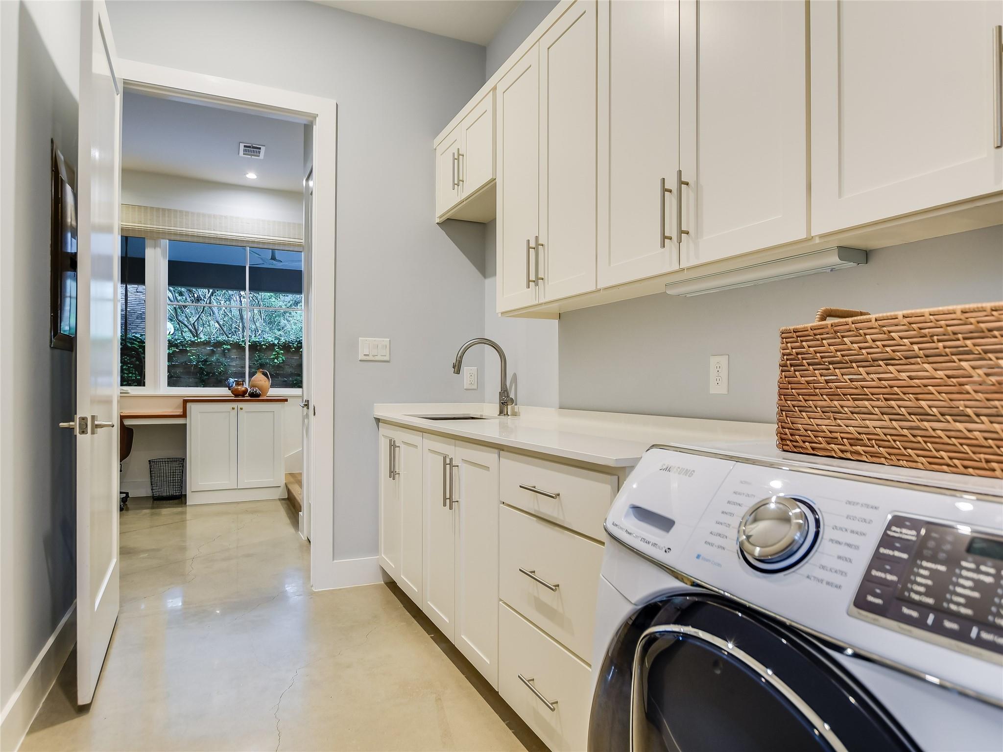Exquisite home in the heart of Travis Heights. Short walk to South Congress, Little Stacy Park/Blunn Creek hike and bike path, Lady Bird/Town Lake Boardwalk and recreation area. Award winning design, featured in Austin Home and Domino publications. This sophisticated home features vaulted ceilings with an open concept kitchen/family room. Stainless appliances and abundant storage in the kitchen. White oak and concrete floors throughout. Oversized windows with views of magnificent sprawling oaks trees allow for ample natural light throughout the home. Enjoy thoughtful touches throughout including a Malm fireplace in the living room, soaking tub in the master bath with teak surround as well as custom hardware, lighting, and tile.